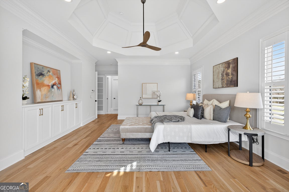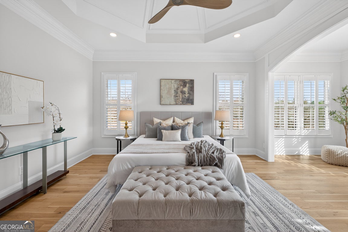 - Interior FeaturesBeamed Ceilings, Bookcases, Double Vanity, Master On Main Level, Pulldown Attic Stairs, Walk-In Closet(s)