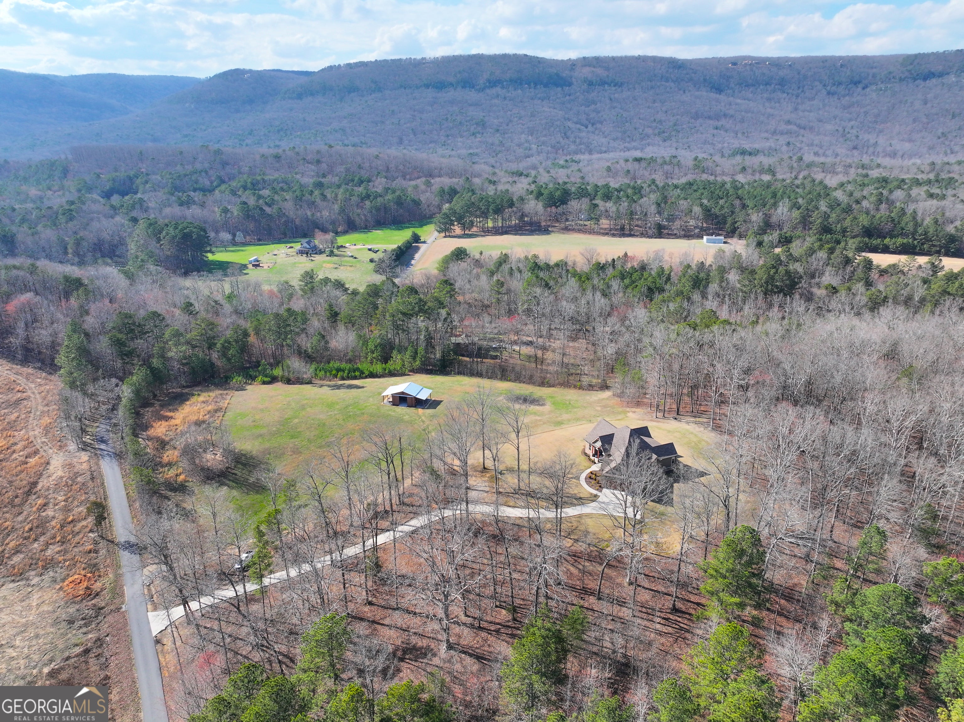 At the heart of the property sits a thoughtfully designed custom home built in 2017 to highlight the incredible mountain views that surround it. A paved driveway winds gently up to the residence, leading you to a secluded hilltop setting that provides both privacy and commanding vistas of the landscape below. The home offers 1,970 +/- square feet of comfortable living space, complete with central heating and air conditioning to ensure year-round comfort. Inside, you'll find three bedrooms and two bathrooms, along with a spacious open-concept living room and kitchen that serves as the gathering place for family and friends. Large windows invite natural light into the home while framing the mountain scenery outside. A two-car garage provides convenient parking and additional storage space, while the home's layout is perfectly suited for everyday family life. The interior flows easily from room to room, making it ideal for both quiet evenings at home and entertaining guests. One of the standout features of the property is the outdoor living area located on the rear of the house. This inviting space includes a beautiful outdoor fireplace, creating the perfect place to relax on cool mountain evenings. Imagine gathering with family and friends around the fire, enjoying good conversation while watching the sun set over Lookout Mountain and the surrounding ridges. The backyard provides plenty of open space for children to play, pets to roam, or family gatherings to take place. Wildlife lovers will especially appreciate the frequent visits from whitetail deer, which are often seen grazing just beyond the yard, adding to the peaceful mountain atmosphere. A barn located in the pasture offers additional functionality and versatility. Currently ideal for equipment storage or use as a workshop, the structure could easily be converted into a livestock barn for horses or other animals. With open pastureland surrounding it, the setup is well suited for those interested in equestrian activities or small-scale farming. The Land Beyond the home and pasture lies a beautiful landscape of natural hardwood and pine forest that invites exploration and outdoor adventure. The wooded areas provide a private retreat where your family can experience the outdoors in countless ways. Trails are established throughout the property for horseback riding, hiking, or ATV riding, creating endless opportunities for recreation. Children and adults alike will enjoy spending time exploring the woods, building campsites, and discovering the wildlife that calls this land home. For those seeking a more self-sufficient lifestyle, the property offers all the ingredients for a thriving homestead. There is plenty of space to plant a large garden where you can grow your own vegetables, herbs, and fruits. With pasture for livestock and forest resources, this land provides the foundation for living closer to the land. Hunters will also appreciate the strong wildlife presence on the property. Healthy populations of whitetail deer and wild turkey frequent the area, making it an excellent location for seasonal hunting or simply observing wildlife in its natural habitat. Throughout the year, the forest displays its own natural beauty, but the fall season is particularly spectacular. The hardwood trees transform into a vibrant display of reds, yellows, and oranges, creating a brilliant mountain landscape that must be seen to be fully appreciated. Properties with this combination of views, usable land, privacy, and development potential are increasingly rare in the Northwest Georgia mountains. Whether you're looking for a peaceful full-time residence, a family retreat, or the foundation for a multi-home mountain compound, this remarkable property offers an unmatched opportunity. The property is also enrolled in an agricultural use tax covenant to reduce property taxes. Don't miss your chance to own this incredible mountain property. Listing agent must be present for all property sho
