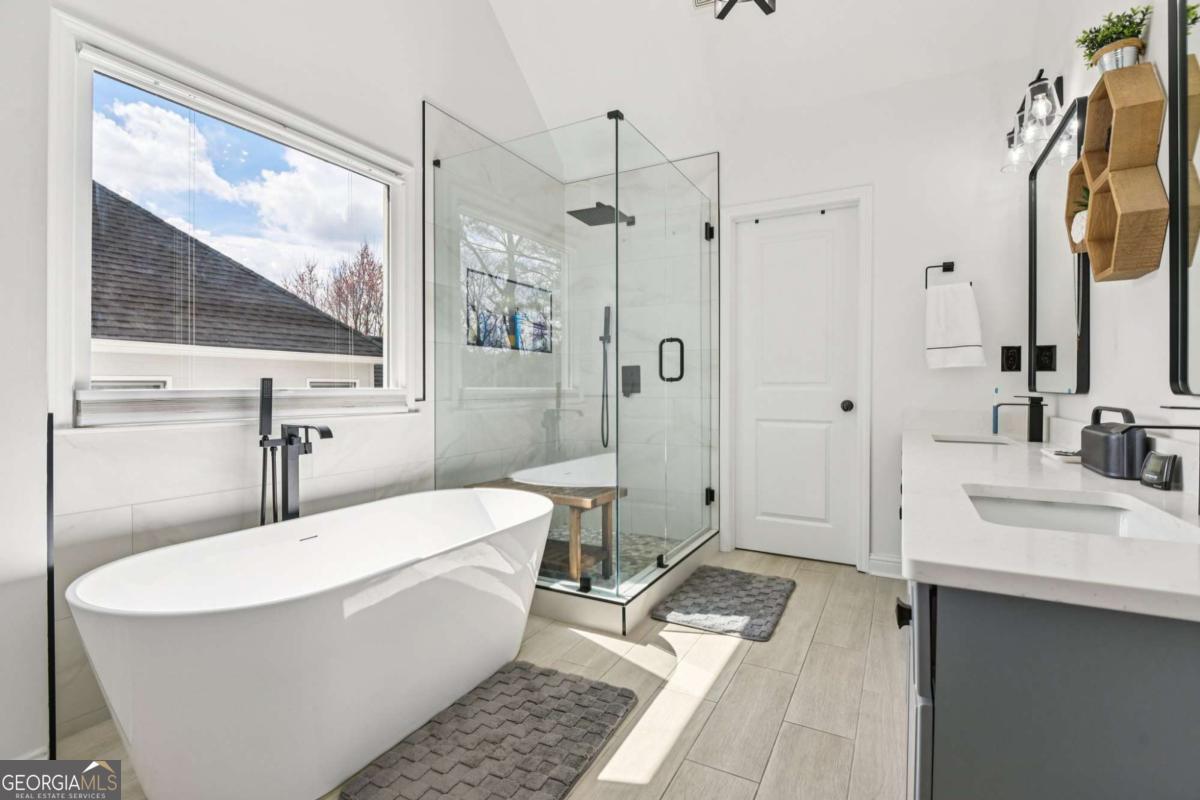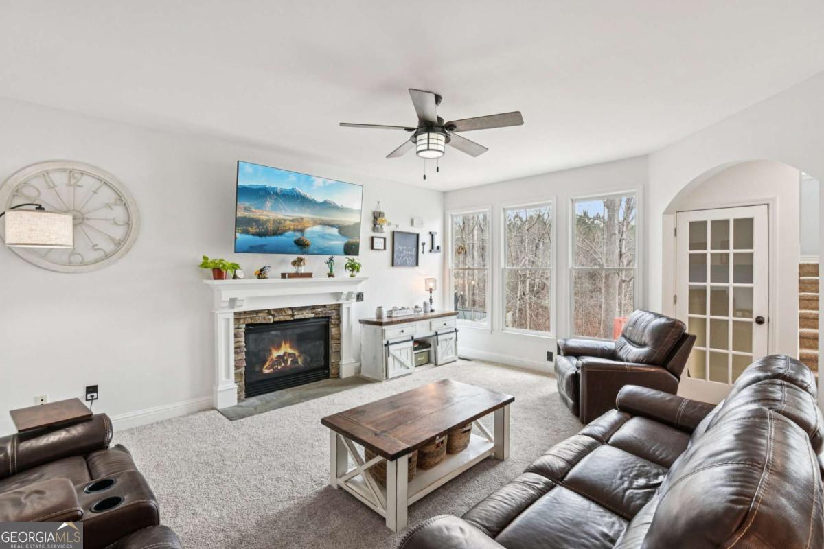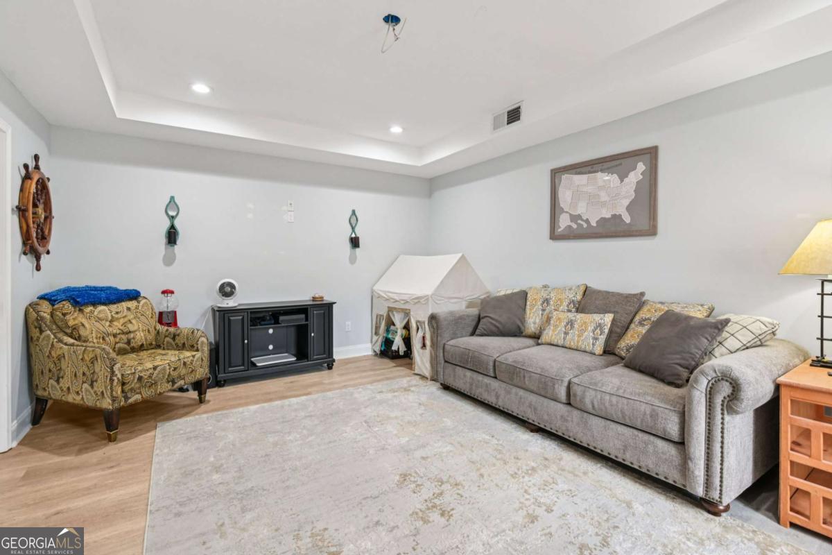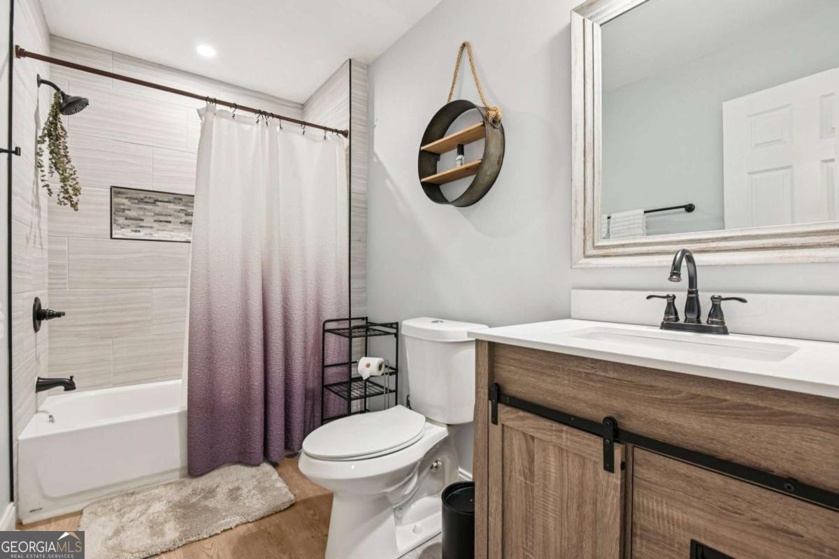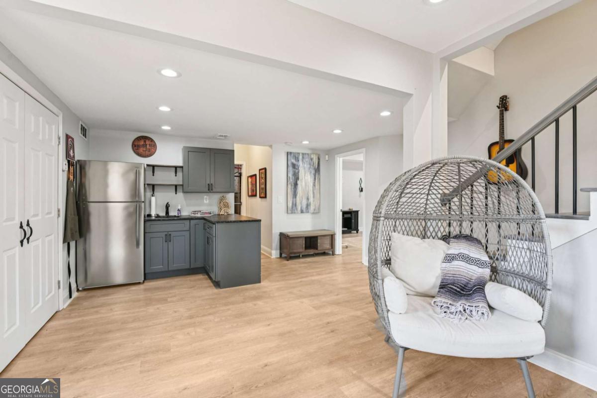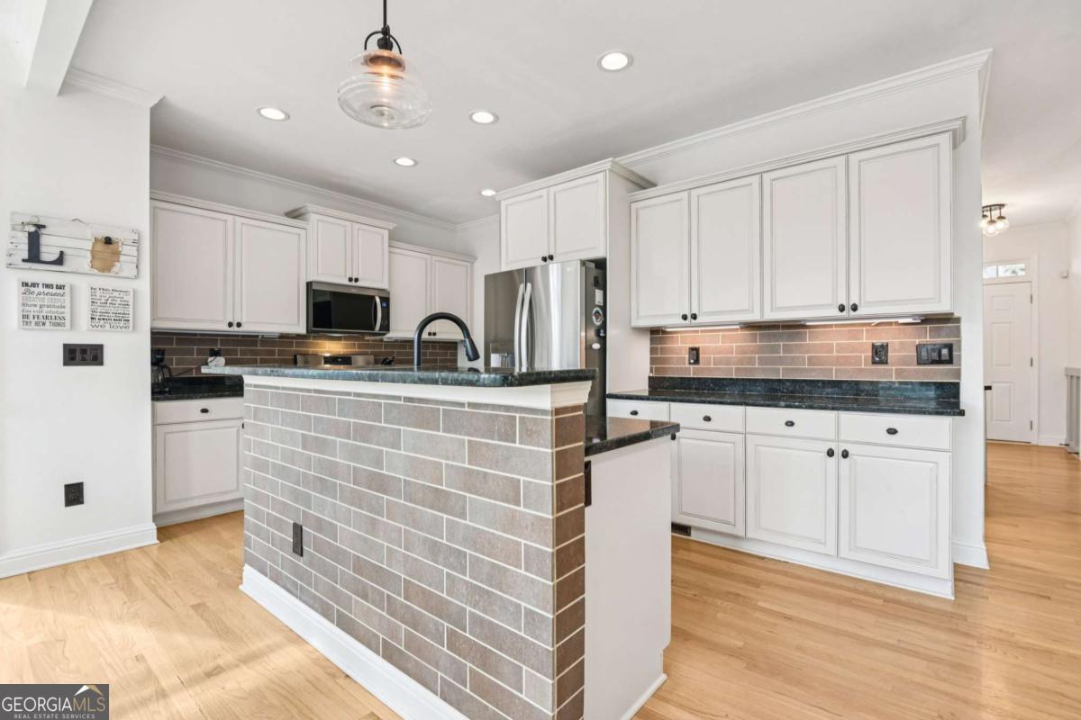 Beautiful, on-trend home located in the highly sought-after Bridgemill community! A welcoming front porch with plenty of space for rocking chairs sets the scene for relaxing evenings and warm Southern charm. Step inside to find gorgeous wood floors flowing throughout the main level and home recently painted. A formal dining room offers the perfect setting for hosting gatherings, while the spacious and light-filled living room features a cozy fireplace and serene wooded views. An arched entry leads into the stylish kitchen, complete with a breakfast bar, granite countertops, tile backsplash, stainless steel appliances, and a bright breakfast room. From here, easy access to the deck for effortless al fresco dining and morning coffee. Upstairs, the primary suite features a tray ceiling and a beautiful accent wall. The updated en-suite bath feels like a private retreat with dual sinks, vanity seating, a frameless glass shower, and a stunning pedestal soaking tub, along with a large walk-in closet. Three spacious secondary bedrooms share a full bath, including one bedroom with an additional flex area behind a barn door, perfect for a home office, playroom, craft space, or cozy reading nook. An upstairs laundry room adds everyday convenience. The finished basement expands the living space with a comfortable living room, kitchenette w/ full size fridge, bedroom, and full bath. Ideal for guests or multi-generational living with an exterior entry, the basement also has unfinished space ready for your future plans. Outside, enjoy both an upper deck with new pressure treated wood and a covered patio below, along with a generous backyard that backs to peaceful woods for exceptional privacy. Newer roof and water heater, overhead garage storage system. Residents of Bridgemill also enjoy an incredible lineup of amenities, including a clubhouse, multiple pools, tennis courts, pavilion, playgrounds, golf course, pro shop, and more-offering a true resort-style lifestyle. Book your tour today!