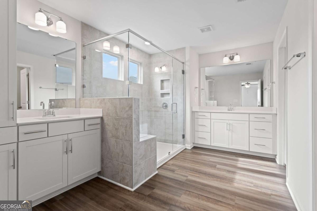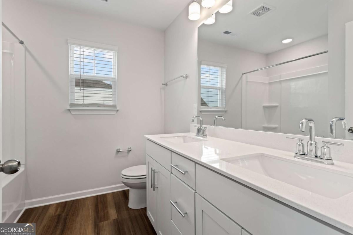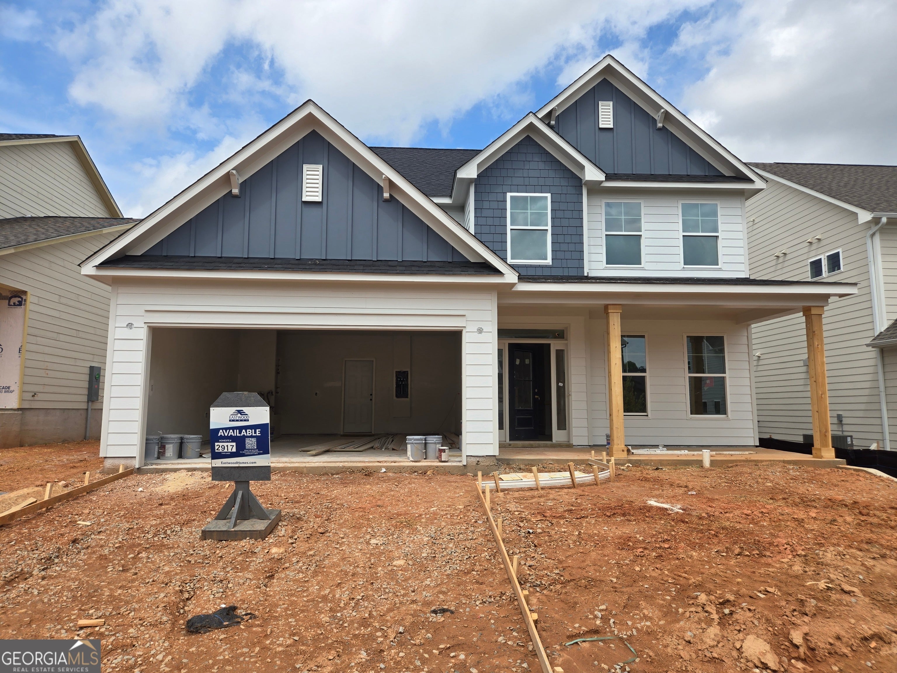 $10,000 seller paid closing costs with partner lender. At Eastwood Homes, thoughtful design and lasting quality set our homes apart. This two-story Cypress combines timeless farmhouse style with a functional layout designed for everyday living-bringing comfort, value, and charm together in one inviting home. The exterior showcases white siding with dark blue accent panels and cedar columns on the front porch, giving the home a modern farmhouse feel with a fresh pop of contrast. A covered back porch completes the look, creating the perfect spot to unwind outdoors. Inside, the main level features a separate dining room or flexible space, along with a guest bedroom and full bath, offering convenience for family or visitors. The open-concept kitchen blends clean design with practical function, featuring white cabinetry throughout, a large island with cabinets on both sides, quartz countertops, and black lighting and faucet fixtures that tie the look together with modern simplicity. Upstairs, the primary suite includes a large tiled shower with seat and built-in shelf, plus two additional bedrooms and a loft, providing plenty of room for relaxation or play. Quartz countertops throughout and a neutral, cohesive color palette make the home feel polished and easy to personalize. Located in Jackson County's premier master-planned community, Twin Lakes offers resort-style amenities including two scenic lakes with walking trails, a clubhouse, fitness center, pool, playground, dog park, and lakeside pavilion. Just 2 miles from I-85 and minutes from downtown Hoschton & Braselton, enjoy the convenience of nearby restaurants, shops, and local breweries. Home estimated to be completed in the Spring of 2026. Photos are for representation purposes and not of actual home. Built with Care by Eastwood Homes.
