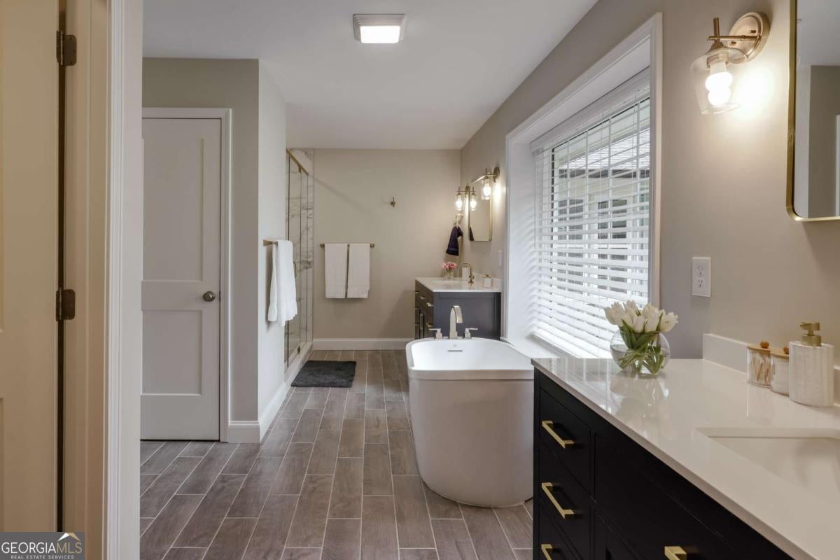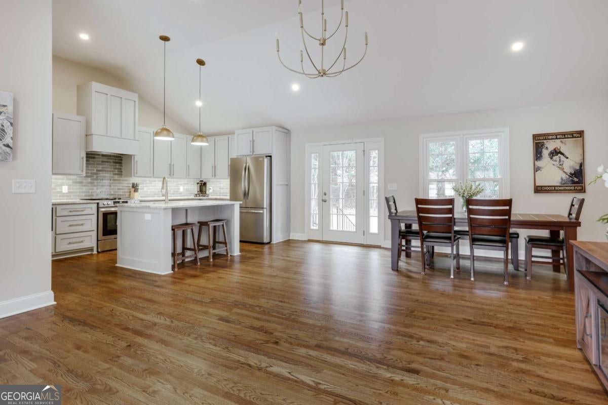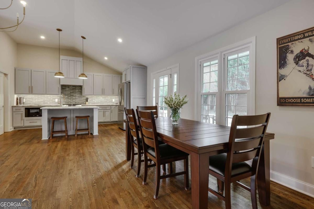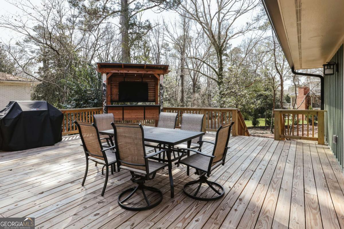 Located in Five Points, this beautifully renovated one-level ranch at 665 Westlake Drive offers spacious living just minutes from Beachwood Shopping Center, the University of Georgia, and some of Athens' most popular dining and retail destinations. Renovated just one year ago, the home blends classic ranch design with updated finishes and an easy layout designed for everyday living. A large living room with vaulted ceilings welcomes you inside and creates an immediate sense of space and natural light. The room easily accommodates multiple seating areas, making it a comfortable gathering space at the center of the home. Hardwood floors run throughout the interior, adding warmth and continuity across the main living areas. The floor plan is arranged with bedroom wings on both sides of the home, providing flexibility and privacy. In total, the home includes five bedrooms and four full bathrooms with tiled showers. The primary suite features a spacious bath with double vanity and garden tub. The kitchen features quartz countertops, large pantry, tiled backsplash and flows onto a large deck overlooking the backyard. The property also includes a large front yard for play and spacious backyard for relaxing or outdoor entertaining. The location places everyday conveniences close at hand. Beachwood Shopping Center, with retailers such as Sephora, REI, and Lululemon, is just down the road. Nearby options also include Starbucks, Jittery Joe's Coffee, Kroger, and TJ Maxx, with easy access to the University of Georgia and the restaurants and shops that make Five Points one of Athens' most desirable areas.