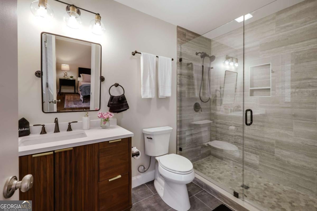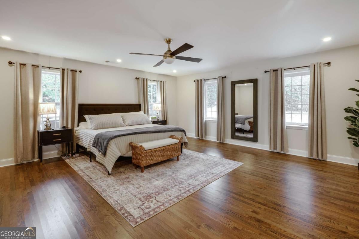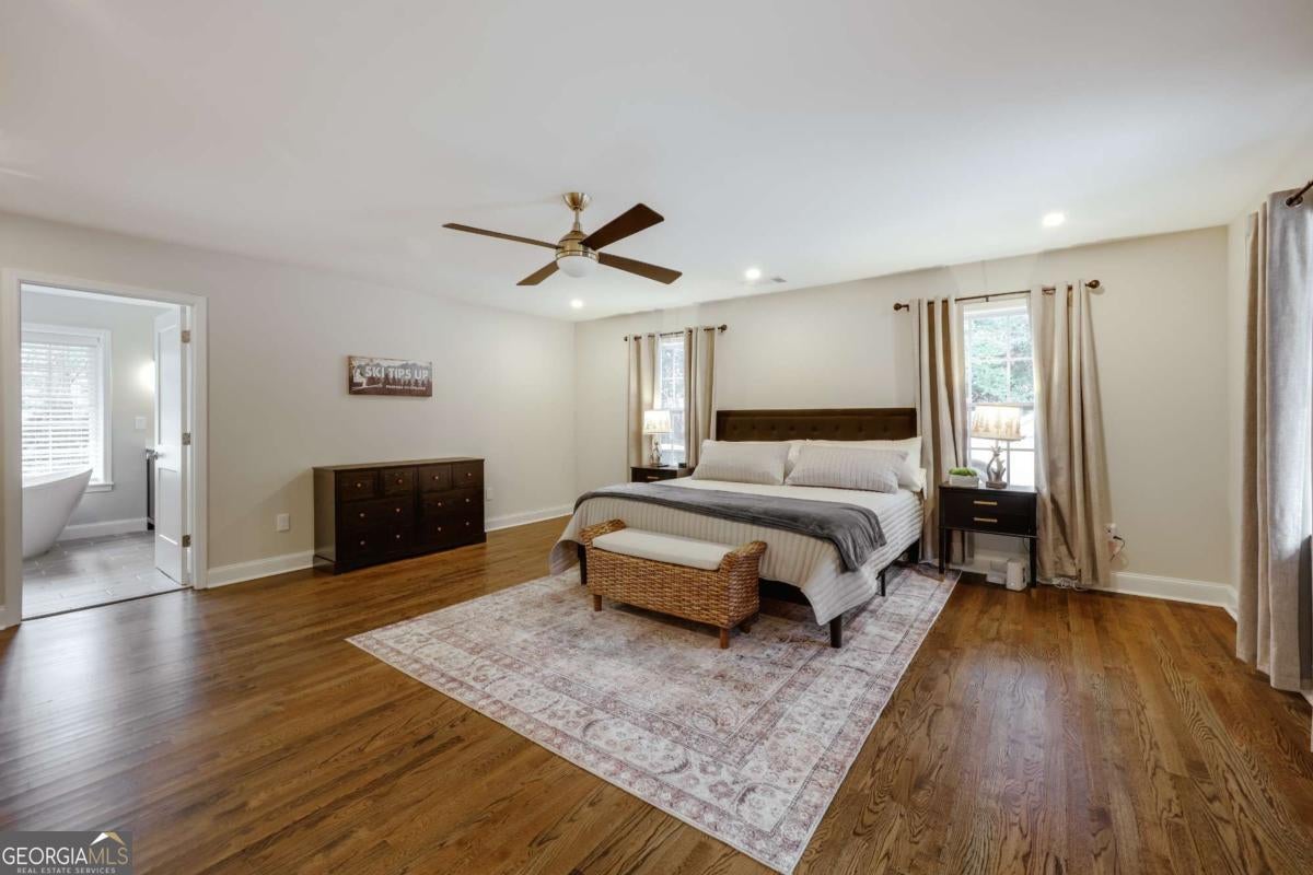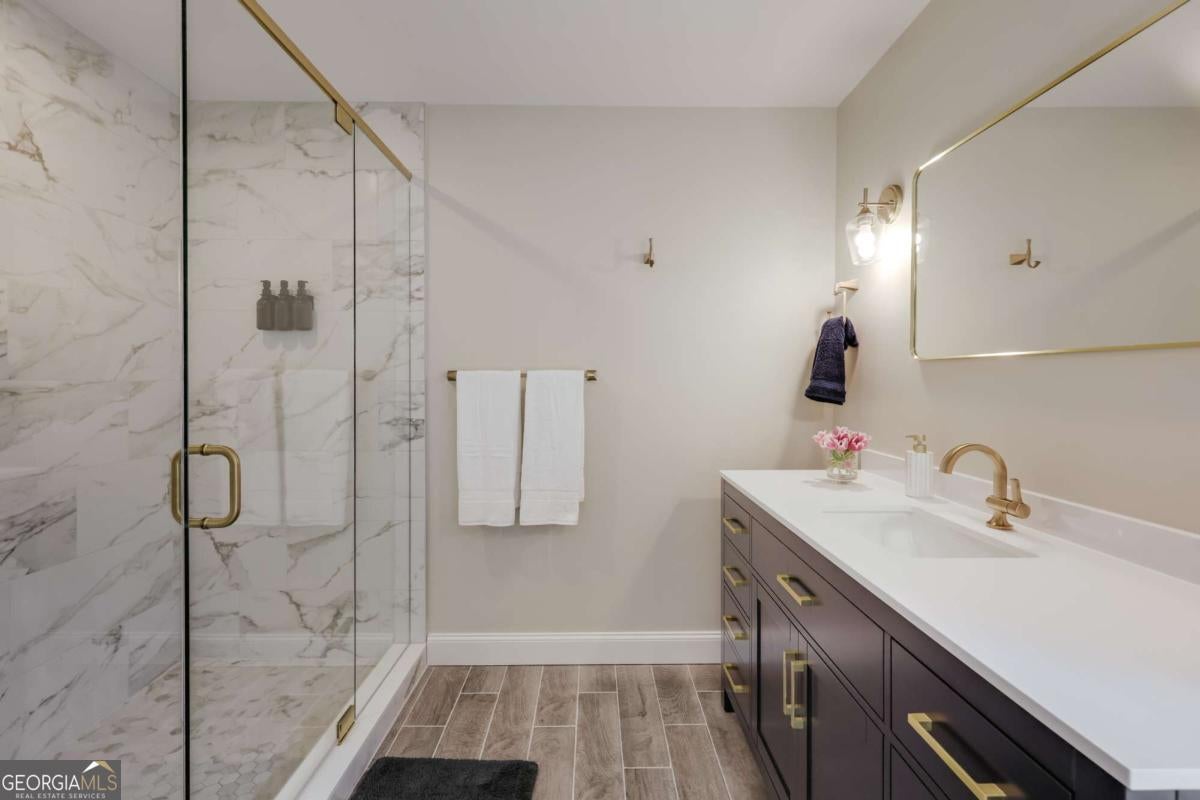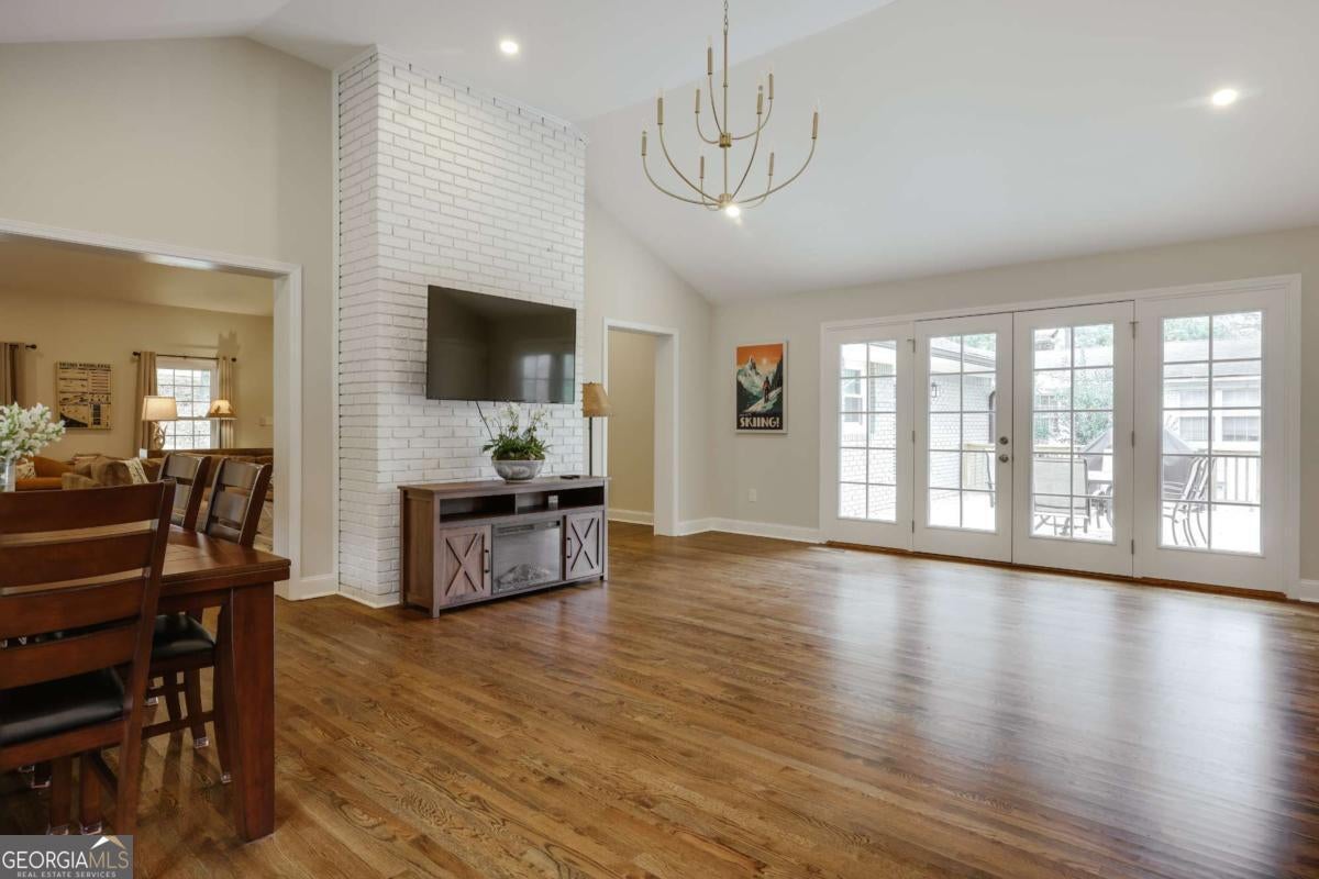 Located in Five Points, this beautifully renovated one-level ranch at 665 Westlake Drive offers spacious living just minutes from Beachwood Shopping Center, the University of Georgia, and some of Athens' most popular dining and retail destinations. Renovated just one year ago, the home blends classic ranch design with updated finishes and an easy layout designed for everyday living. A large living room with vaulted ceilings welcomes you inside and creates an immediate sense of space and natural light. The room easily accommodates multiple seating areas, making it a comfortable gathering space at the center of the home. Hardwood floors run throughout the interior, adding warmth and continuity across the main living areas. The floor plan is arranged with bedroom wings on both sides of the home, providing flexibility and privacy. In total, the home includes five bedrooms and four full bathrooms with tiled showers. The primary suite features a spacious bath with double vanity and garden tub. The kitchen features quartz countertops, large pantry, tiled backsplash and flows onto a large deck overlooking the backyard. The property also includes a large front yard for play and spacious backyard for relaxing or outdoor entertaining. The location places everyday conveniences close at hand. Beachwood Shopping Center, with retailers such as Sephora, REI, and Lululemon, is just down the road. Nearby options also include Starbucks, Jittery Joe's Coffee, Kroger, and TJ Maxx, with easy access to the University of Georgia and the restaurants and shops that make Five Points one of Athens' most desirable areas.