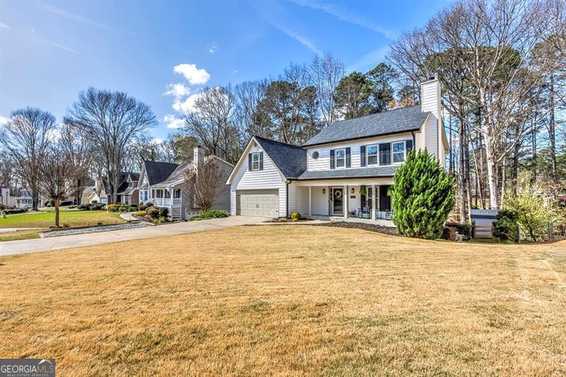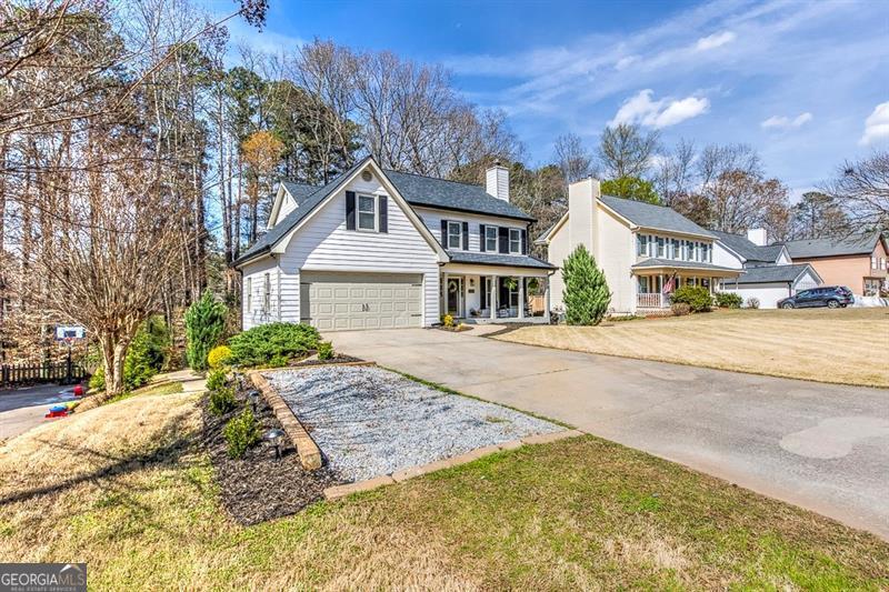 PROFESSIONAL PHOTOS COMING THURSDAY! SUGAR HILL - NO HOA! Set on a quiet setting in Sugar Hill, 4970 Gold Mind offers a traditional exterior with thoughtful updates and flexible living spaces across multiple levels. Recent improvements and well-maintained features create a move-in ready property designed for comfort, convenience, and easy upkeep. Inside, the main living area centers around a stacked stone fireplace that adds warmth and character. The updated kitchen features granite countertops and functional workspace for everyday cooking or gathering. Updated light fixtures throughout the home add a fresh, updated feel, while the second level features new LVP flooring for durability and low maintenance. The home includes three bedrooms and 2.5 bathrooms, with a bonus playroom/office. The owner's suite bathroom features new recessed lighting and a tiled shower with a glass door for a clean, modern finish. A finished basement expands the living area with versatile space that includes a custom-built bar with sink and a dedicated media room ideal for movies, sports, or additional recreation space. Outdoor living is equally inviting with a covered back porch and a screened-in porch below, creating multiple areas to relax or entertain. The backyard provides a peaceful and private setting with a newly installed retaining wall and fresh sod. Seller has a custom chicken coop that can convey with the home. Farm fresh eggs in Sugar Hill! Additional updates include new siding, a new roof, new hot water heater, gutter guards, and updated windows for long-term efficiency and peace of mind. Conveniently located near the Lanier school district with easy access to E. E. Robinson Park, and just minutes from the shops, dining, and entertainment of Downtown Sugar Hill. Walkable to the park, elementary school and downtown Sugar Hill.