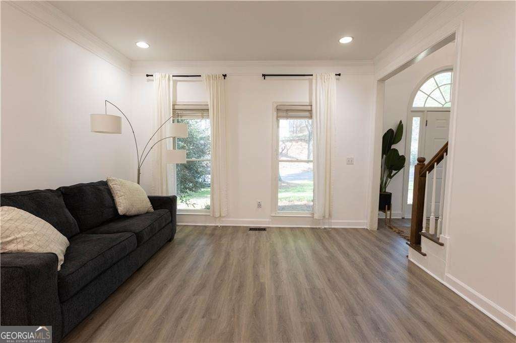 Charming retreat in the Johns Creek side of Alpharetta! Fully furnished, this beautifully-appointed house for rent offers modern comforts and convenience in a serene setting. With everything provided for you, all you need are your clothes and personal belongings to make this house a home. Adorned with an abundance of natural light, this house has new quartz countertops in the kitchen, new light fixtures throughout, built-in cabinets and floating shelves in the family room, and new flooring throughout. The five bedrooms with large closets offers plenty of room. And ... the basement offers additional space for everyone to enjoy, including a work-out room, an additional bedroom, and space to entertain. This newly-updated house is in the coveted neighborhood of Highland Park. Complete with swim/tennis, a clubhouse, playground, and social activities, this neighborhood is in an ideal location to start the spring and summer.