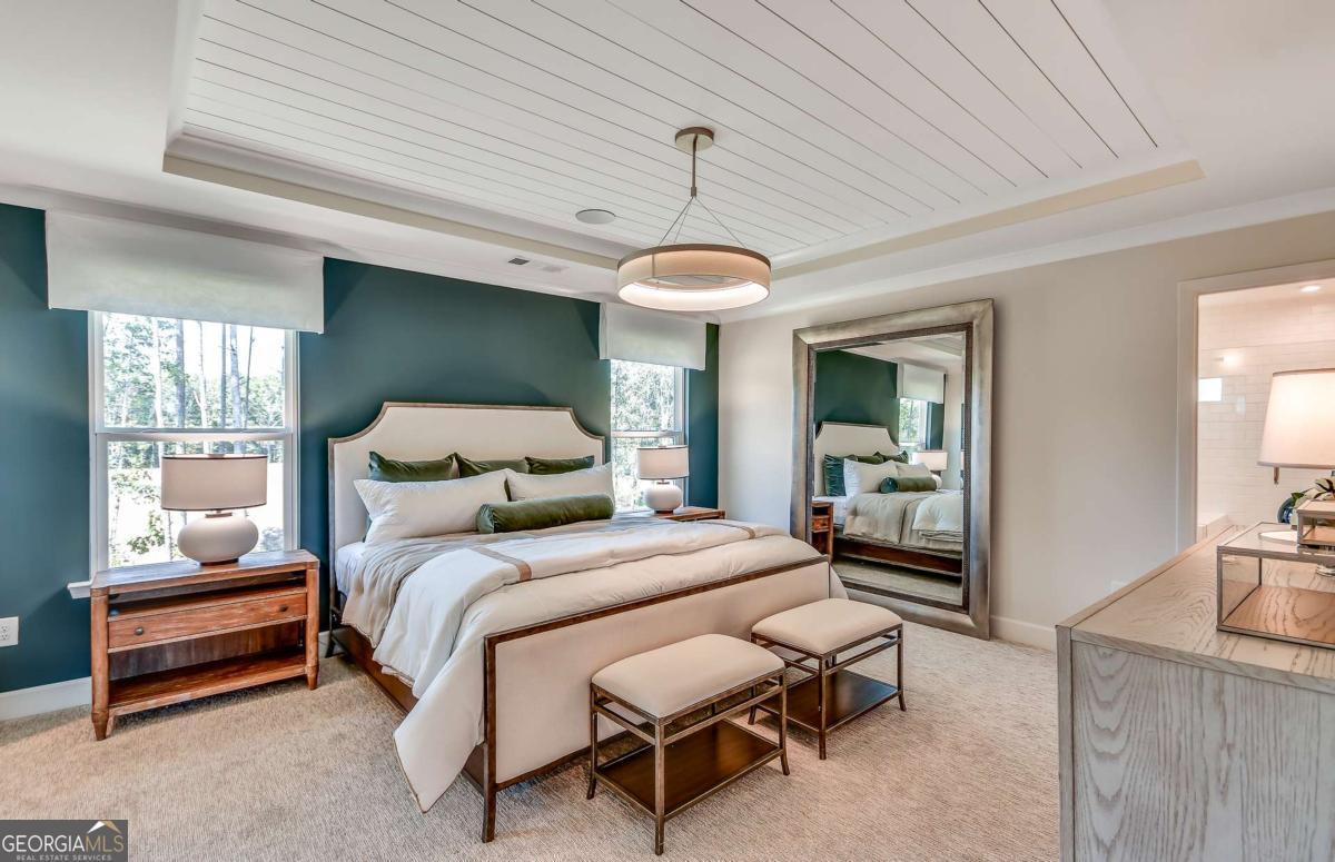 - Interior FeaturesDouble Vanity, High Ceilings, Pulldown Attic Stairs, Separate Shower, Soaking Tub, Split Bedroom Plan, Tray Ceiling(s), Walk-In Closet(s)