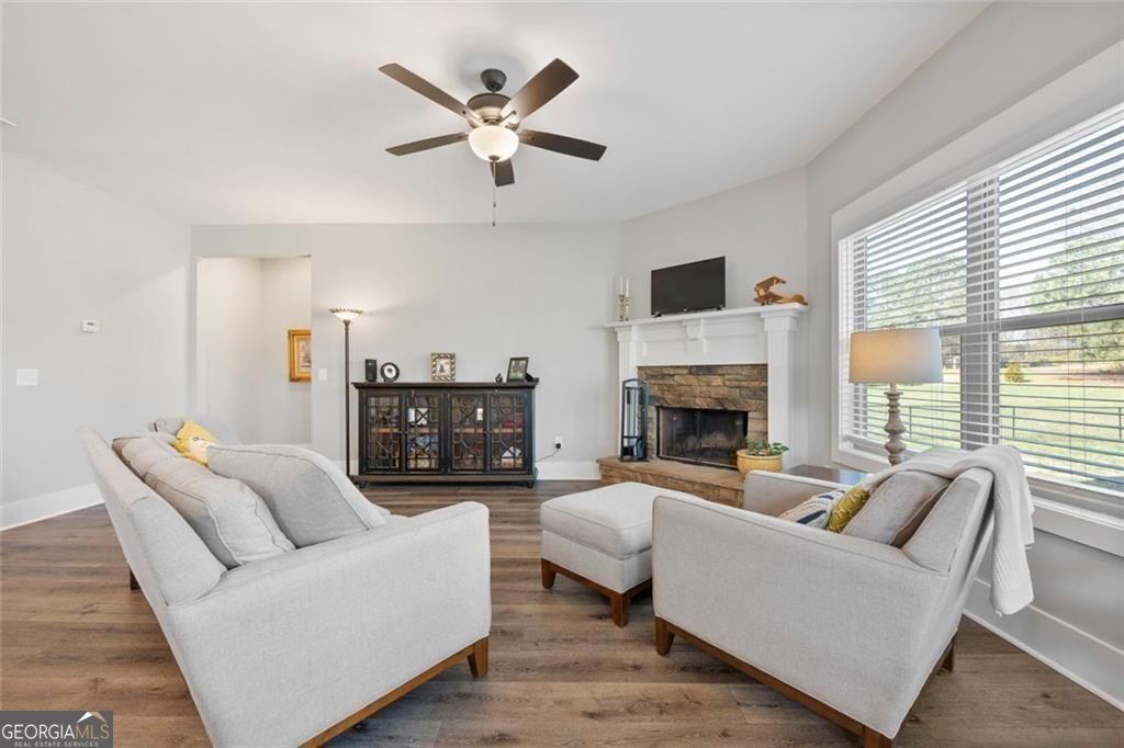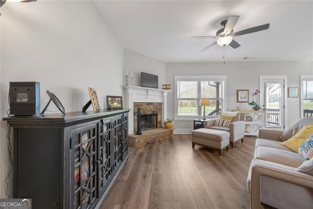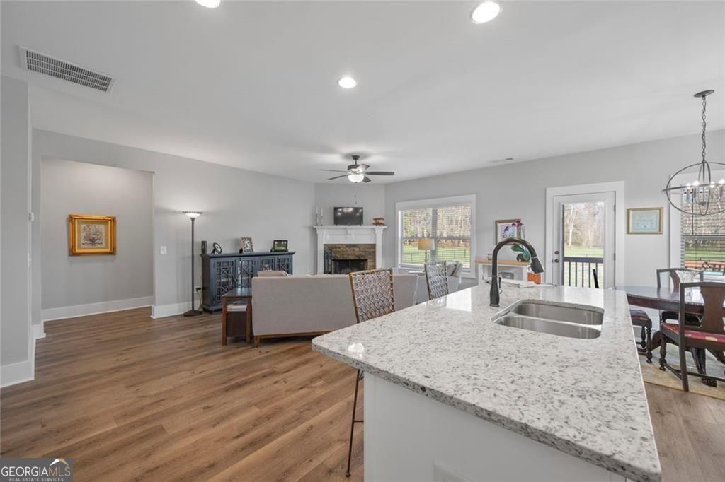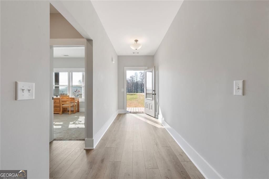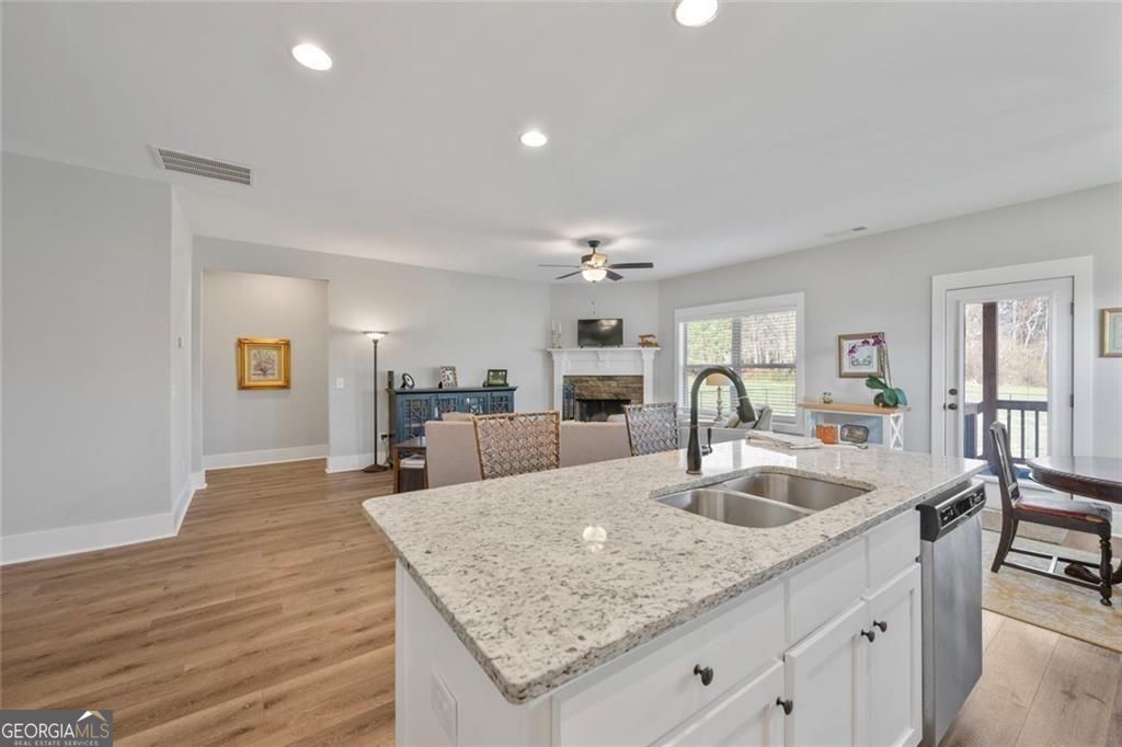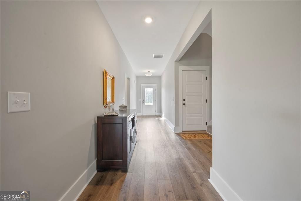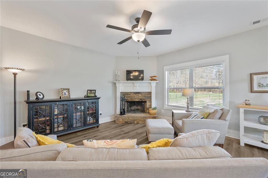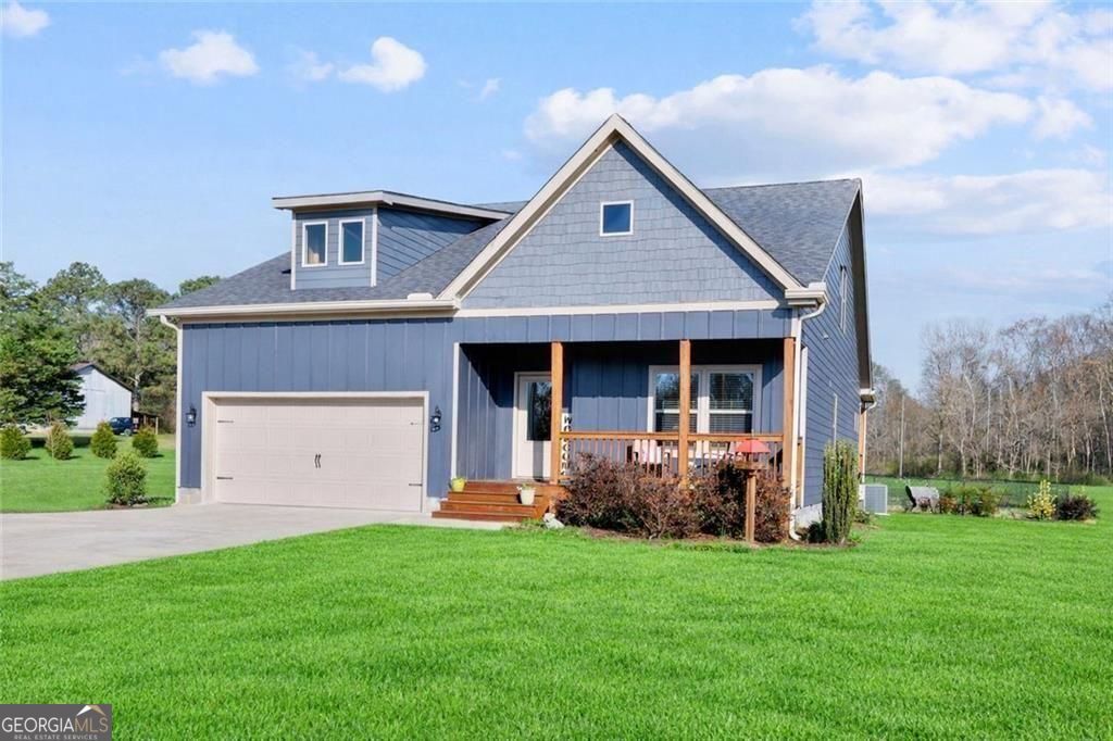 Set on a beautiful open homesite in Madison County, this well-maintained home offers the perfect combination of modern comfort and peaceful country living. A welcoming covered front porch overlooks the surrounding countryside and provides the perfect place to relax and enjoy the quiet setting. Inside, the home features an open and functional layout with durable flooring, neutral finishes, and abundant natural light throughout. The spacious living room centers around a cozy fireplace and flows easily into the kitchen and dining area, creating a comfortable space for everyday living and entertaining. The kitchen offers white cabinetry, granite countertops, stainless appliances, a large center island with seating, and a walk-in pantry for additional storage. The primary suite provides a private retreat with a tray ceiling, double vanity, soaking tub, separate shower, and a large walk-in closet. Additional bedrooms are generously sized and share a well-appointed bathroom. A convenient laundry room and thoughtfully designed mud area add everyday functionality. Upstairs, a large bonus space offers flexibility for a second living area, playroom, home office, or guest space. Outside, the property truly shines with wide open views, a large yard, and plenty of space for outdoor activities, gardening, or future additions. The setting offers privacy and room to spread out while still being conveniently located to nearby schools, shopping, and Athens. This property offers the space, layout, and setting that buyers are looking for in Madison County.