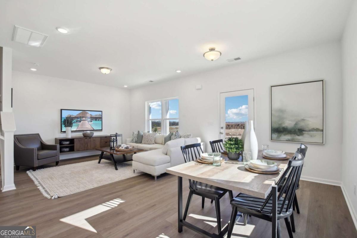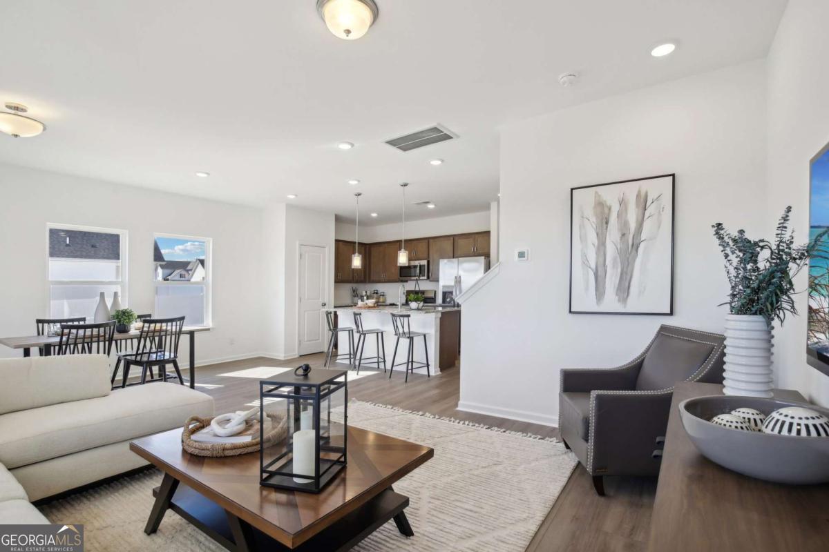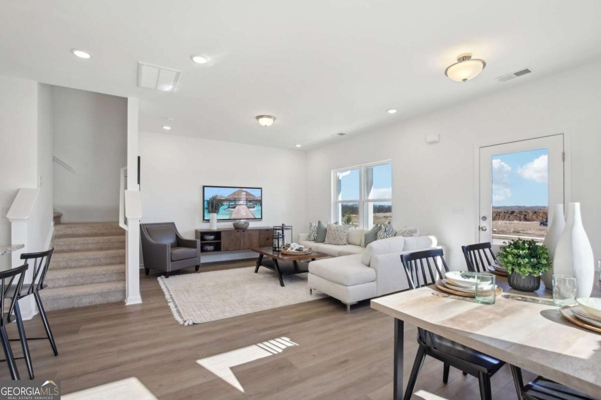 Move in Ready July 2026! The Sussex plan by Smith Douglas Homes in Crescent Towns! This thoughtfully designed rear entry 3BR/2.5BA interior-unit townhome offers comfort, convenience, and functionality throughout. The two-car rear garage leads to a kitchen with upgraded cabinetry, granite countertops, and a large center island. The cozy dining area is open to the kitchen and family room, with a convenient exit to the expansive front porch. There is also, a linear fireplace in the family room. Upstairs, the owner's suite features double vanities, a separate shower, garden tub and a spacious walk-in closet. Two bedrooms, a full hall bath, and a second-floor laundry room provide convenience for household chores. Nine-foot ceilings on both levels create a spacious, airy feel throughout. Residents will also enjoy a planned community pool with cabana and lawn maintenance included through the HOA-making this home as effortless as it is elegant. Photos representative of plan not of actual home. Agent is not onsite at present time. Please contact Wendy Williams for further information and to set up an appointment.