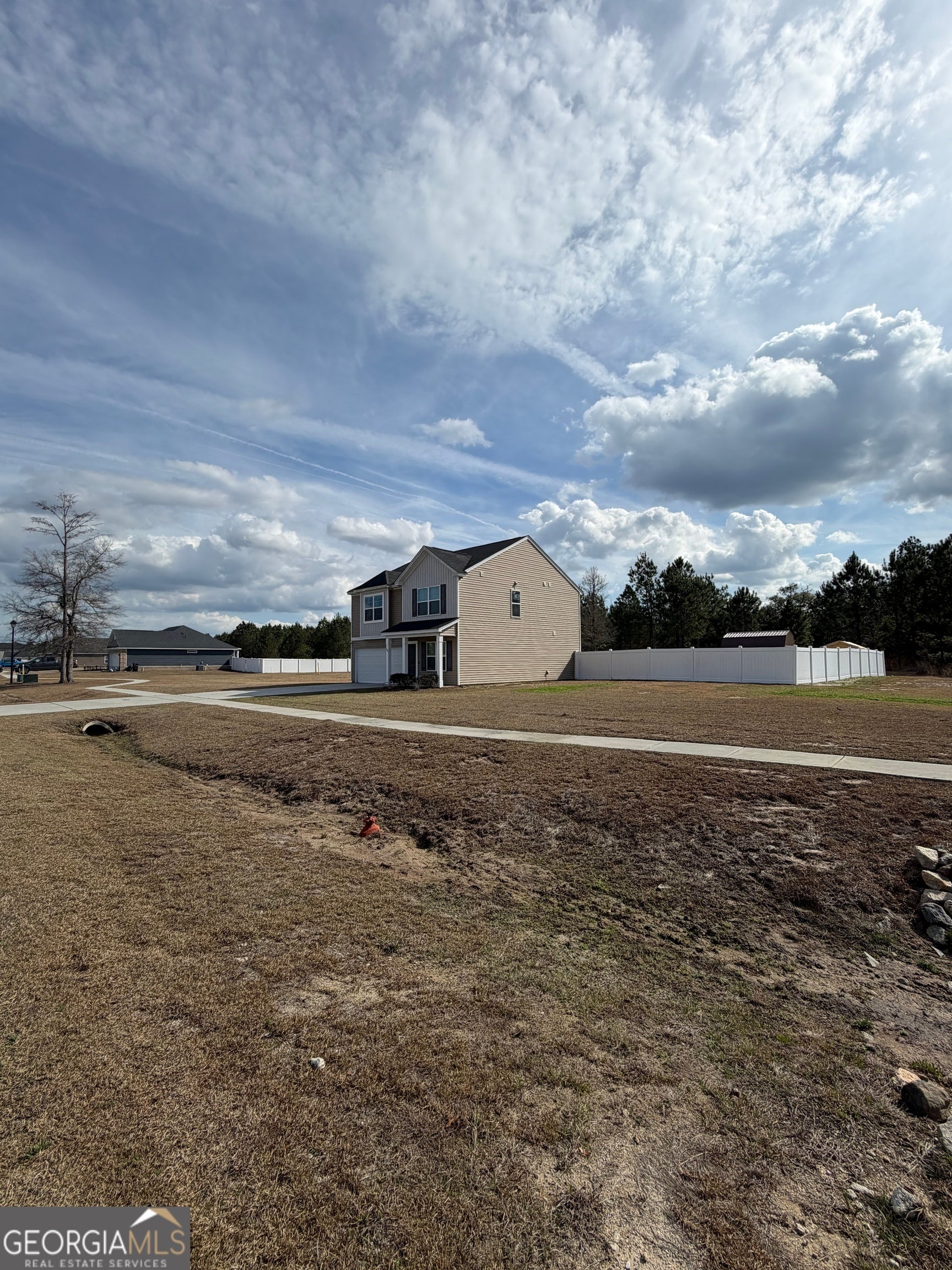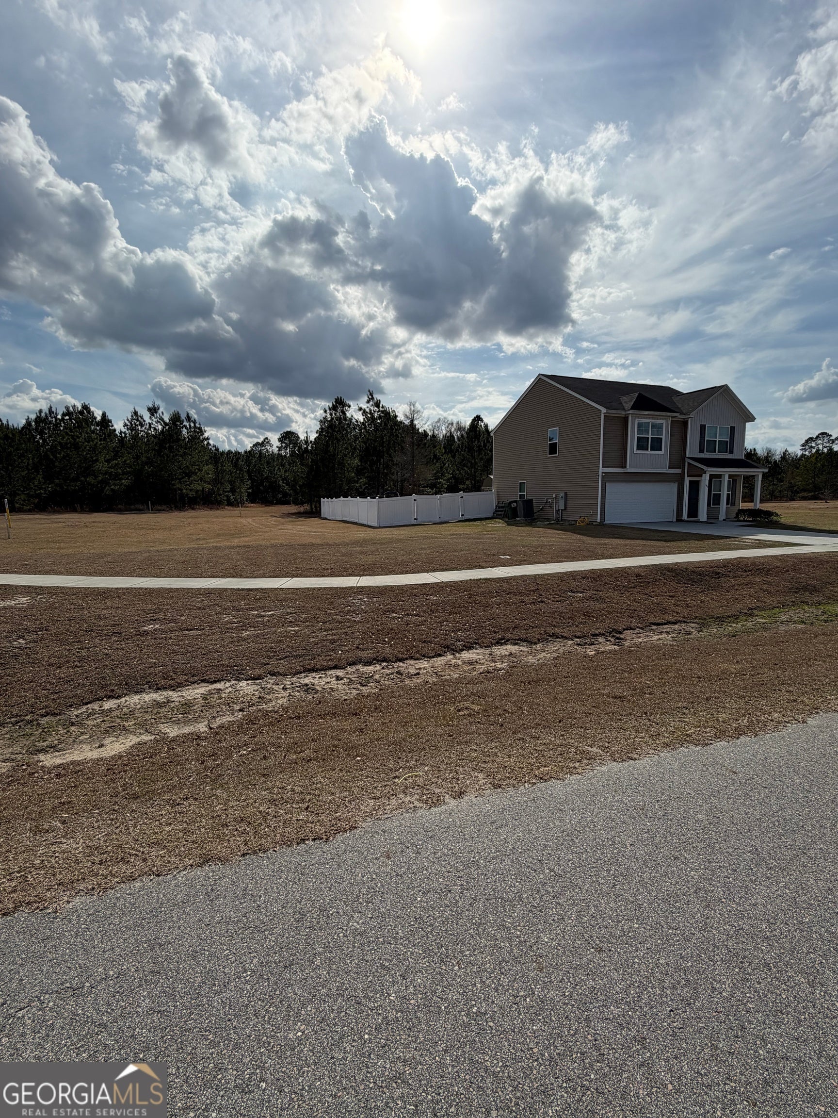 1.11 acre lot with no homes or development behind and fenced in backyard. 30 minutes to downtown Savannah, 15 minutes to Richmond Hill, 15 minutes to Hinesville, and 12 minutes to I-95. The entryway of this 4 bedroom, 2.5 bathroom Guilford opens onto a dining room. Just past it, the kitchen, which has granite countertops, upgraded gray cabinets, and stainless steel appliances, leads to a pantry and the family room. A covered porch with additional concrete patio off of the family room. The entire first floor has upgraded luxury vinyl plank flooring. Upstairs, a laundry room and a full bathroom are conveniently located near the three spare bedrooms. The primary bedroom, which has a vaulted ceiling, is connected to its primary bathroom that has dual vanities, linen, and clothes closets.