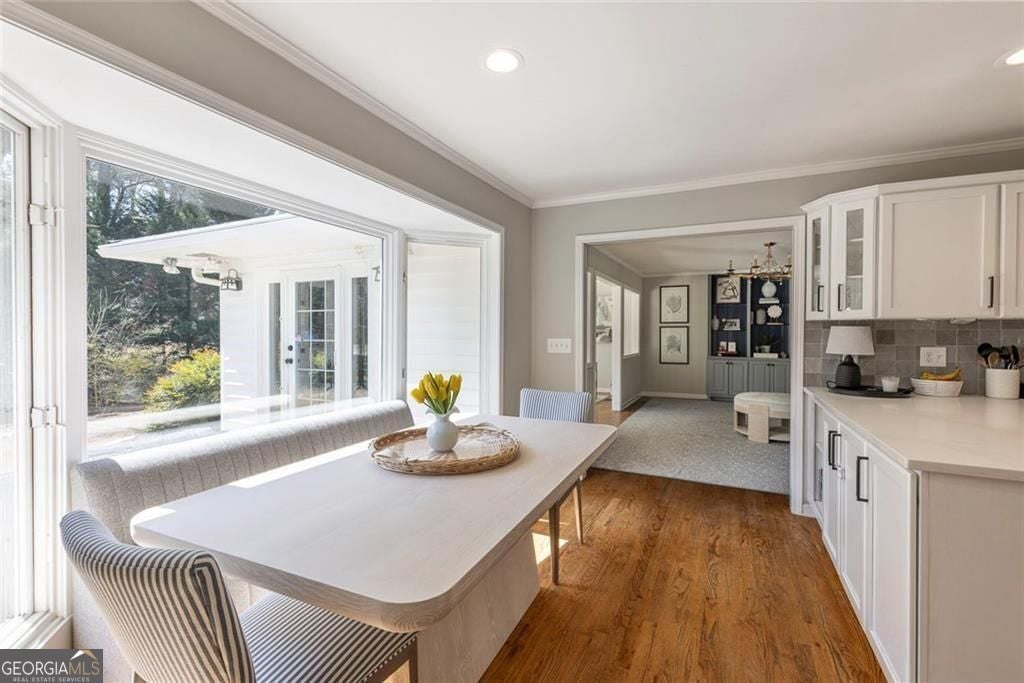 Tucked away on a quiet cul-de-sac in one of Sandy Springs' most coveted neighborhoods, this timeless brick home at 775 E Powderhorn Rd NE offers an exceptional blend of charming design, comfort, and privacy. Set on a beautifully landscaped 0.44-acre lot, the home is surrounded by mature trees and lush greenery, creating a peaceful retreat just minutes from the energy of the city. Inside, sun-filled interiors and rich hardwood floors create a warm yet sophisticated atmosphere. The thoughtfully designed floor plan flows effortlessly from elegant formal spaces to relaxed living areas ideal for both intimate evenings and vibrant entertaining. The chef-inspired kitchen features granite countertops, stainless steel appliances, custom cabinetry, and a charming breakfast area overlooking the private backyard oasis. The upper level hosts a tranquil primary suite complete with custom dual closets and a spa-inspired bath, while additional bedrooms provide comfort and versatility for family or guests. A daylight terrace level with recreation room, wet bar, and private guest suite offers the perfect space for entertaining, hosting visitors, or creating a media lounge. Step outdoors to experience the home's serene setting, where a bluestone patio and terraced, fenced backyard invite al fresco dining, weekend gatherings, and quiet moments surrounded by nature. Perfectly positioned near premier shopping, dining, and parks in Sandy Springs, this property delivers the rare combination of privacy, elegance, and everyday convenience-an exceptional place to call home.