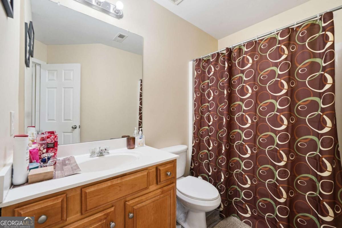Welcome HOME! This lovely 3 bedroom 2.5 bathroom townhouse located in the Providence Place, a gated community located in South Fulton. Within the first 3 seconds of entering the front doorway, you're going to walk into the grand living room space. The open-concept design seamlessly connects the kitchen, dining, and family rooms, offering a bright and inviting atmosphere that's ideal for relaxing or hosting gatherings. Upstairs, the primary suite provides a spacious retreat with a private ensuite bathroom, while the secondary bedrooms share a well-appointed full bath. The upstairs laundry room adds convenience to everyday tasks. Outside, enjoy your private backyard patio, with privacy walls on two sides, perfect for outdoor dining or quiet relaxation. This home is easily accessible to the highways, making you 10 minutes from the world's busiest airport and 20 minutes from Camp Creek Marketplace shopping centre and more! Townhome living doesn't get any better than this!