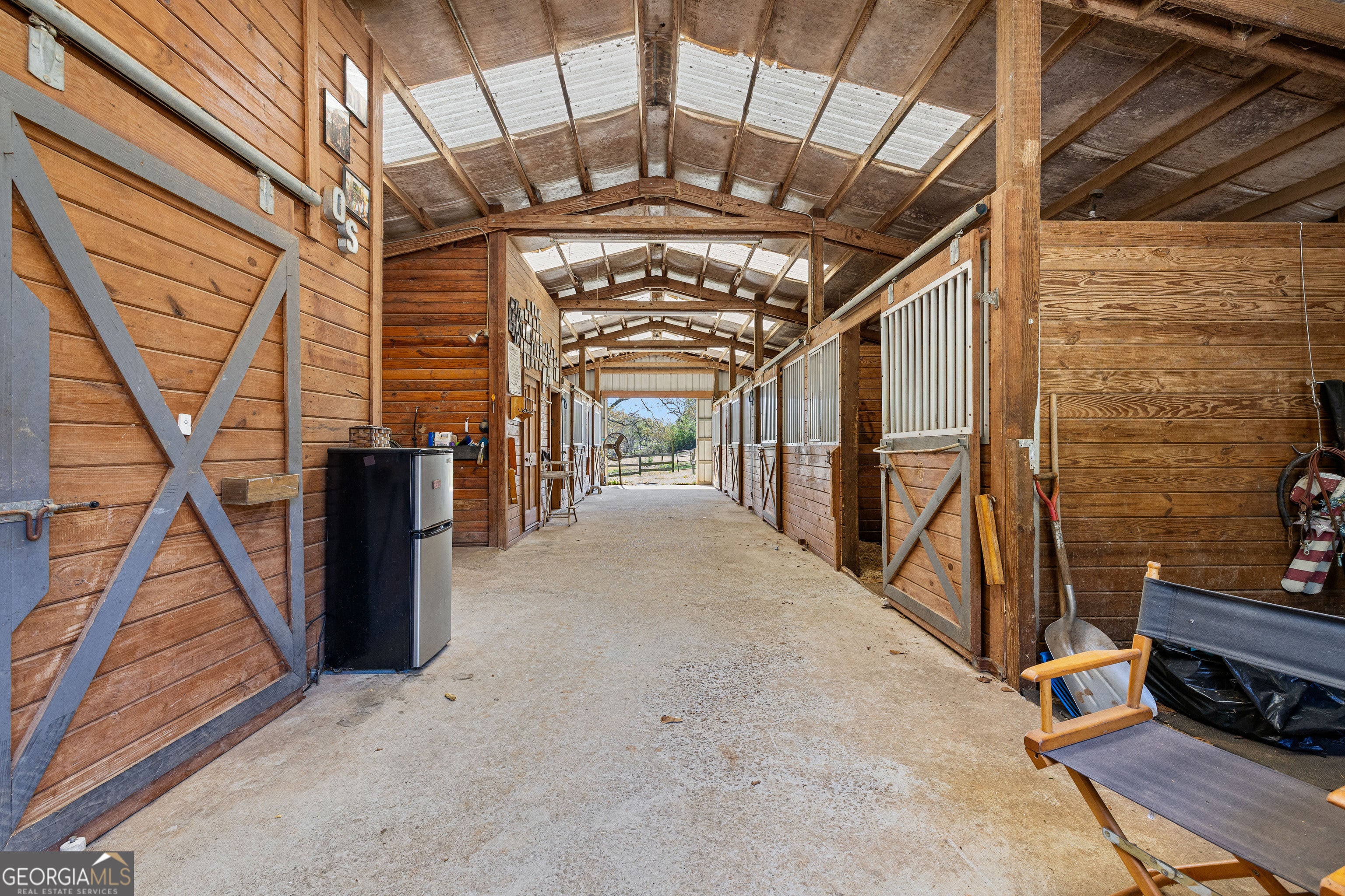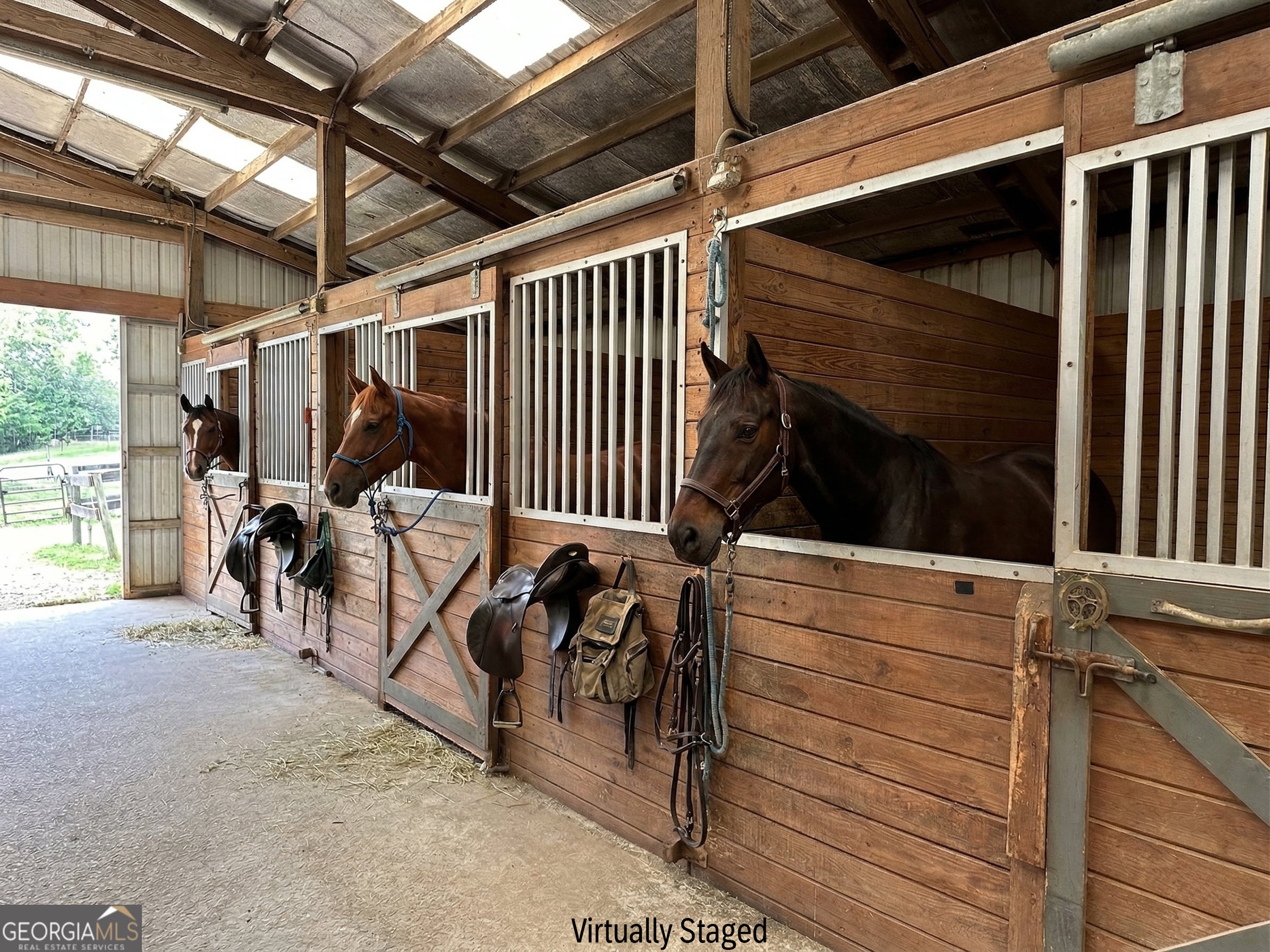 Set on 6.85 FULLY FENCED acres across two parcels, this inviting HORSE PROPERTY blends comfortable country living with a thoughtfully designed equestrian setup. The 3-bedroom, 2-bath home offers a warm and functional layout with a bonus room, WALK-IN CLOSETS IN EVERY BEDROOM, crown molding, a SCREENED PORCH, front porch, gas fireplace, gas water heater, an attached two-car garage, and a separate detached one-car garage. The house also has a current termite bond, with MAJOR SYSTEM UPDATES including HVAC and furnace replacements in 2019 and 2020. Outside, the front yard is accented by hibiscus, lilies, and producing blueberry bushes for an extra touch of charm. For horse owners, the property is currently divided into 7 SEPARATE PASTURES and includes 7 EXISTING STALLS, with room for up to 10 stalls using the extra stall spaces and one additional barn stall once the barn roof is repaired. The stalls use M10 beneath the mats to provide a firm, stable and well draining base. EQUESTRIAN AMENITIES include a tack room, hot/cold wash rack, hot water tank above the feed room, and space for bulk shavings with sliding access that opens for dump truck delivery. One gated area could be converted into a larger stall, potentially suitable for two ponies, and another gated area is currently being used as storage but could serve as an additional stall as well. An electric fence system is available, though the wiring is not currently hooked up. The GATED ENTRANCE WITH KEY-CODE ACCESS adds PRIVACY and CONVENIENCE, while barbed wire fencing along the back side marks the property line. The ADDITIONAL DETACHED GARAGE offers outstanding storage and can easily hold up to 1,000 bales of hay, making daily farm operations even more efficient. With BOARDING POTENTIAL at approximately $650 per horse per month for full board and $350 per horse per month for partial board, this property also offers an opportunity to help offset mortgage costs. With ROOM TO GROW, practical farm features, and COMFORTABLE LIVING SPACES, this is a rare chance to own a versatile equestrian property with both lifestyle and income potential.