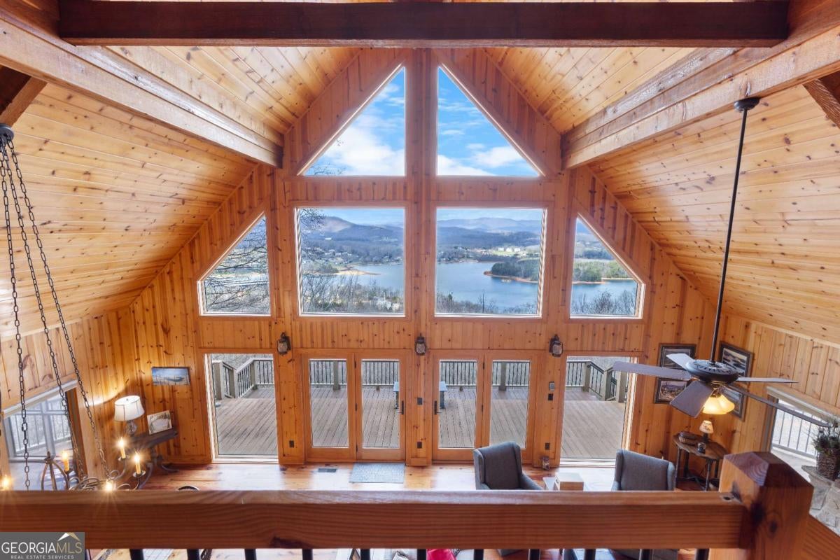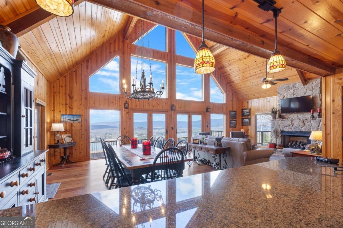 Turnkey Mountain Retreat- Fully furnished and ready for your second home or next investment property! Perched above Lake Chatuge on 1.15 private acres, this beautifully crafted custom mountain home offers breathtaking year-round views of Lake Chatuge, surrounding mountains, and even three states from its expansive back decks. Designed with timeless mountain character, the home features warm pine paneling throughout, ship lapped Cedar siding with Poplar bark shingle siding, and an open-concept floor plan that perfectly captures the natural beauty just outside every window. The main living spaces are filled with natural light and showcase hardwood floors and panoramic views from nearly every room in the home. Whether relaxing in the living room or preparing a meal in the open kitchen, the mountain and lake scenery remains the focal point. The spacious back decks create the perfect setting for entertaining, enjoying morning coffee, or watching unforgettable sunsets over the mountains. Quality construction and thoughtful details set this home apart, including steel support columns in the foundation for long-term durability, 30-year architectural shingles, newer HVAC system, and newer water heaters. Bathrooms are equipped with built-in heaters for added comfort during cooler mountain mornings. The property combines privacy with convenience, located just minutes from Lake Chatuge marinas, downtown Hiawassee, restaurants, and the Georgia Mountain Fairgrounds. An additional 3.28-acre parcel located below the home is also available for purchase, providing the opportunity to own nearly 4.4 acres total for additional privacy, investment potential, or future expansion. Experience the best of North Georgia mountain living with unmatched views, quality craftsmanship, and peaceful surroundings in this one-of-a-kind Hiawassee retreat. (Additional 3.28 acres are available below the property.)