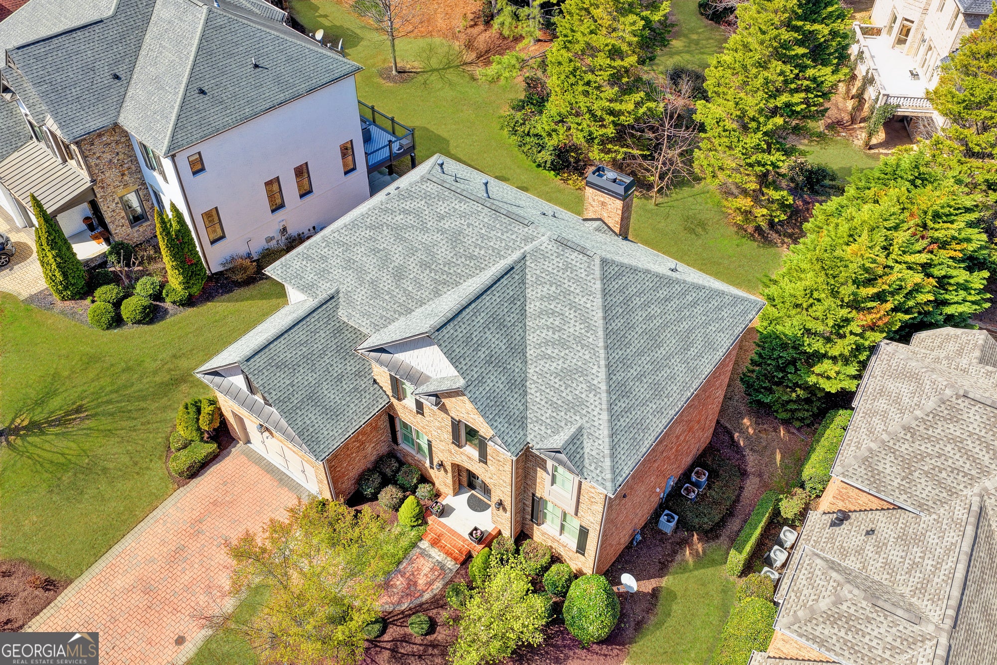 STUNNING ALL BRICK 2011-built home in the gated, highly sought-after ST MARLO COUNTRY CLUB, featuring top-rated schools and low Forsyth County taxes. Recent upgrades include a 2023 ROOF, new iron double entry doors, new light fixtures, and three HVAC units. Situated on a CUL-DE-SAC street with a charming gazebo and waterfall, the home offers LEVEL front and backyards. Enter through the striking IRON doors into the TWO STORY foyer that opens to a banquet-sized dining room and elegant living room. The main level includes a bedroom with closet, powder room, and a spacious family room that flows into the chef's kitchen with stone countertops and stainless steel appliances, plus a large mudroom. Step out from the family room onto the deck overlooking the level backyard, offering plenty of space for a future pool and outdoor living area. The second story features the vaulted primary suite with a sitting area, luxurious spa-like bath, and oversized his-and-her closets, one vaulted bedroom with walk-in closet and private bath plus two additional vaulted bedrooms with walk-in closets sharing a Jack-and-Jill bath complete the second level. The terrace level is filled with natural light and offers an abundance of windows, a billiard room, recreation room with a gorgeous granite bar, a 5th bedroom, and a luxurious frameless glass bath. Additional spaces include a bonus/playroom, office or theater room, plus unfinished storage space with potential for future expansion.