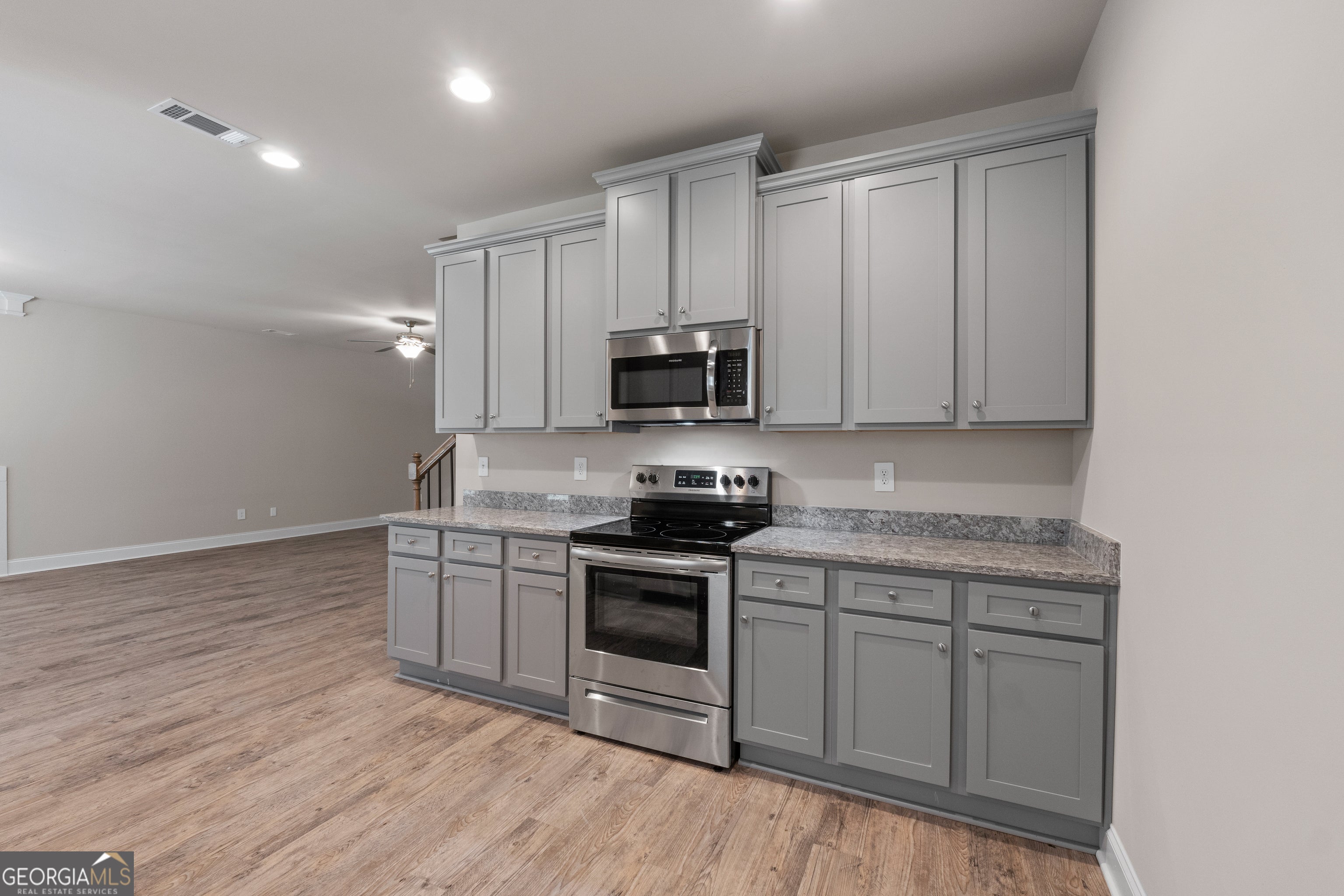 - AppliancesElectric Water Heater, Dishwasher, Ice Maker, Microwave, Oven/Range (Combo), Stainless Steel Appliance(s)