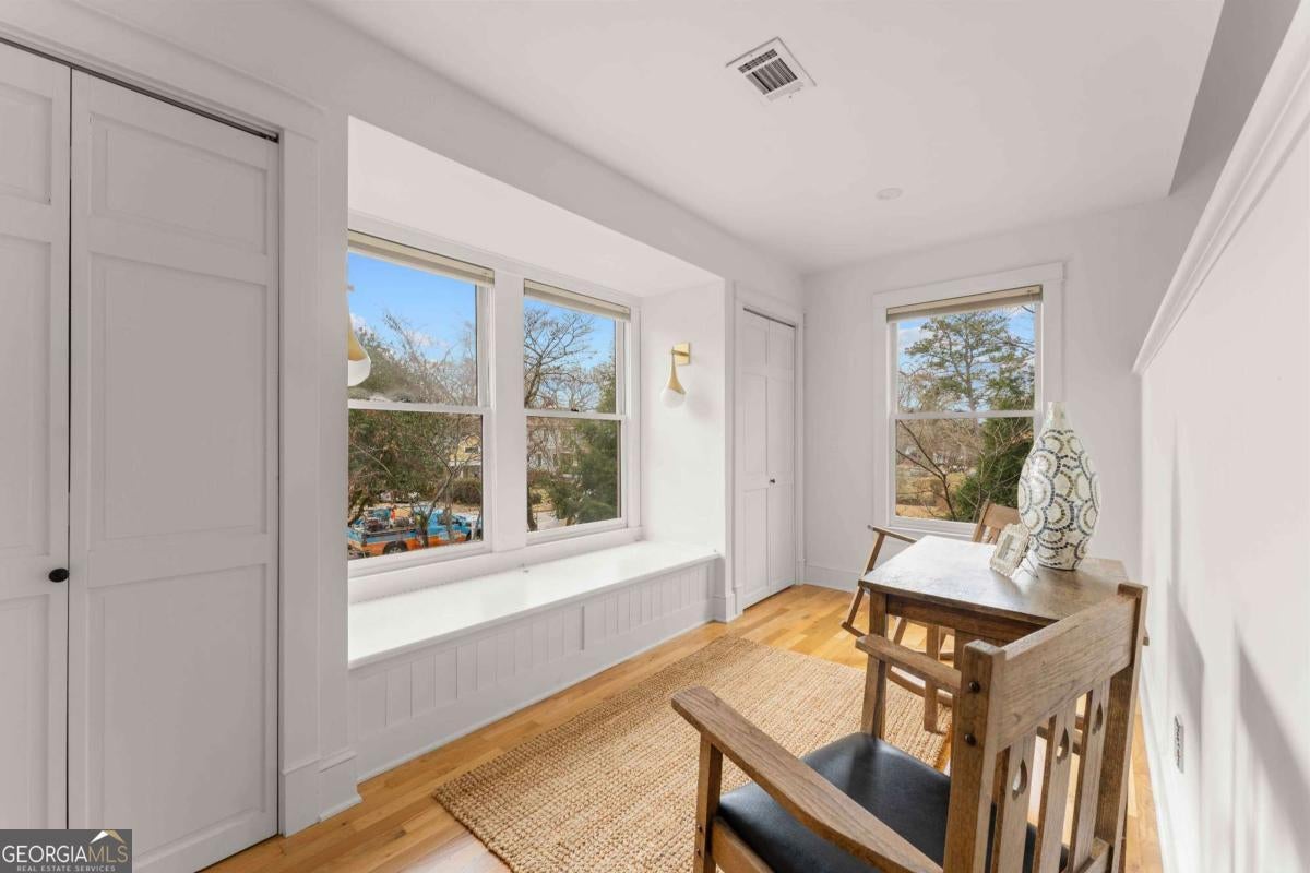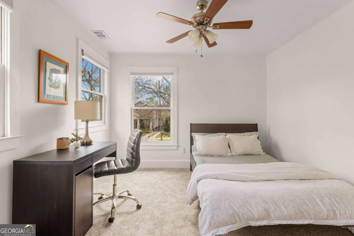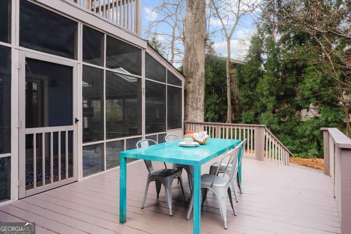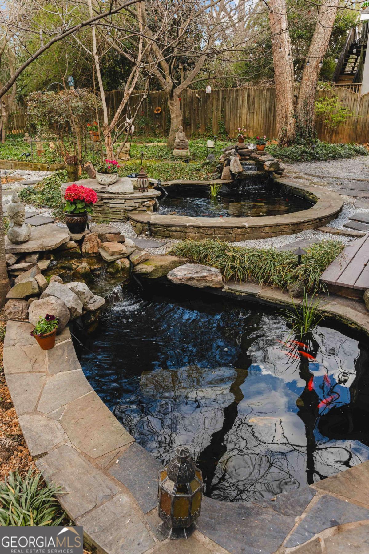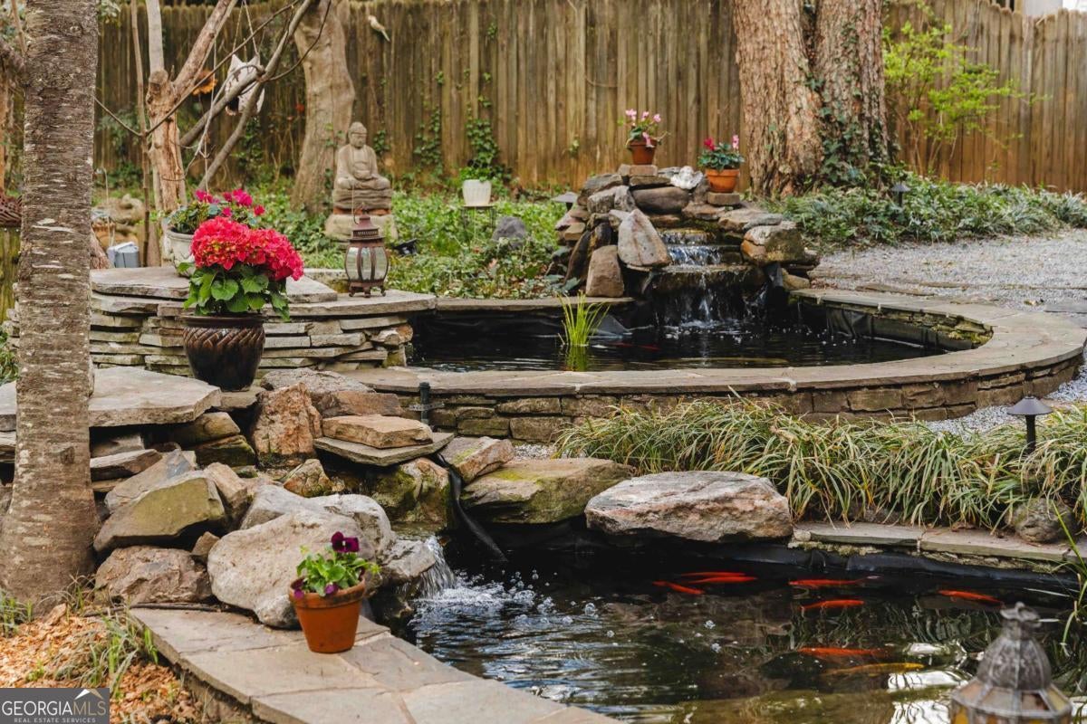 Imagine a residence that's far from ordinary, a sprawling estate on nearly half an acre with a setting so serene you'll find every excuse to spend time outdoors. 143 Maxwell Street is the one you've been waiting for. Located on one of Oakhurst's most beloved streets, the property features four bedrooms and three baths in the main residence, plus a private carriage house with its own bedroom and bath above the garage. As you enter, you are greeted by a stylish foyer anchored by a wood burning fireplace. A comfortable living room and dedicated office provide additional flexibility, while custom built-ins enhance the home's character. On your way to the kitchen and dining room, you will pass by a main floor bedroom and full bathroom, perfect for hosting guests. The updated kitchen is a chef's dream, complete with plenty of storage and an oversized pantry. It flows seamlessly into the dining area, where large windows fill the space with natural light and frame views of the enchanting backyard. Just off the kitchen, a screened porch and adjacent back deck create an effortless transition to outdoor living, ideal for quiet mornings, al fresco dining, or gathering with friends. Upstairs, two secondary bedrooms share a hall bath, while the primary suite serves as a treetop retreat. Highlights include generous closets, a reading nook with sunset views to the west, another gas fireplace, a well-appointed bath, and a balcony to take it all in. In the upstairs hallway, a ladder leads to a cozy hideout. Out back, the grounds feel like a hidden garden. Mature trees anchor the landscape creating privacy, while flowering plants, two stocked koi ponds, a firepit, and even a chicken coop create an atmosphere that feels both peaceful and alive. When everything is in bloom, it's nothing short of magical. The 800-square-foot garage accommodates two vehicles and includes a workshop that could easily transform into a studio, home gym, or creative space. The property also features plenty of off-street parking. Above the garage, the spacious carriage house includes a kitchen and living room in addition to the fifth bedroom and fourth bathroom. Whether welcoming visitors, hosting extended family, or generating rental income, this space adapts with ease. Life here extends well beyond the property line. Top-rated Decatur schools, neighborhood restaurants, coffee shops, and a local market are just moments away. Annual traditions like the Mad Ave Derby, Oakhurst Porchfest, and the Oakhurst Wine Crawl bring neighbors together and make this community unforgettable. More than simply an address, Maxwell Street offers a lifestyle rooted in connection, comfort, and possibility.