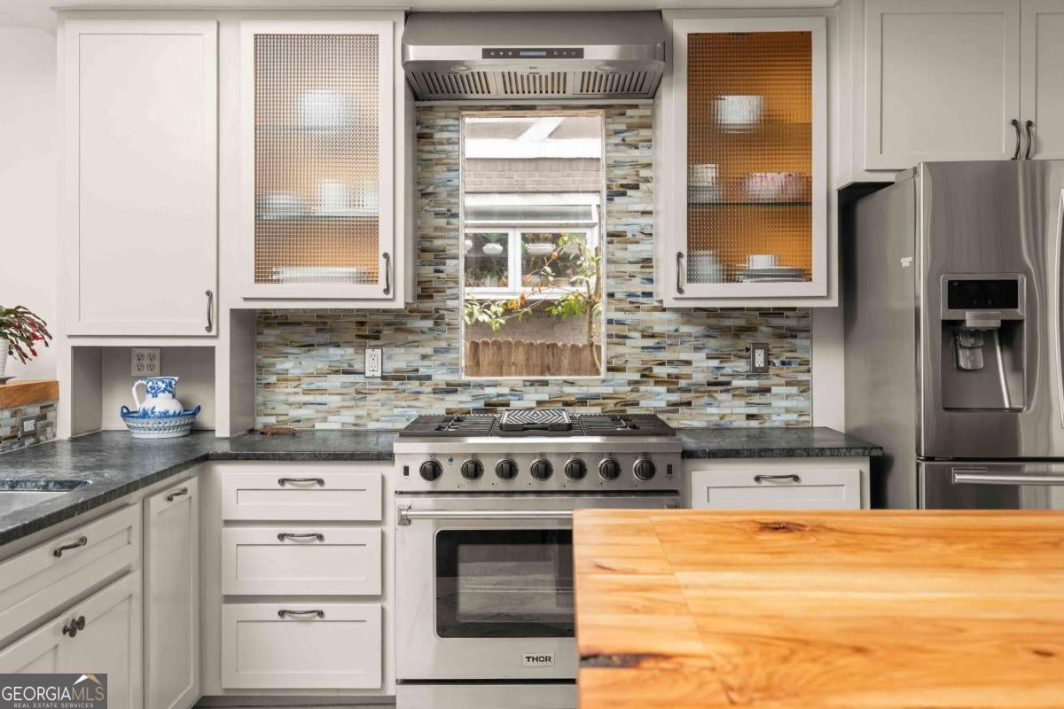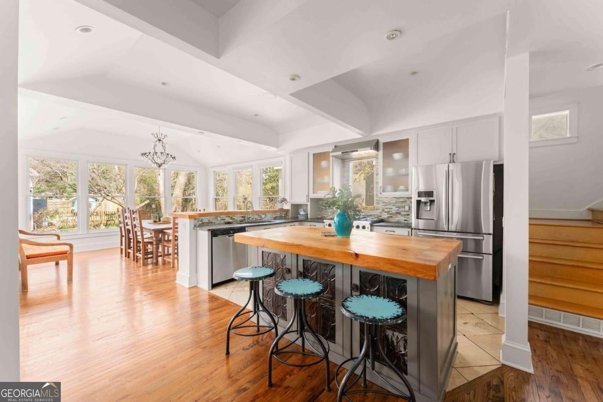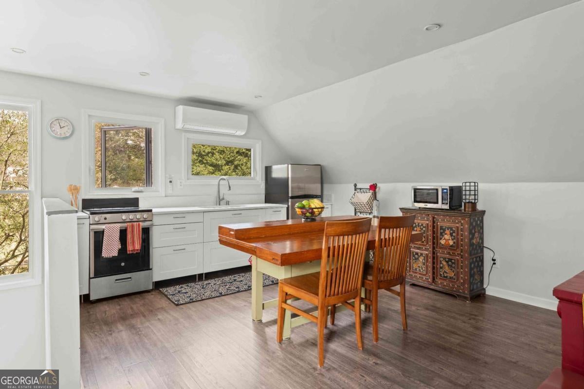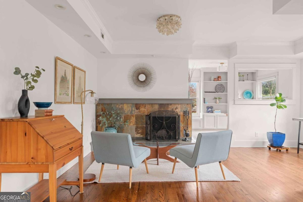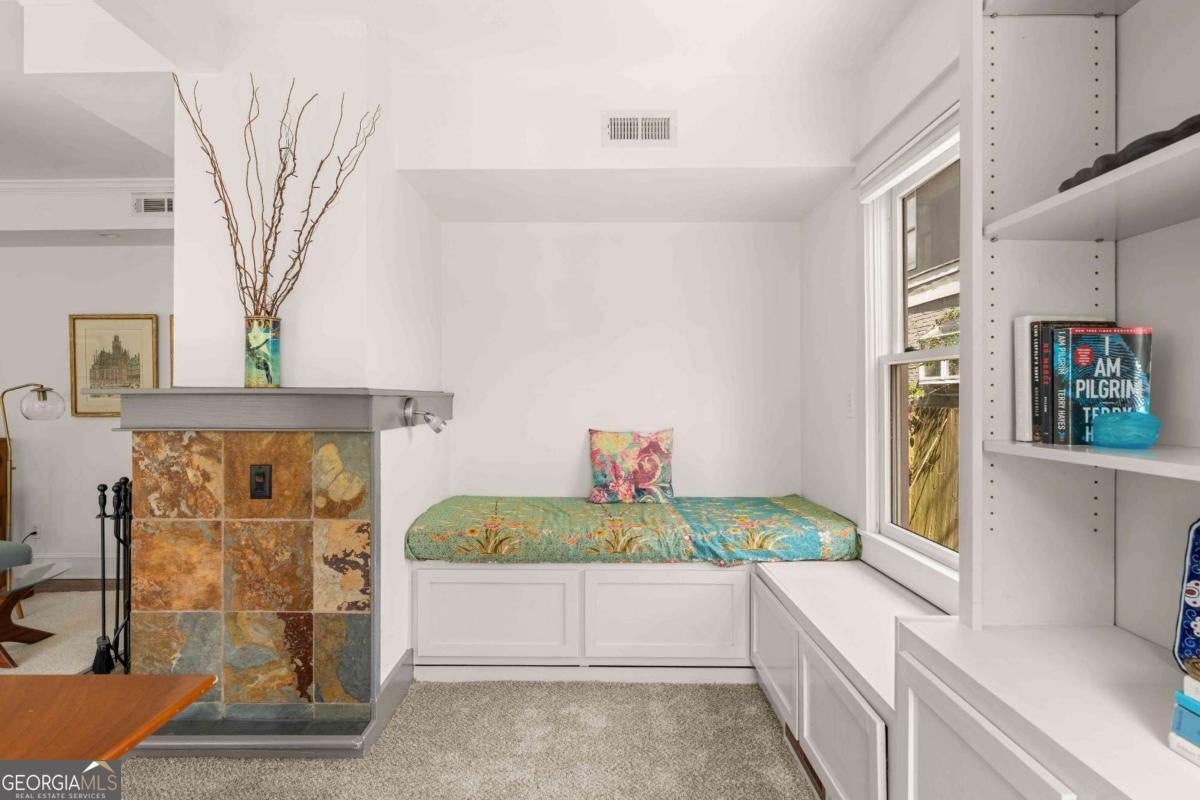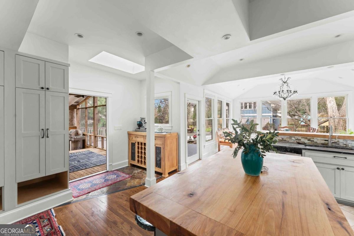 Imagine a residence that's far from ordinary, a sprawling estate on nearly half an acre with a setting so serene you'll find every excuse to spend time outdoors. 143 Maxwell Street is the one you've been waiting for. Located on one of Oakhurst's most beloved streets, the property features four bedrooms and three baths in the main residence, plus a private carriage house with its own bedroom and bath above the garage. As you enter, you are greeted by a stylish foyer anchored by a wood burning fireplace. A comfortable living room and dedicated office provide additional flexibility, while custom built-ins enhance the home's character. On your way to the kitchen and dining room, you will pass by a main floor bedroom and full bathroom, perfect for hosting guests. The updated kitchen is a chef's dream, complete with plenty of storage and an oversized pantry. It flows seamlessly into the dining area, where large windows fill the space with natural light and frame views of the enchanting backyard. Just off the kitchen, a screened porch and adjacent back deck create an effortless transition to outdoor living, ideal for quiet mornings, al fresco dining, or gathering with friends. Upstairs, two secondary bedrooms share a hall bath, while the primary suite serves as a treetop retreat. Highlights include generous closets, a reading nook with sunset views to the west, another gas fireplace, a well-appointed bath, and a balcony to take it all in. In the upstairs hallway, a ladder leads to a cozy hideout. Out back, the grounds feel like a hidden garden. Mature trees anchor the landscape creating privacy, while flowering plants, two stocked koi ponds, a firepit, and even a chicken coop create an atmosphere that feels both peaceful and alive. When everything is in bloom, it's nothing short of magical. The 800-square-foot garage accommodates two vehicles and includes a workshop that could easily transform into a studio, home gym, or creative space. The property also features plenty of off-street parking. Above the garage, the spacious carriage house includes a kitchen and living room in addition to the fifth bedroom and fourth bathroom. Whether welcoming visitors, hosting extended family, or generating rental income, this space adapts with ease. Life here extends well beyond the property line. Top-rated Decatur schools, neighborhood restaurants, coffee shops, and a local market are just moments away. Annual traditions like the Mad Ave Derby, Oakhurst Porchfest, and the Oakhurst Wine Crawl bring neighbors together and make this community unforgettable. More than simply an address, Maxwell Street offers a lifestyle rooted in connection, comfort, and possibility.