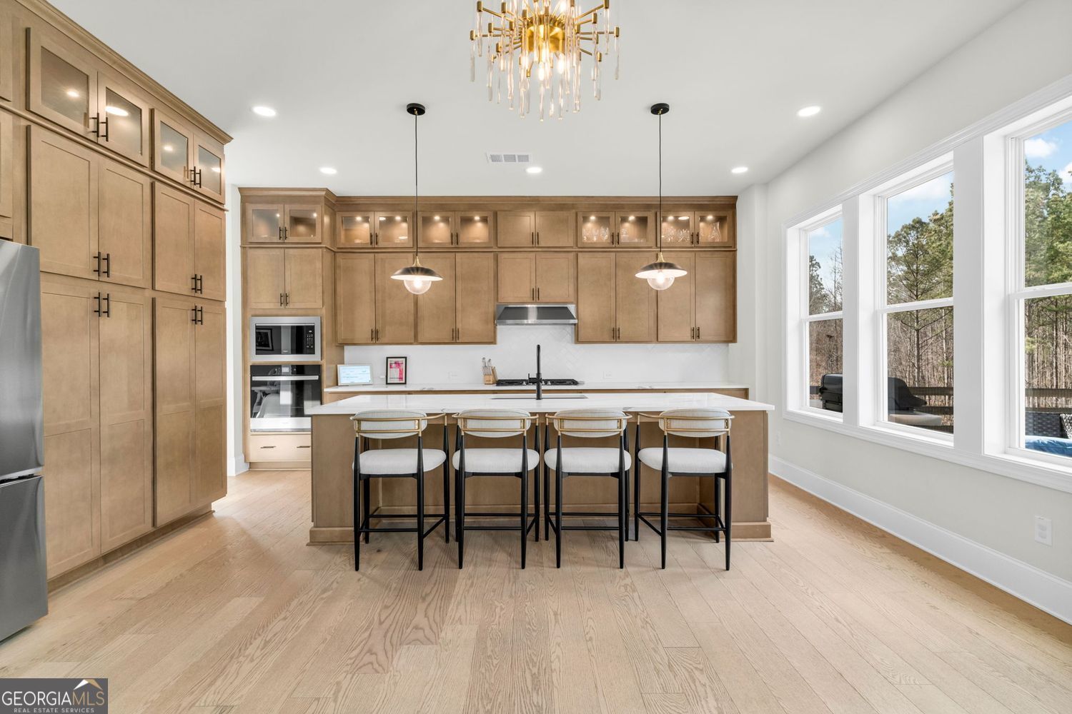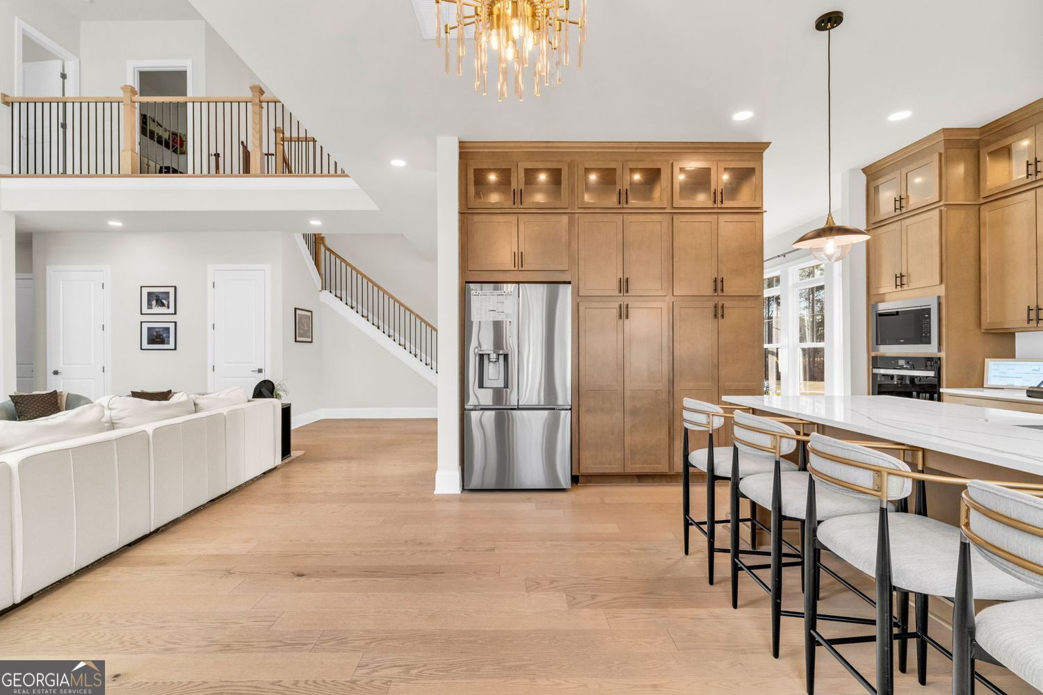 Better than NEW! This beautifully 5 bedroom, 4 full bath upgraded home offers style, comfort, and a dramatic two-story great room filled with natural sunlight that will "WOW" you. The great room includes one of a kind custom built-ins and wall of windows that overlook your private level backyard. You will fall in love with the open floor plan from the moment you entry the welcoming foyer. The floor plan is perfect for everyday living and entertaining, and includes a private office with custom double doors and an amazing oversized formal dining room. The gourmet kitchen features custom cabinetry, an oversized island, stainless steel appliances, eat-in breakfast area and plenty of space for gathering and enjoying this open floor plan that flows with sunlight. Upstairs, the primary suite boasts a large custom closet and a luxurious spa-like bath with double vanities, a soaking tub, and an upgraded shower. All secondary bedrooms are large and offer walk-in closets with plenty of closet and storage space. One bedroom on main level is the perfect bedroom, office or playroom. Additional highlights include built-in cabinetry, a custom mudroom, upgraded hardwood floors throughout, and a beautiful full bath on the main level. Conveniently located just minutes from Milton, Alpharetta, and Woodstock, this home offers the perfect blend of elegance, functionality, and location