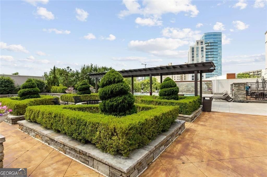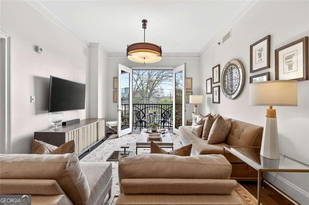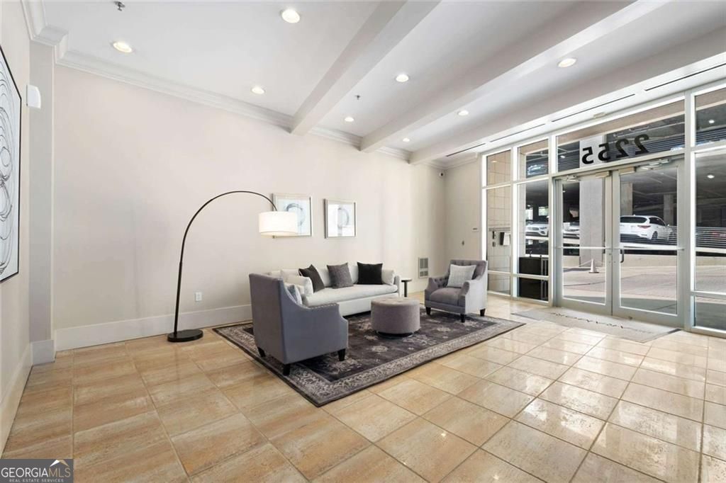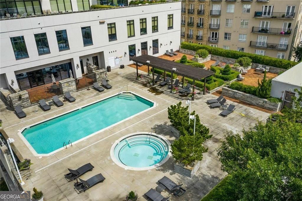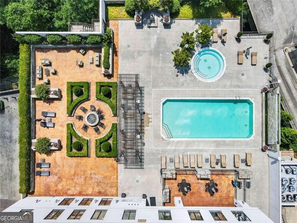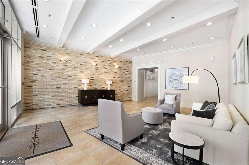 Tasteful renovations and appointments create the absolute perfect Buckhead retreat. You will be amazed with the attention to detail this beautiful home offers. Enter into a nice entry foyer with a large coat closet. There is a generous dining room (could also be an office or den space) just off the entry. The kitchen welcomes the cook with custom cabinetry, quartz countertops, designer tiled backsplash, designer hardware and fixtures. All appliances have been replaced with LG stainless steel dishwasher, range, microwave, and French Door refrigerator with water and ice system. Task lighting for food prep and ambient, top of cabinet lighting to create mood. Great counter space with a comfortable breakfast bar seating area. The living room is light filled from double atrium doors that access a private balcony. The owner's suite is spacious with great natural light from oversized windows with custom shades. There are two closets with generous storage. The owner's en-suite bathroom is a dream, completely renovated and remodeled with designer features throughout. Double doors with rain glass allow for privacy and light into the space. Double custom vanities with under mount sinks and marble counter tops add a sophisticated element. The oversized shower offers a built-in bench seat, designer tiles, frameless glass enclosure, and stylish hardware. Spa your cares away... Built-in speakers throughout the home are also provided from LOGITEK sound systems. The secondary bedroom is equally nice with oversized windows and custom window treatments. A walk-in closet offers great storage. The secondary bath, also a total remodel, again offers designer features throughout, including, vanity with storage and marble countertop, designer lighting, ceramic marble flooring, tub/shower with custom frameless glass sliding doors, tile surrounds and fixtures and hardware. There is a laundry closet with stackable GE washer/dryer included! The "quiet" exhaust fan also has a blue tooth speaker to allow for music play! There is a linen closet too. The home offers: designer lighting fixtures throughout, new interior 6 panel "modern" interior doors, molding and trim details, new neutral paint finishes, custom window treatments/shades, new LVP designer flooring, NEST programmable thermostat, built-in sound system in living room, kitchen, and owner's bedroom and bath, all lighting on dimmers. The Aramore offers gated, secure parking with two assigned spots and a pretty guest lobby. (New designer lobby and common areas in the works!) Take advantage of resort-style amenities including a rooftop patio with skyline views, grilling stations, outdoor fire pit, sparkling rooftop pool and pool deck, state-of-the-art fitness center and cardio gym, conference room, and a rentable guest suite for visitors, how nice is that! New Lobby design "coming soon", along with updates to interior common areas and hallways are already in progress. Elevated and tasteful. AN ADDED BONUS... the Atlanta Beltline expansion is expected to reach this area in June 2026, unlocking even greater connectivity and long-term value. Walkability to just about everything! Premier shopping and dining, Bobby Jones Golf Course, Atlanta's Art Center, Nightlife and entertainment, Hospitals and Doctors offices too! You will not find a more upgraded and renovated unit that compares! Absolutely the Best of Buckhead.