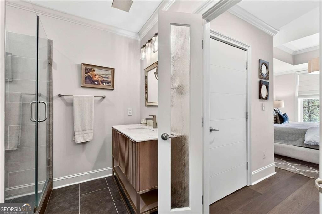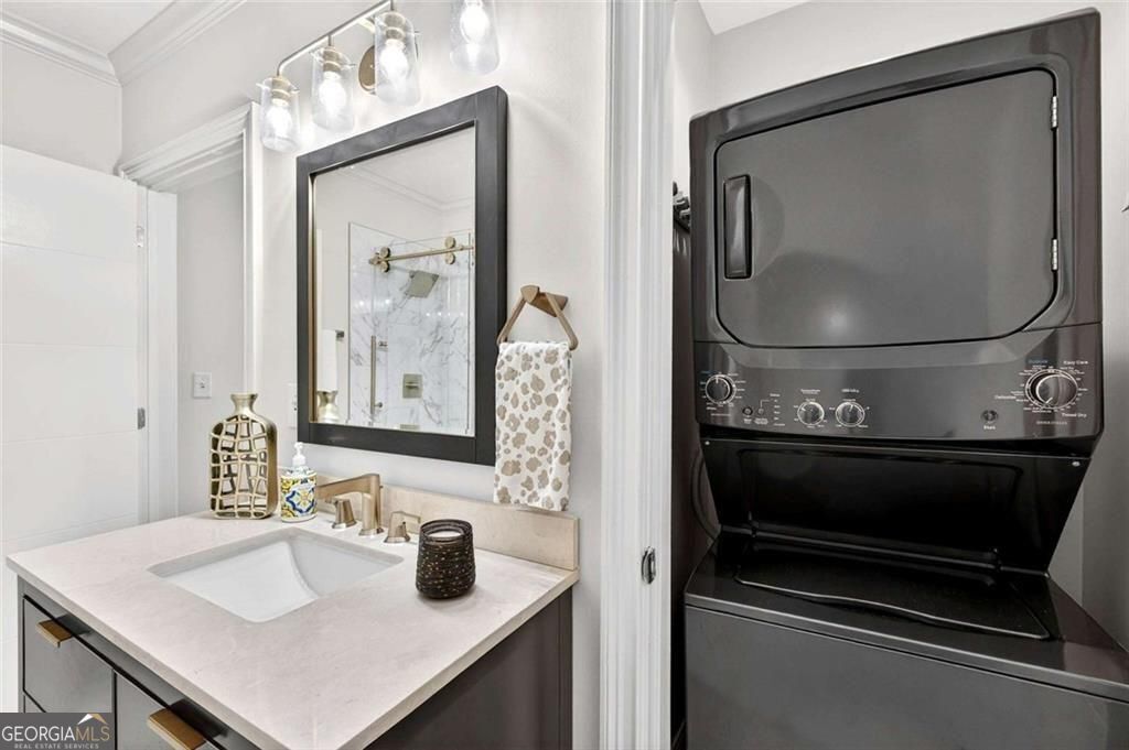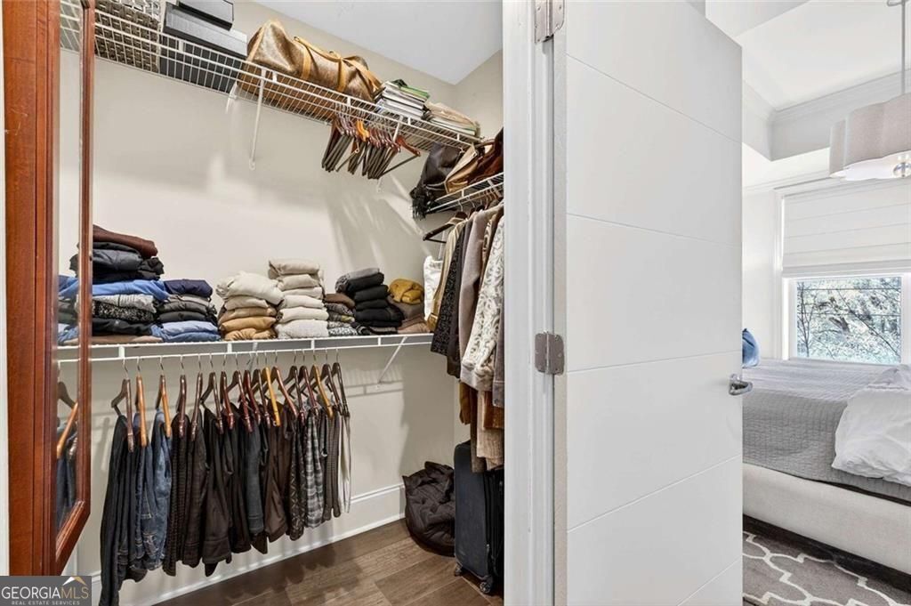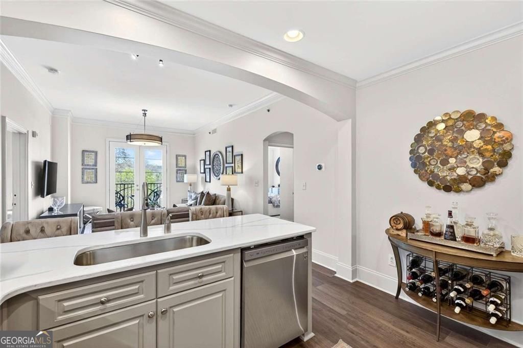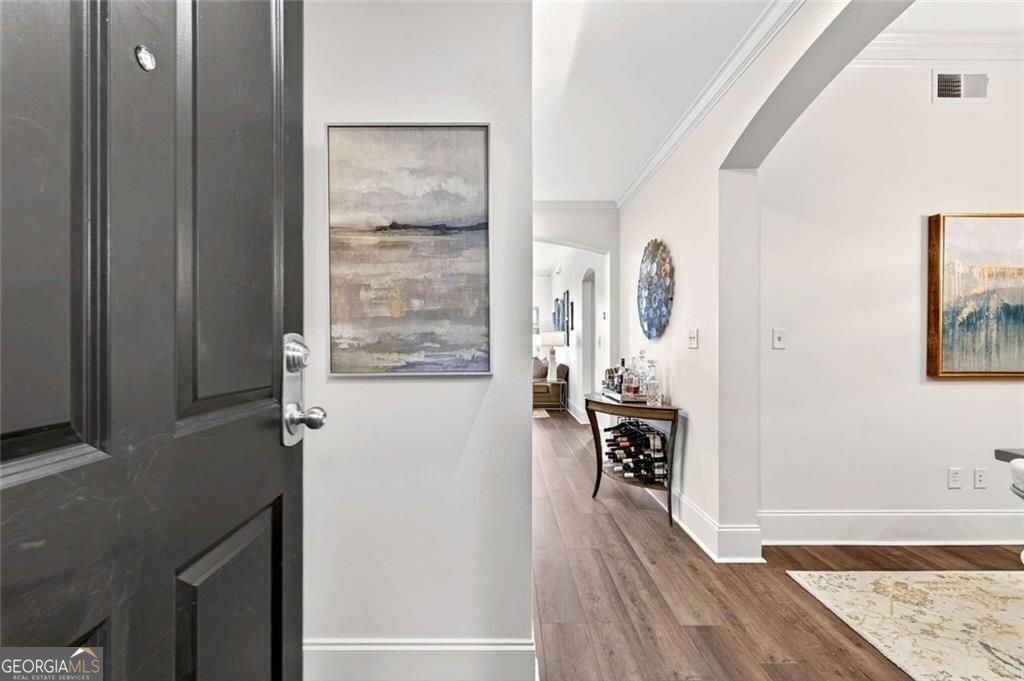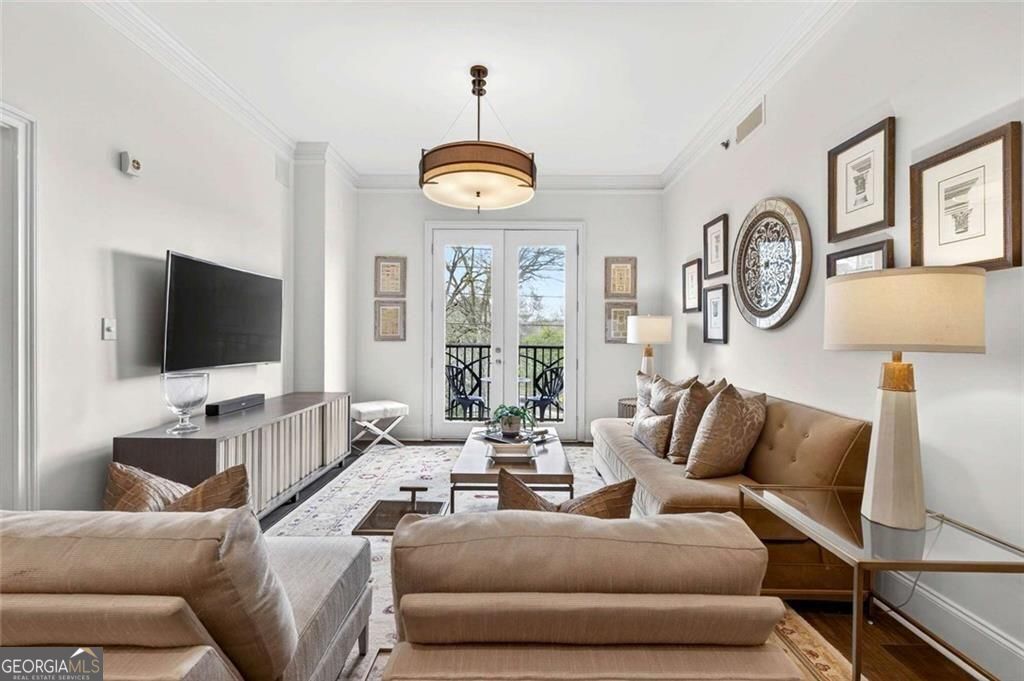 Tasteful renovations and appointments create the absolute perfect Buckhead retreat. You will be amazed with the attention to detail this beautiful home offers. Enter into a nice entry foyer with a large coat closet. There is a generous dining room (could also be an office or den space) just off the entry. The kitchen welcomes the cook with custom cabinetry, quartz countertops, designer tiled backsplash, designer hardware and fixtures. All appliances have been replaced with LG stainless steel dishwasher, range, microwave, and French Door refrigerator with water and ice system. Task lighting for food prep and ambient, top of cabinet lighting to create mood. Great counter space with a comfortable breakfast bar seating area. The living room is light filled from double atrium doors that access a private balcony. The owner's suite is spacious with great natural light from oversized windows with custom shades. There are two closets with generous storage. The owner's en-suite bathroom is a dream, completely renovated and remodeled with designer features throughout. Double doors with rain glass allow for privacy and light into the space. Double custom vanities with under mount sinks and marble counter tops add a sophisticated element. The oversized shower offers a built-in bench seat, designer tiles, frameless glass enclosure, and stylish hardware. Spa your cares away... Built-in speakers throughout the home are also provided from LOGITEK sound systems. The secondary bedroom is equally nice with oversized windows and custom window treatments. A walk-in closet offers great storage. The secondary bath, also a total remodel, again offers designer features throughout, including, vanity with storage and marble countertop, designer lighting, ceramic marble flooring, tub/shower with custom frameless glass sliding doors, tile surrounds and fixtures and hardware. There is a laundry closet with stackable GE washer/dryer included! The "quiet" exhaust fan also has a blue tooth speaker to allow for music play! There is a linen closet too. The home offers: designer lighting fixtures throughout, new interior 6 panel "modern" interior doors, molding and trim details, new neutral paint finishes, custom window treatments/shades, new LVP designer flooring, NEST programmable thermostat, built-in sound system in living room, kitchen, and owner's bedroom and bath, all lighting on dimmers. The Aramore offers gated, secure parking with two assigned spots and a pretty guest lobby. (New designer lobby and common areas in the works!) Take advantage of resort-style amenities including a rooftop patio with skyline views, grilling stations, outdoor fire pit, sparkling rooftop pool and pool deck, state-of-the-art fitness center and cardio gym, conference room, and a rentable guest suite for visitors, how nice is that! New Lobby design "coming soon", along with updates to interior common areas and hallways are already in progress. Elevated and tasteful. AN ADDED BONUS... the Atlanta Beltline expansion is expected to reach this area in June 2026, unlocking even greater connectivity and long-term value. Walkability to just about everything! Premier shopping and dining, Bobby Jones Golf Course, Atlanta's Art Center, Nightlife and entertainment, Hospitals and Doctors offices too! You will not find a more upgraded and renovated unit that compares! Absolutely the Best of Buckhead.