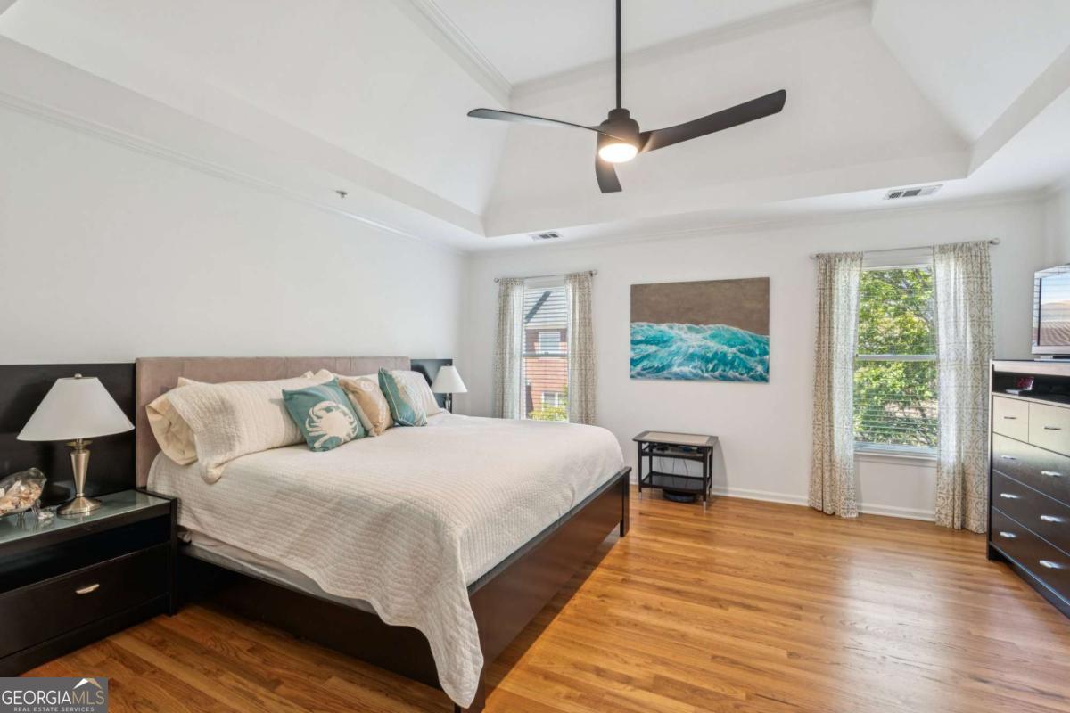 Modern Elegance Meets Unrivaled Connectivity Nestled within a prestigious gated enclave by John Wieland, this 3.5-bath townhouse represents the gold standard of Alpharetta living. The residence has been transformed by extensive renovations, highlighted by a designer half-bath with gold tile and a fully finished terrace level. The open-concept floor plan is anchored by high-end lighting from West Elm and Shades of Light, flowing naturally toward a newly constructed $11,000 deck. Beyond the home's interior beauty lies its greatest asset: connectivity. Enjoy the rare luxury of gated nature trails crossing Johns Creek, linking your front door to the upscale boutiques of Avalon and the historic charm of Downtown. This is more than a home; it is a gateway to the best of North Georgia.