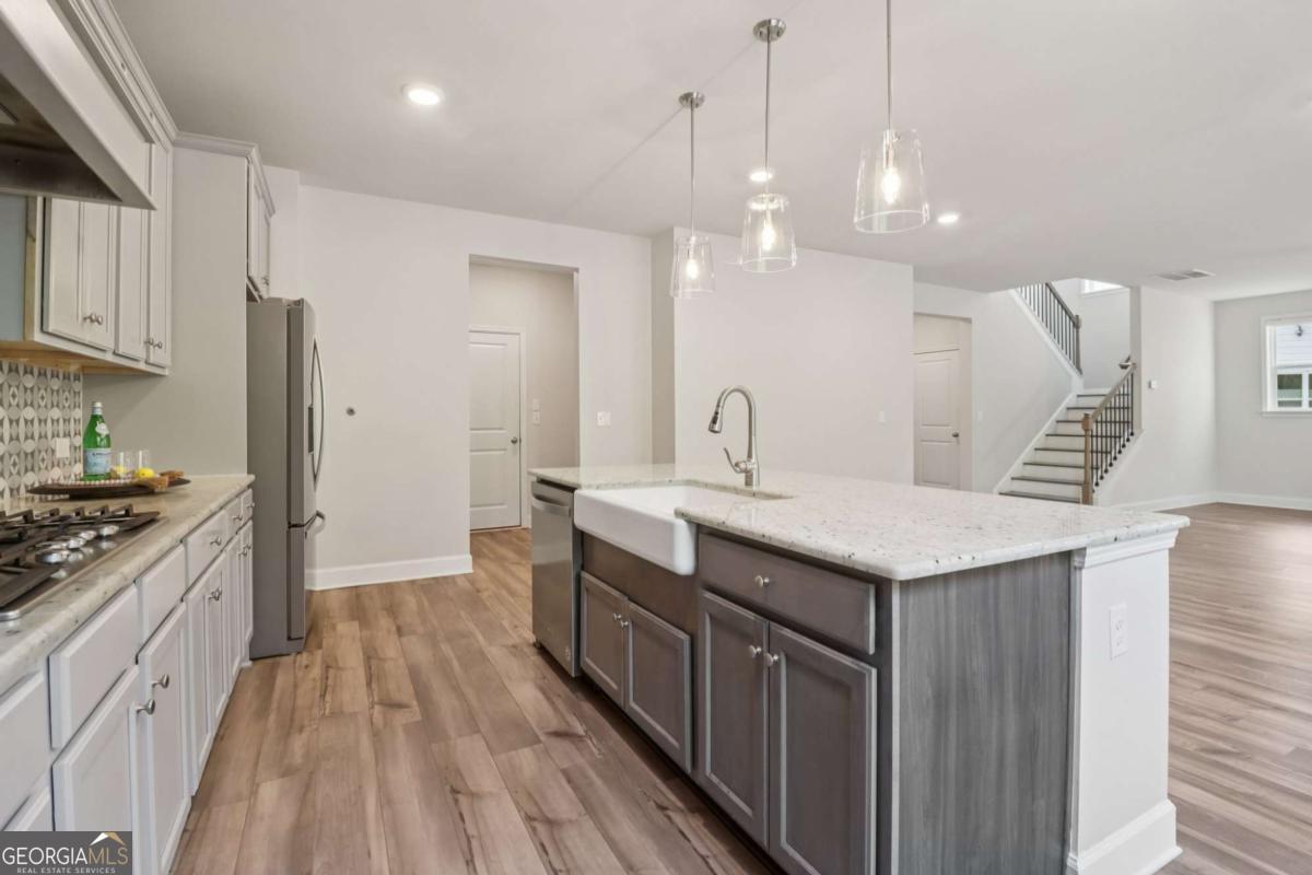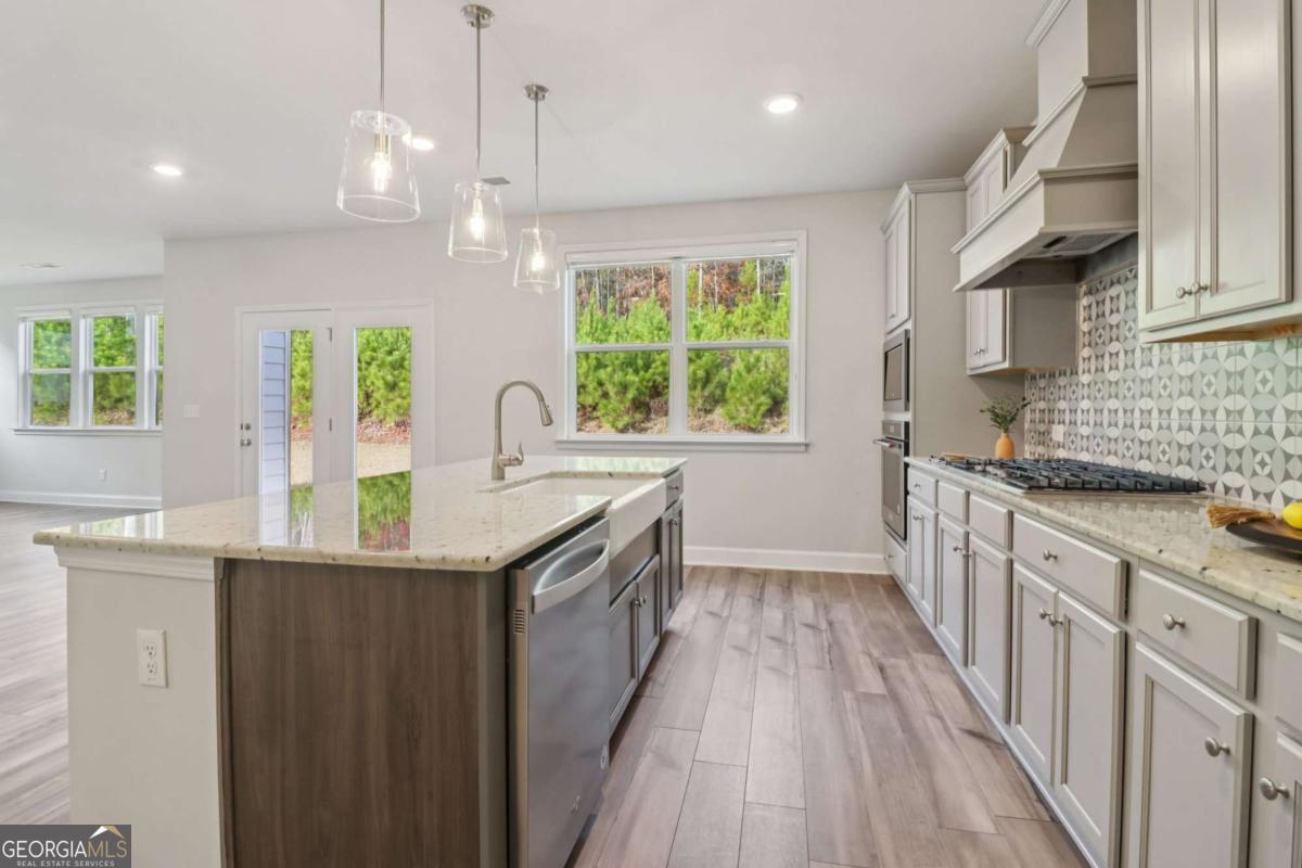 Spacious five-bedroom, four-bath home available for lease in the desirable Trinity Falls community. Built in 2021, this home offers a flexible and functional layout with a main-level bedroom and full bath-ideal for guests, multi-generational living, or a private home office. The home is also currently listed for sale (MLS #7669097); however, if a lease is secured, the home will be removed. Natural light fills the open main living area, centered around a gas-start brick fireplace and flowing seamlessly into the kitchen for easy everyday living and entertaining. The kitchen features a large center island, stone countertops, a five-burner gas cooktop with vent hood, walk-in pantry, and direct access to the rear porch for indoor-outdoor gatherings. Upstairs, the oversized primary suite includes dual vanities, a whirlpool soaking tub, separate walk-in shower, and a generous walk-in closet. One secondary bedroom offers a private ensuite bath, while two additional bedrooms share a full bath. The upstairs laundry room adds everyday convenience. The level backyard sits within a quiet cul-de-sac setting and provides plenty of usable space for relaxing, entertaining, or enjoying the outdoors. Residents of Trinity Falls enjoy community amenities including swim, tennis, pickleball, playground, and dog park. Conveniently located just minutes from I-985, Mall of Georgia, Downtown Buford, Lake Lanier, and nearby parks and greenway trails, this home offers both space and accessibility in one of Buford's most convenient locations.