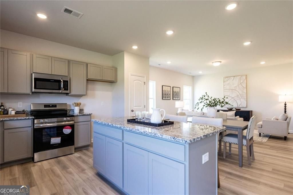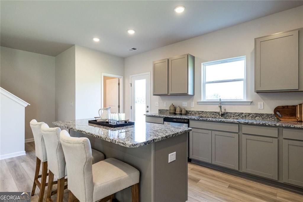Move-In Ready June! The Manchester II, by Smith Douglas Homes, located in the desirable and growing Hillcrest Park community. This beautifully crafted new construction home in Ringgold, GA is a thoughtfully designed 3-bedroom, 2.5-bath home that blends modern style, comfort, and everyday functionality-perfect for today's lifestyle. Step inside to discover an inviting open-concept floor plan that seamlessly connects the living room, dining area, and kitchen. The main level features durable luxury vinyl plank flooring, offering both style and easy maintenance while creating a warm, cohesive flow throughout the main living spaces. Additional windows throughout the home allow abundant natural light to fill each room, enhancing the spacious feel and welcoming atmosphere. The kitchen is a standout feature, ideal for both everyday living and entertaining. It showcases stainless steel appliances, upgraded 36-inch cabinetry, granite countertops, and a large center island that provides extra workspace and casual seating. Whether you're preparing meals, hosting friends, or enjoying morning coffee, this kitchen offers both beauty and practicality. Just off the living area, step outside to your covered patio, the perfect spot for outdoor relaxation, grilling, or entertaining guests while enjoying the peaceful surroundings of Hillcrest Park. Upstairs, the private primary suite serves as a relaxing retreat featuring a spacious walk-in closet and a spa-inspired bathroom complete with a separate soaking tub and walk-in shower. Two additional bedrooms offer comfortable accommodations and share convenient access to a full secondary bathroom, making this layout ideal for families, guests, or a home office. Plush carpet flooring upstairs adds warmth and comfort to the private living spaces. Located in Ringgold, Georgia, Hillcrest Park offers convenient access to Chattanooga, shopping, dining, parks, and major commuter routes, making it an excellent choice for buyers seeking new homes in Ringgold GA with modern features and a prime location. Photos are representative of the Manchester II floor plan. Features, finishes, colors, and upgrades may vary. Seller incentives with use of preferred lender.