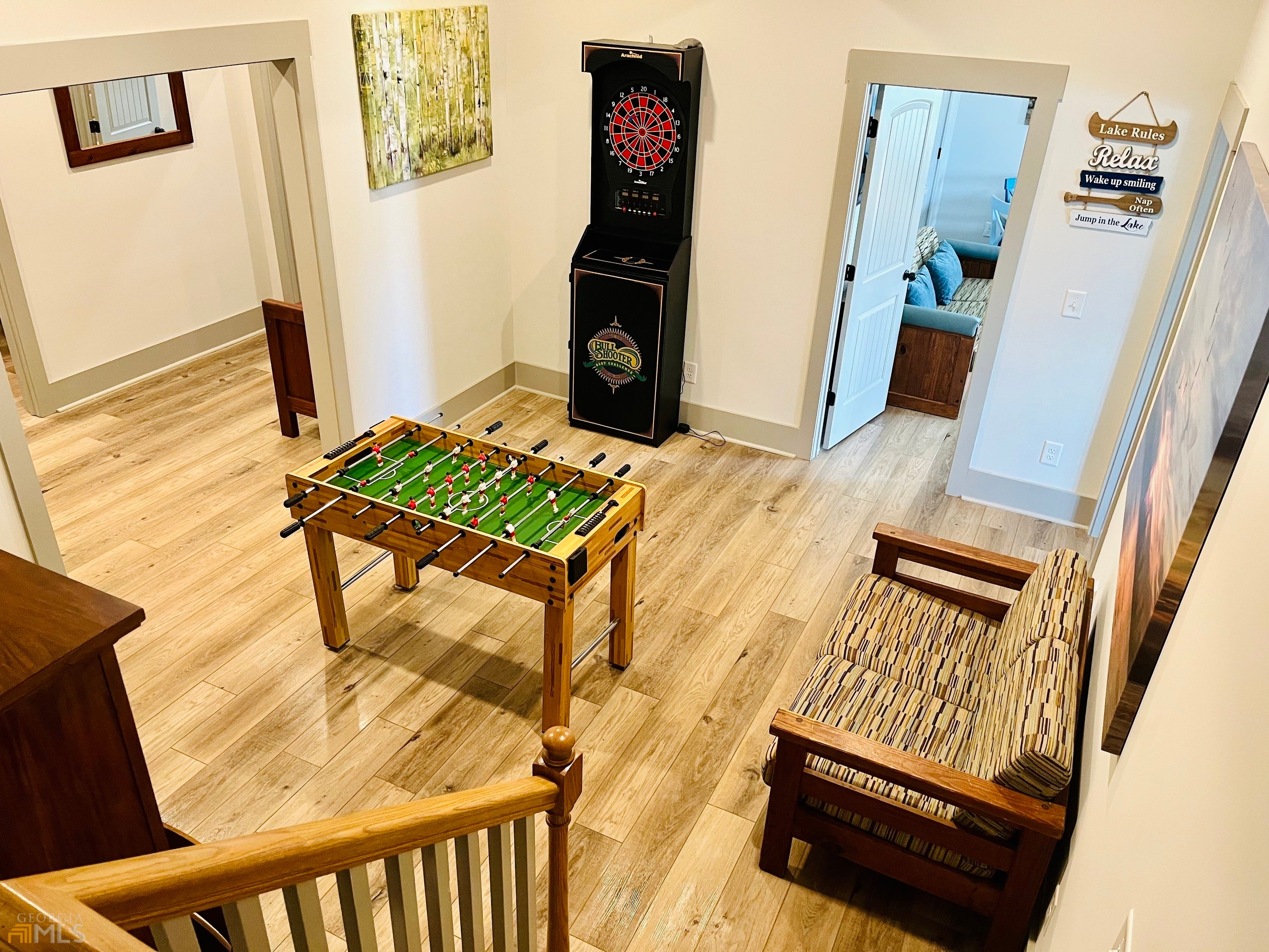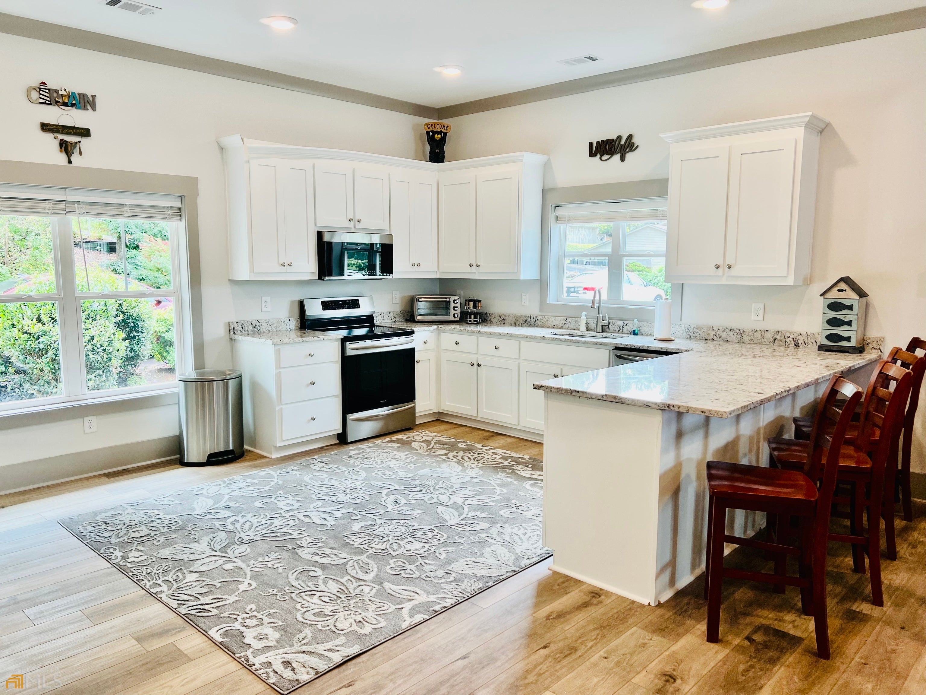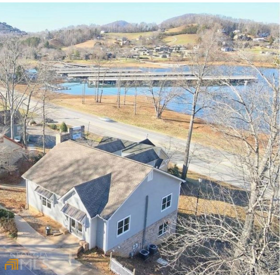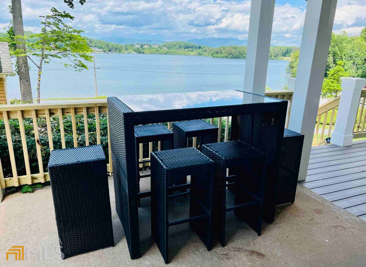Unique property with lake/mountain views, 1-2 blocks from several restaurants and marina!! Unparalleled views of lake with mountains beyond! NO HOA RESTRICTIONS! Turnkey active STR sold with all furnishings. This 4 bedroom/3 full bathroom Craftsman style home was renovated down to studs with tax records showing "effective year built" 2021. Upon entering double front doors with parking directly in front, you are welcomed into a large foyer. The main level features a wide, expansive, open space shared by the kitchen, dining and family areas. The primary bedroom, oversized bathroom, walk-in closet with full sized washer/dryer, are also on this main level. There is another full bathroom off the foyer, offering extra shower space for guests! The white kitchen has updated white/grey granite (and throughout the bathrooms). Stainless steel appliances include a range with an induction cooktop, and an air fryer plus convection oven modes! High, smooth ceilings with grey crown moulding throughout the home. On STR sites set up as 2 full units - main level and terrace level. As you go downstairs to the terrace level you are greeted by a flex space currently used as a game room, but could be an eating space or bunk room. Off this central area are 3 extra large bedrooms, each with multiple beds (one bedroom is currently being used as a secondary family room). There is an additional full kitchen and a 2nd washer and dryer set on this level as well. The kitchen area could be converted into another full sized bathroom for this level. The back of the house features amazing lake AND mountain views! The deck offers covered and uncovered spaces on both levels. You'll love waking up to the gorgeous views in 3 of the 4 bedrooms! The terrace level also has smooth finished 10 foot ceilings (no drop ceilings here)!! Entire home has matching luxury vinyl wood plank flooring for easy cleaning. Fully fenced yard enclosing a rebuilt 16 ft wide gazebo, and firepit w/bench seating. There is a gravel driveway for extra parking and to enter the lower level with ease or use the sidewalks which allow step-less entry to the lower level as well. Like 2 homes in 1 and the perfect space for large family gatherings or groups! CONVENIENCE - From this home you can walk to 4 restaurants all with live music options! The Ridges Marina is about a block away to dock your boat plus rentals avail for all water activities (including a fun blow up water obstacle course in the summer)! Only 1 mile to the GA Mtn Fairgrounds for concerts, fairs and more, also featuring Hamilton Gardens. This is the perfect, beautiful home base for your lake/mountain life, and all that nature has to offer for fun activities nearby!! 3 miles away @Brasstown Valley Resort enjoy golf, horseback riding, restaurant and Equani Spa. Within minutes you can do river tubing, wineries, hiking, mountain biking, fishing, boating, jet skiing, canoeing, paddle boarding, bars, restaurants, antique shopping, clothing and grocery shopping! This is not a remote mountain house! This property is an established rental on several STR platforms all with 5 star reviews! Each level has a separate exterior entrance with keyless coded locks with an interior staircase door separating the units if you choose - house can be used/rented as whole house OR separate units. Both floors are fully equipped with a full kitchen, living room, bedroom(s), bathroom(s), laundry rooms, decks and even separate parking! Parking directly in front AND on the private street with plenty of room for a boat trailer, gravel driveway for terrace level, plus additional public parking lot access (down hill next to yellow house) covers all your needs! Don't miss this unique opportunity to use this as a beautiful fully updated home as your primary oasis, vacation home or rental property with great income! Perfect vacation home that can pay for itself when combined with a STR plan! ASSUMABLE 3.9% LOAN FOR APPROVED BANK BUYERS