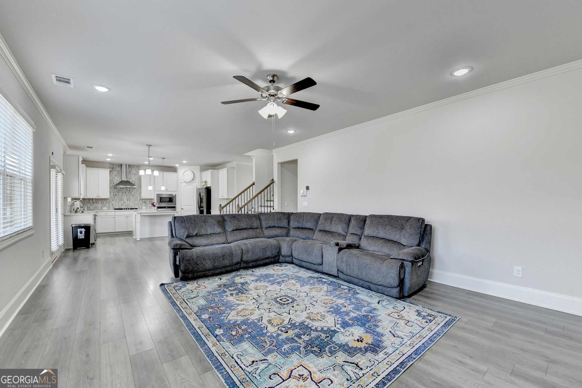 Welcome to this beautifully maintained 5-bedroom, 4-bath home in the highly desirable LORING swim/tennis community in Forsyth County, featuring the popular Grayson floor plan by DR Horton. Designed with both comfort and functionality in mind, this home offers an inviting open-concept layout, abundant natural light, and stylish modern finishes throughout. The main level features luxury vinyl plank flooring and a bright two-story family room with dramatic windows that fill the space with natural light, creating a warm and welcoming atmosphere. The spacious fireside family room with custom built-in shelving seamlessly connects to the kitchen, making it perfect for both everyday living and entertaining. The chef-inspired kitchen serves as the heart of the home and features quartz countertops, stainless steel appliances, premium white cabinetry, designer tile backsplash, a large center island, and a walk-in pantry, offering both beauty and functionality. A formal dining room with elegant coffered ceilings provides the perfect space for hosting gatherings, while the main-level guest bedroom with a full bath offers excellent flexibility for visitors, in-laws, or a private home office. Upstairs, the oversized owner's suite offers a relaxing retreat complete with a spa-style bathroom and expansive walk-in closet. Three additional secondary bedrooms-one with a private en-suite bath and two sharing a hall bath-provide ample space for family or guests. A large upstairs loft offers incredible versatility and can be used as a media room, playroom, home office, or secondary living area. The home includes a 2-car garage with additional storage space (builder option in lieu of a third-car garage). Step outside to enjoy the covered patio overlooking a spacious backyard, perfect for outdoor dining, relaxing evenings, or weekend gatherings. Residents of Loring enjoy resort-style amenities including a swimming pool, clubhouse, tennis courts, volleyball court, playground, and sidewalks throughout the neighborhood. Ideally located just minutes from GA-400, Highway 20, shopping, dining, entertainment, and Lake Lanier, this home is also zoned for top-rated Forsyth County schools and benefits from low county taxes. Move-in ready and beautifully maintained, this home offers the perfect blend of style, space, and convenience in one of Cumming's most sought-after communities. Don't miss this opportunity!