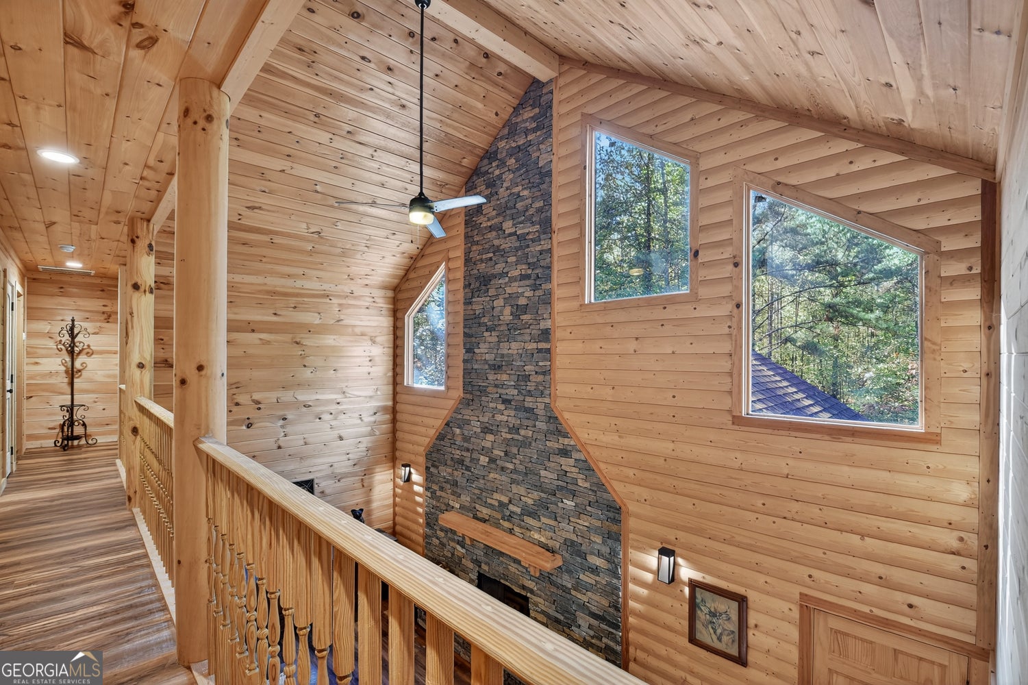 Discover true mountain living in this authentic log home situated on 22.60 picturesque acres. This 6-bedroom, 4-bath home offers endless possibilities - from a private family retreat to a mini-farm or recreational getaway. Approximately 5 acres of cleared pasture provide open space and include a stick-built hunting blind, perfect for wildlife viewing or outdoor enjoyment. Step inside to find a spacious open-concept floor plan with soaring ceilings and large windows that fill the home with natural light. The kitchen and living room combo features a real rock wood-burning fireplace, creating a warm and inviting gathering space. The main floor offers a large master suite with private bath, plus a second bedroom and full bath on the opposite end of the home for added privacy. Upstairs, you'll find four oversized bedrooms and two additional full bathrooms, providing plenty of room for family and guests. Enjoy peaceful mornings and quiet evenings on the covered porch with a cozy outdoor fireplace, surrounded by the sights and sounds of nature. The property also includes two outbuildings-a workshop and a storage building-along with walking trails and a creek that could easily be transformed into a pond. If peace, privacy, and natural beauty are what you're looking for, this well-built and energy-efficient log home delivers it all. And all this just 83 miles from Atlanta Hartsfield Airport.