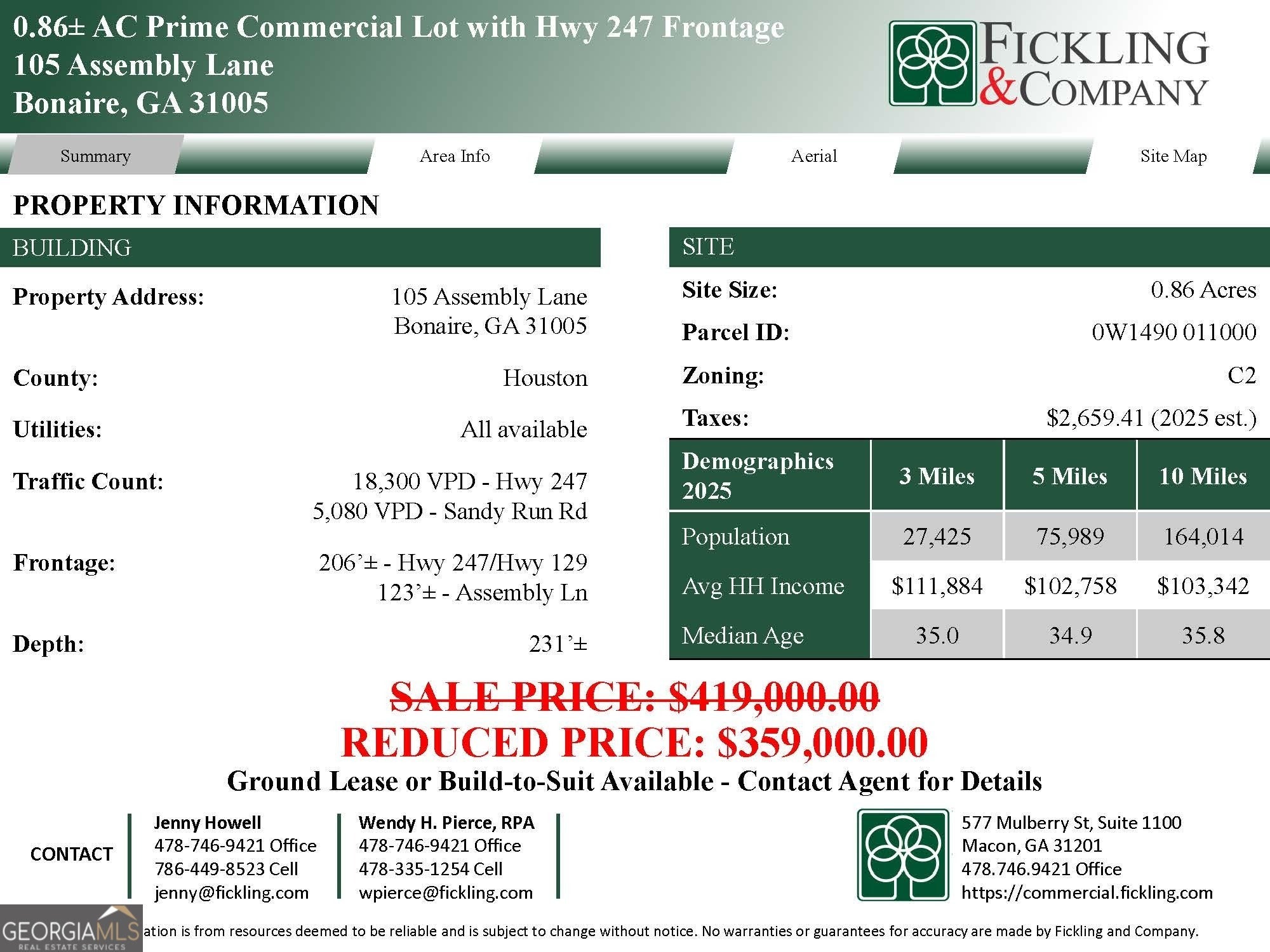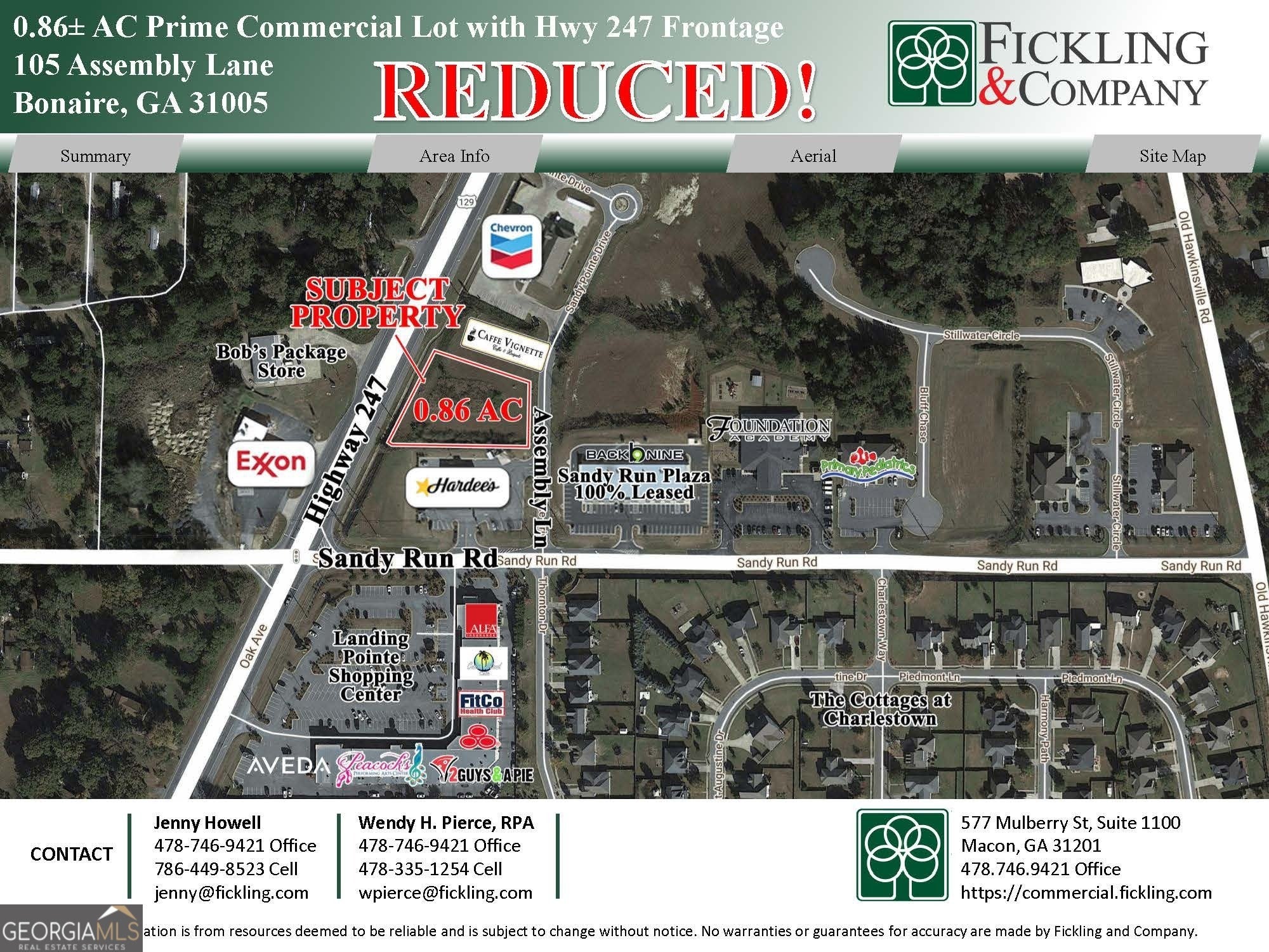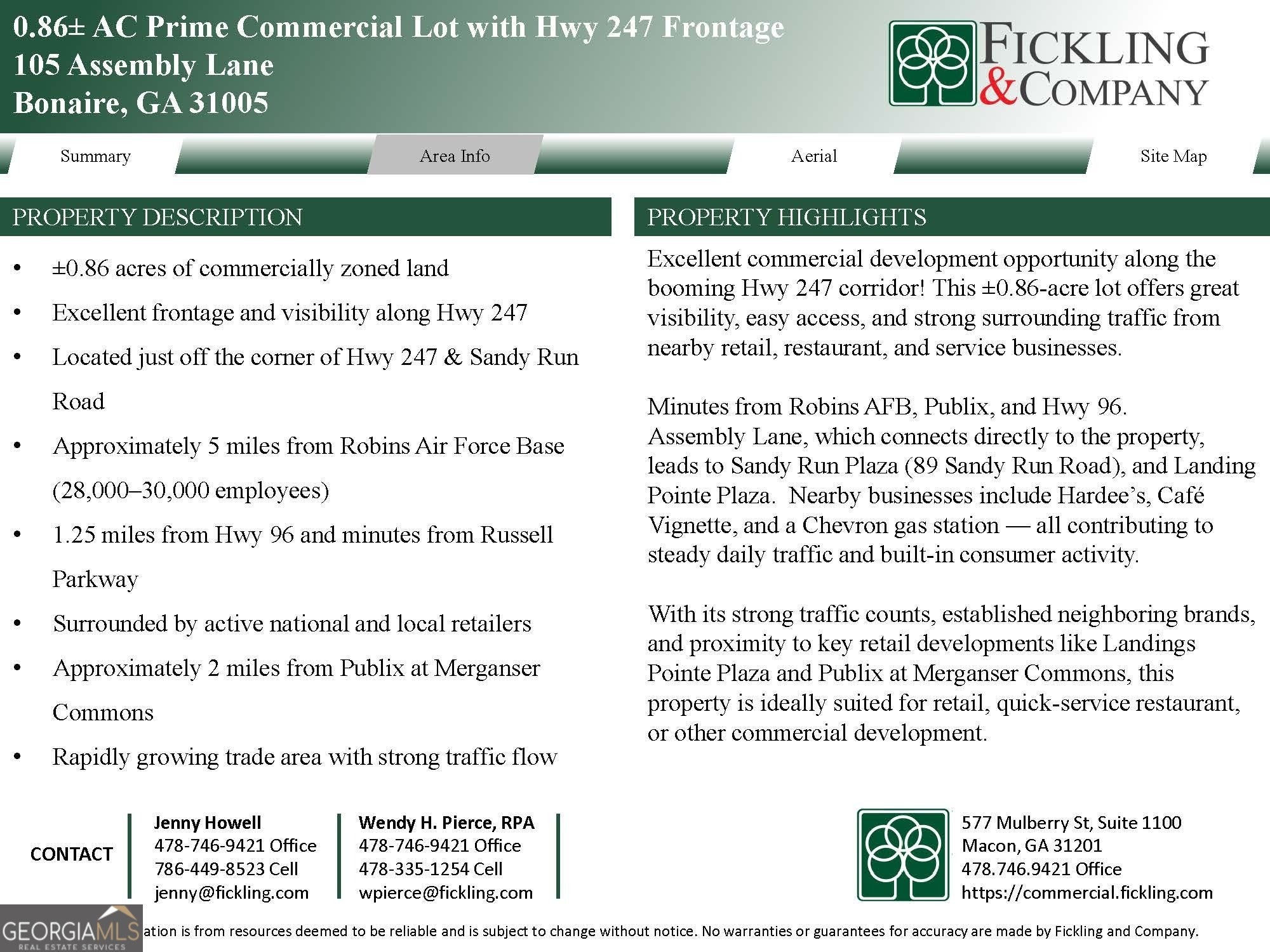 Reduced Price! Excellent commercial development opportunity along the booming Hwy 247 corridor! This 0.86-acre lot offers great visibility, easy access, and strong surrounding traffic from nearby retail, restaurant, and service businesses. With its strong traffic counts, established neighboring brands, and proximity to key retail developments like Landings Pointe Plaza and Publix at Merganser Commons, this property is ideally suited for retail, quick-service restaurant, or other commercial development. Minutes from Robins AFB, Publix, and Hwy 96. Assembly Lane, which connects directly to the property, leads to Sandy Run Plaza (89 Sandy Run Road), and Landing Pointe Plaza. Nearby businesses include Hardee's, Cafe Vignette, and a Chevron gas station - all contributing to steady daily traffic and built-in consumer activity.