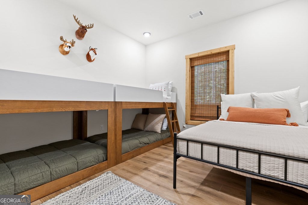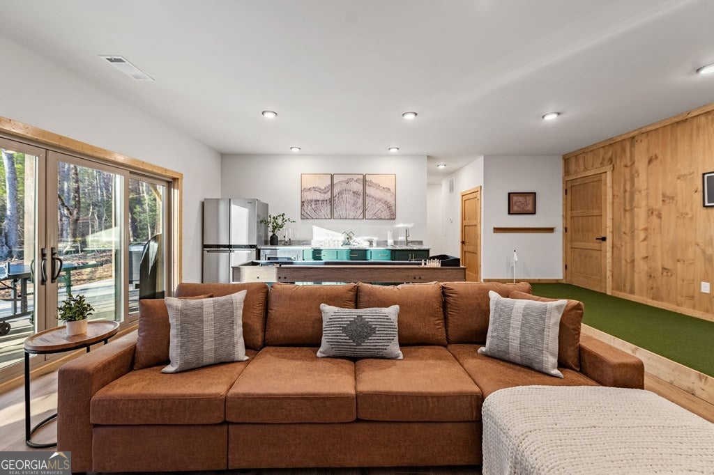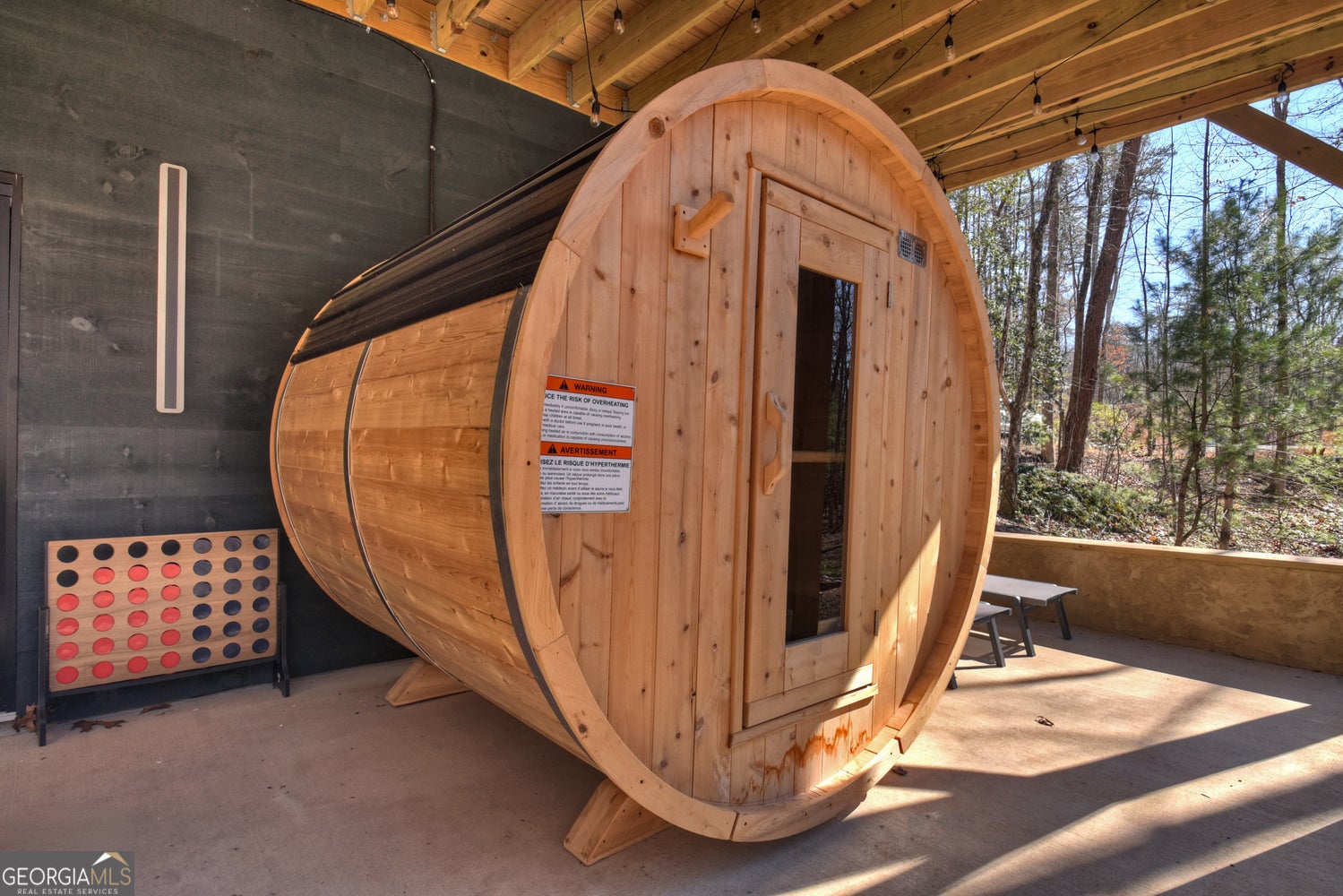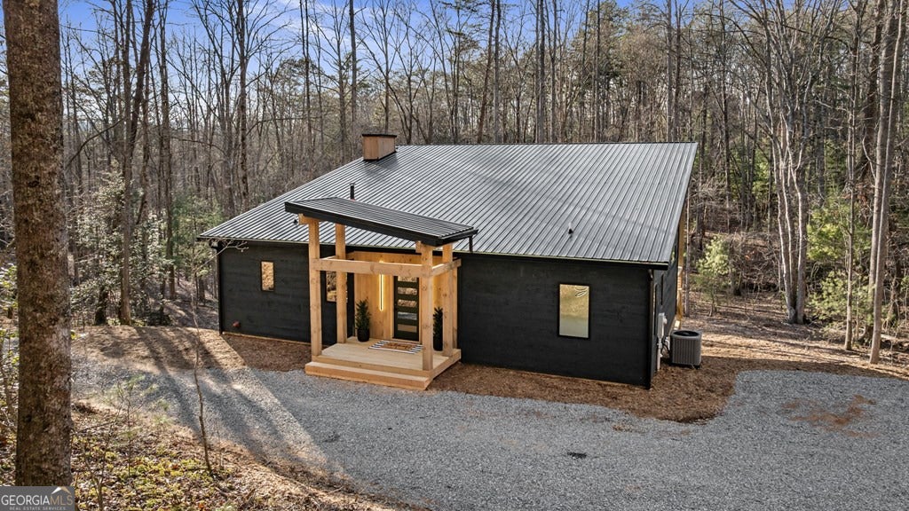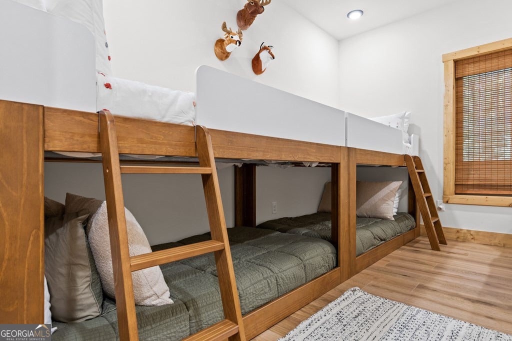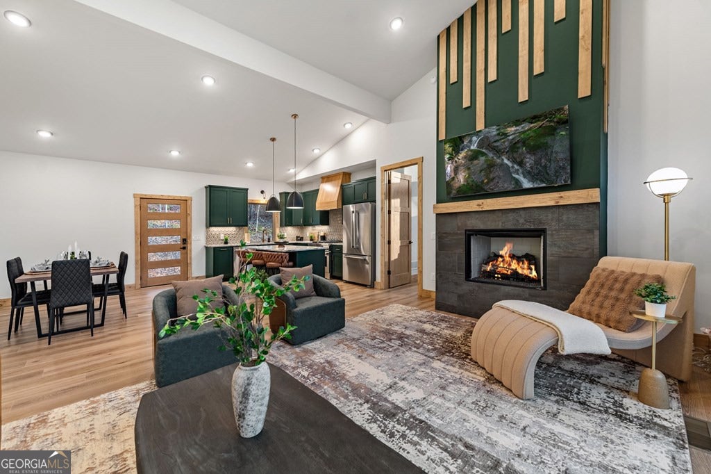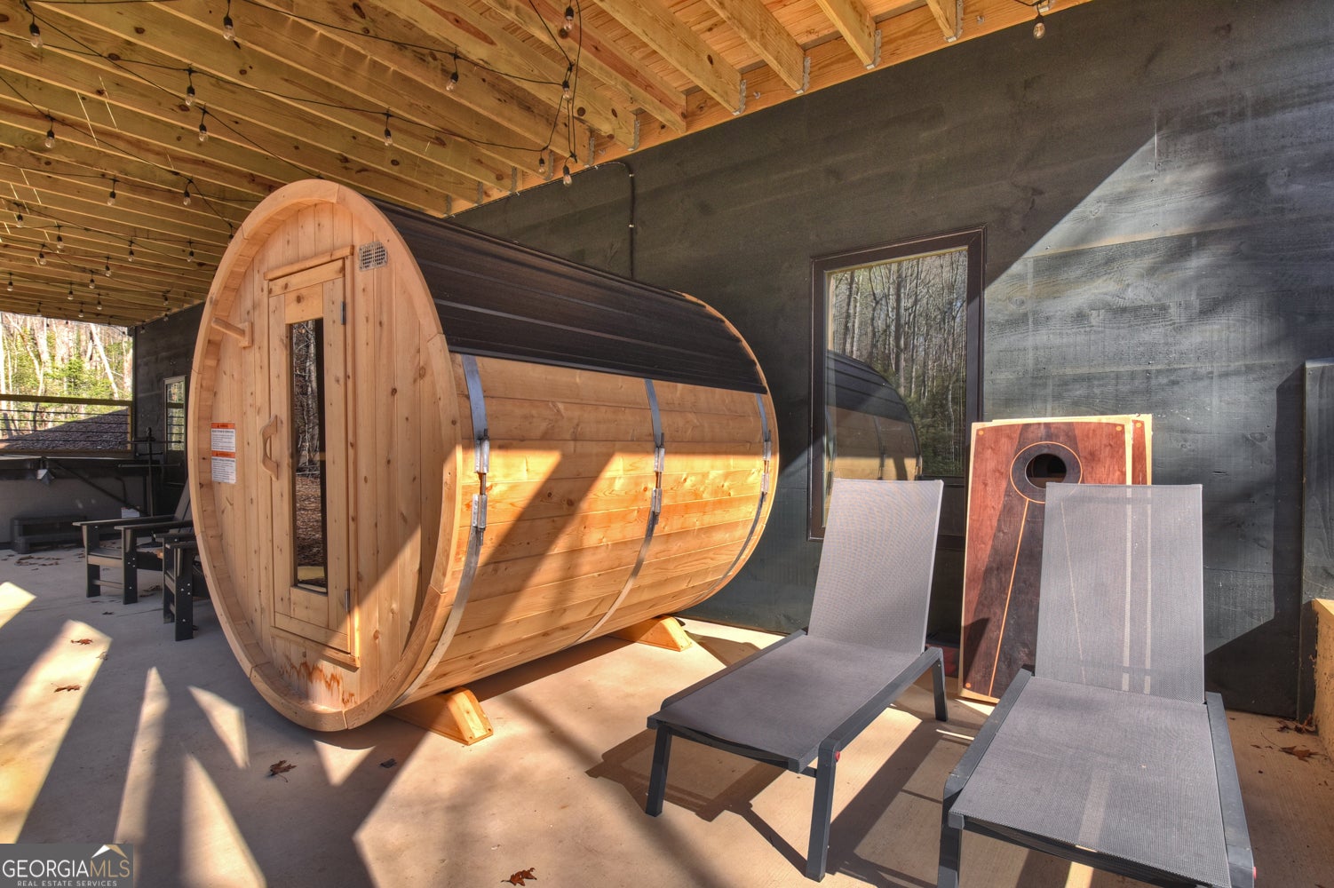 Welcome to Blue Fern-where refined luxury meets the unhurried beauty of the North Georgia mountains. Tucked at the end of a quiet cul-de-sac on 1.22 private, usable acres, this like new, fully furnished retreat redefines the Blue Ridge cabin experience. The open-concept main level flows perfectly with a chef's kitchen featuring JennAir appliances, a 36" gas range, custom cabinetry, and a dedicated coffee bar. The primary suite offers wooded views and a spa-caliber ensuite with soaking tub, custom tile shower, and dual vanities. A second main-level bedroom enjoys its own beautifully finished bath. The finished terrace level features a large bunk room sleeping six, an additional bedroom, full bath, wet bar, and dedicated fitness area-ideal for groups or maximizing rental potential. Outside, level usable grounds-rare in the mountains-are appointed with covered living spaces, a wood-burning fireplace, fire pit, hot tub, and private barrel sauna. Additional highlights include a whole-house generator, EV charging station, and tankless hot water heater. Just 10 minutes from downtown Blue Ridge and Lake Blue Ridge-the perfect balance of seclusion and convenience. 3 BR + Bunk Room 3 BA 1.22 Acres Turnkey & Fully Furnished STR-Ready
