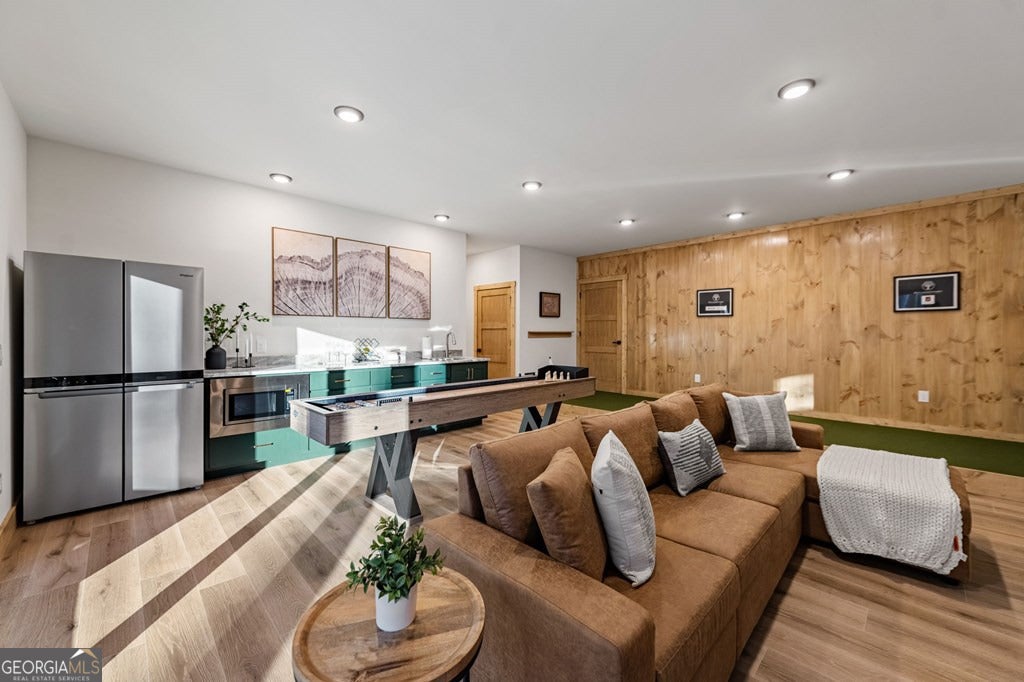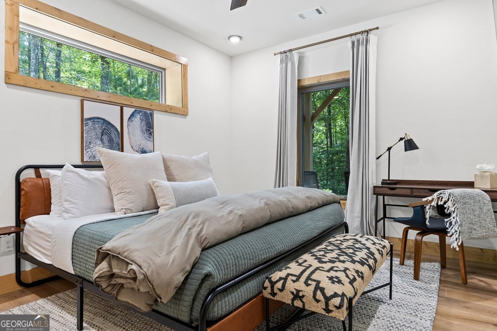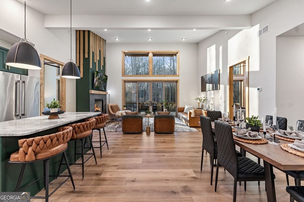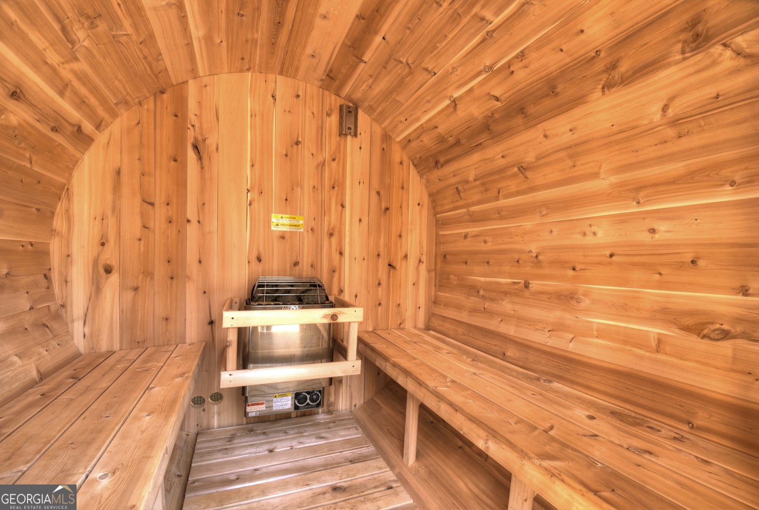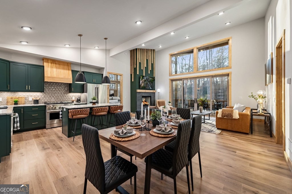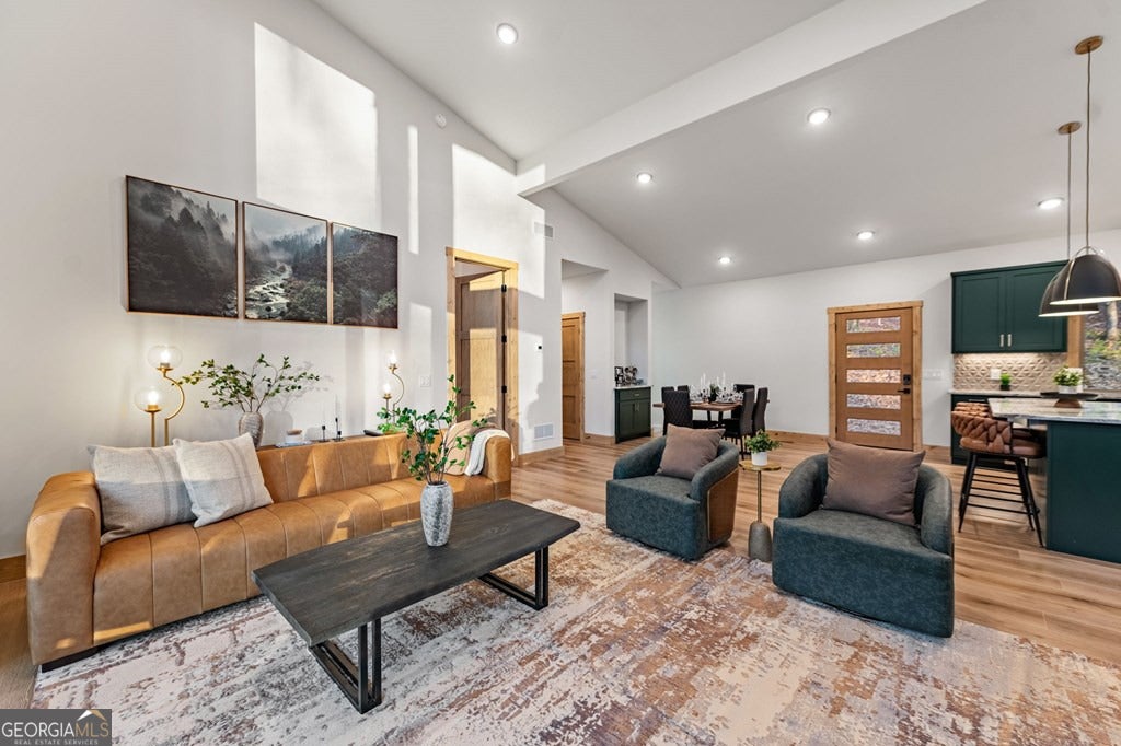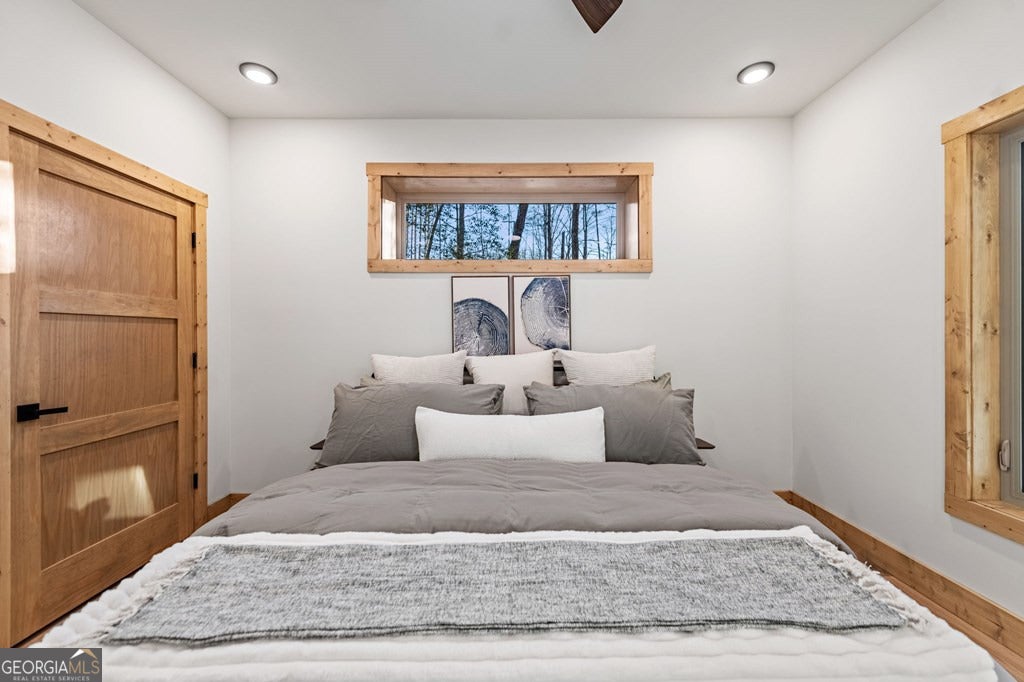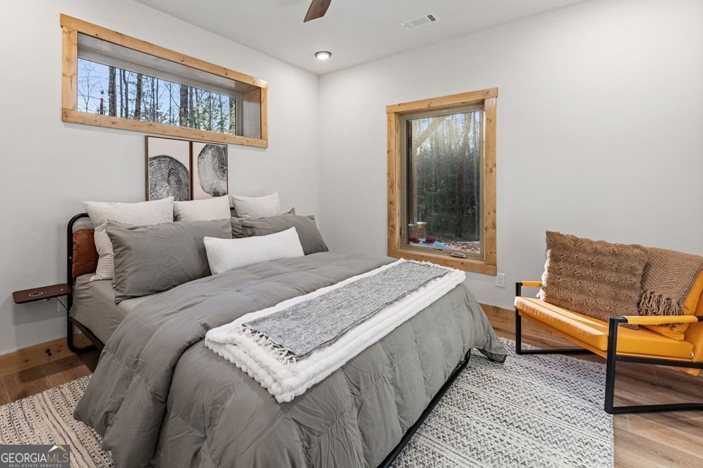 Welcome to Blue Fern-where refined luxury meets the unhurried beauty of the North Georgia mountains. Tucked at the end of a quiet cul-de-sac on 1.22 private, usable acres, this like new, fully furnished retreat redefines the Blue Ridge cabin experience. The open-concept main level flows perfectly with a chef's kitchen featuring JennAir appliances, a 36" gas range, custom cabinetry, and a dedicated coffee bar. The primary suite offers wooded views and a spa-caliber ensuite with soaking tub, custom tile shower, and dual vanities. A second main-level bedroom enjoys its own beautifully finished bath. The finished terrace level features a large bunk room sleeping six, an additional bedroom, full bath, wet bar, and dedicated fitness area-ideal for groups or maximizing rental potential. Outside, level usable grounds-rare in the mountains-are appointed with covered living spaces, a wood-burning fireplace, fire pit, hot tub, and private barrel sauna. Additional highlights include a whole-house generator, EV charging station, and tankless hot water heater. Just 10 minutes from downtown Blue Ridge and Lake Blue Ridge-the perfect balance of seclusion and convenience. 3 BR + Bunk Room 3 BA 1.22 Acres Turnkey & Fully Furnished STR-Ready