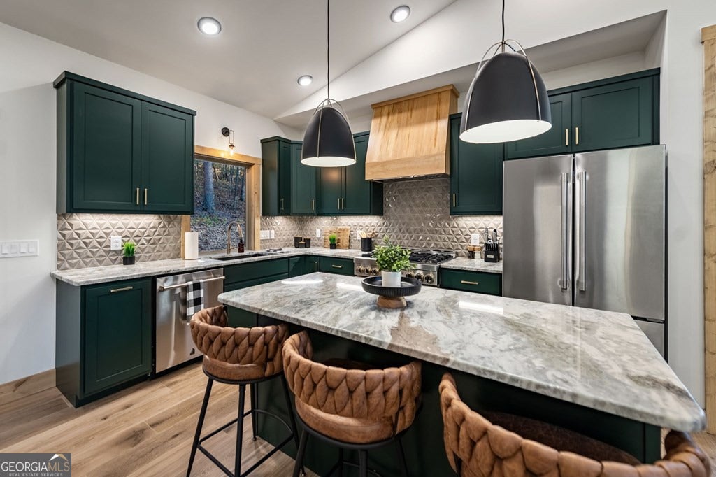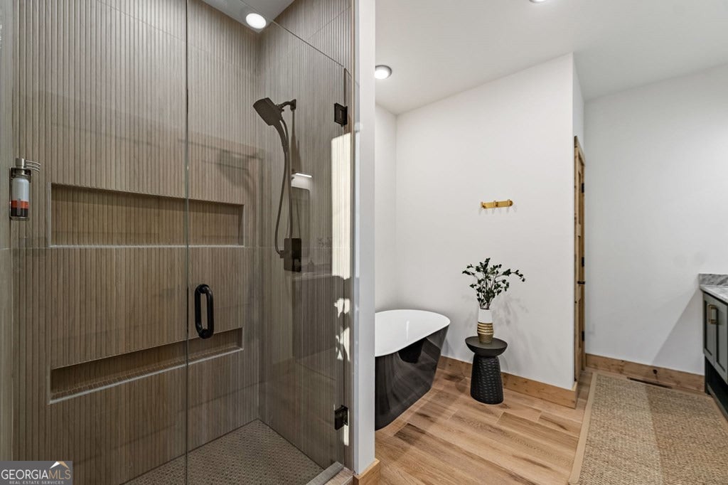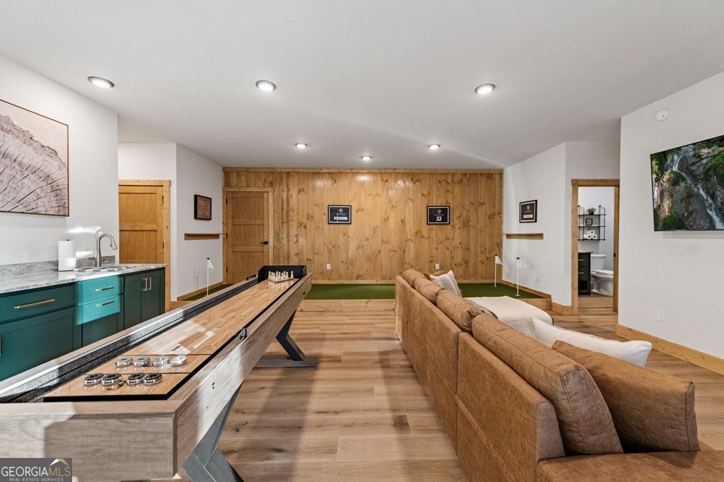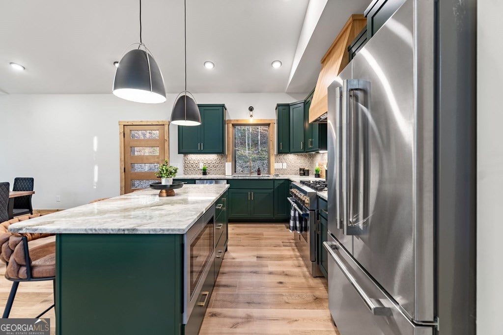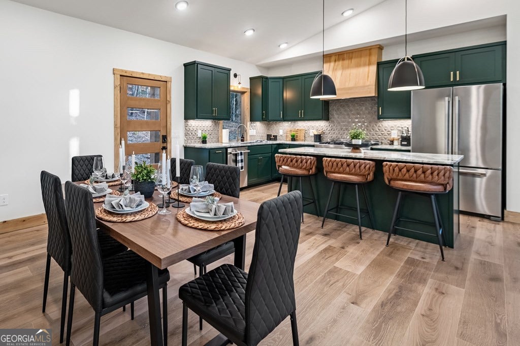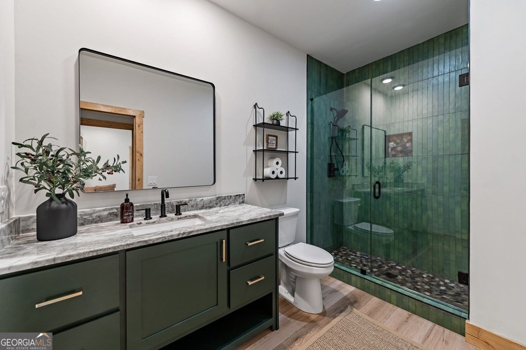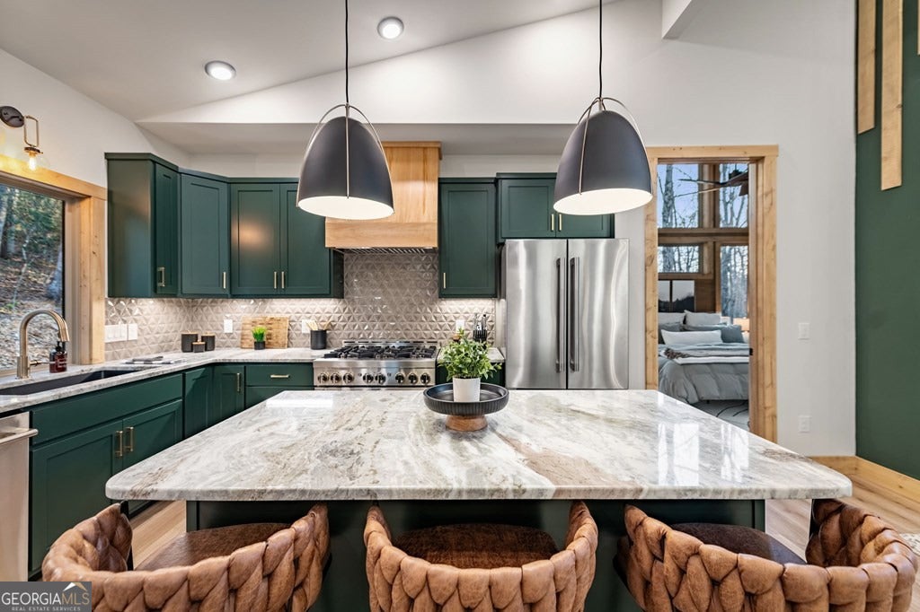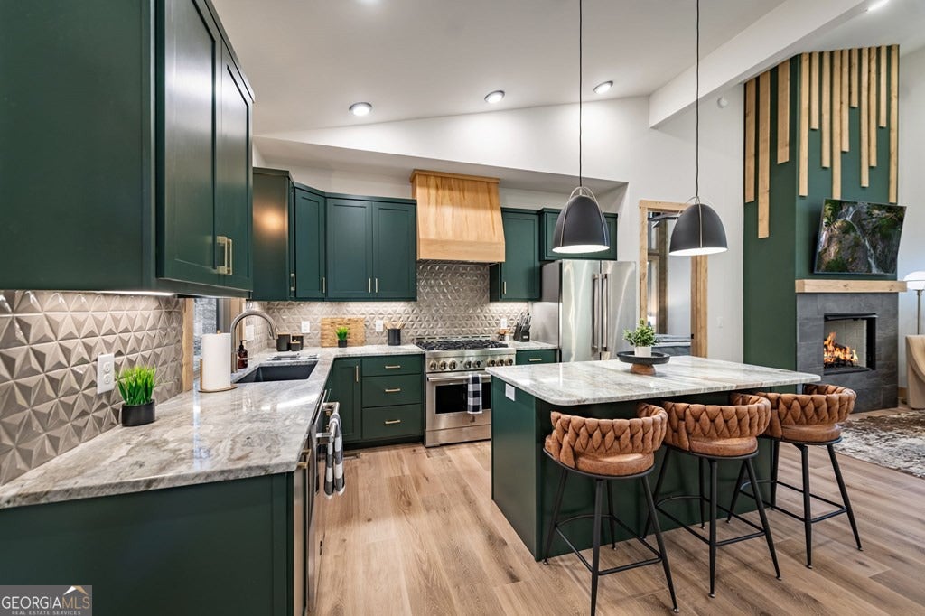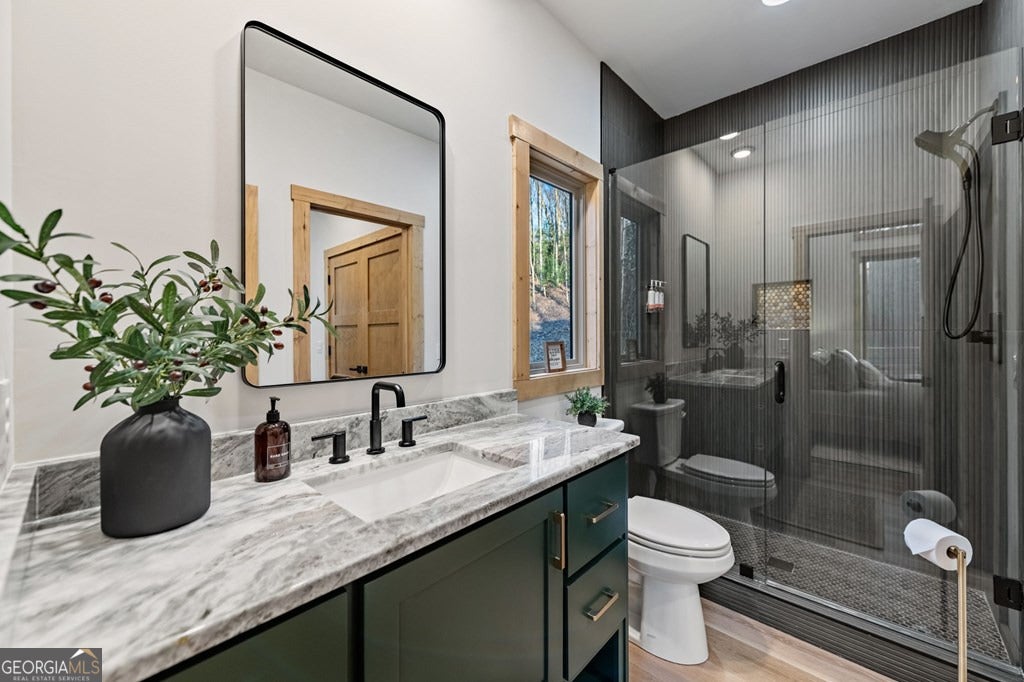 Welcome to Blue Fern-where refined luxury meets the unhurried beauty of the North Georgia mountains. Tucked at the end of a quiet cul-de-sac on 1.22 private, usable acres, this like new, fully furnished retreat redefines the Blue Ridge cabin experience. The open-concept main level flows perfectly with a chef's kitchen featuring JennAir appliances, a 36" gas range, custom cabinetry, and a dedicated coffee bar. The primary suite offers wooded views and a spa-caliber ensuite with soaking tub, custom tile shower, and dual vanities. A second main-level bedroom enjoys its own beautifully finished bath. The finished terrace level features a large bunk room sleeping six, an additional bedroom, full bath, wet bar, and dedicated fitness area-ideal for groups or maximizing rental potential. Outside, level usable grounds-rare in the mountains-are appointed with covered living spaces, a wood-burning fireplace, fire pit, hot tub, and private barrel sauna. Additional highlights include a whole-house generator, EV charging station, and tankless hot water heater. Just 10 minutes from downtown Blue Ridge and Lake Blue Ridge-the perfect balance of seclusion and convenience. 3 BR + Bunk Room 3 BA 1.22 Acres Turnkey & Fully Furnished STR-Ready