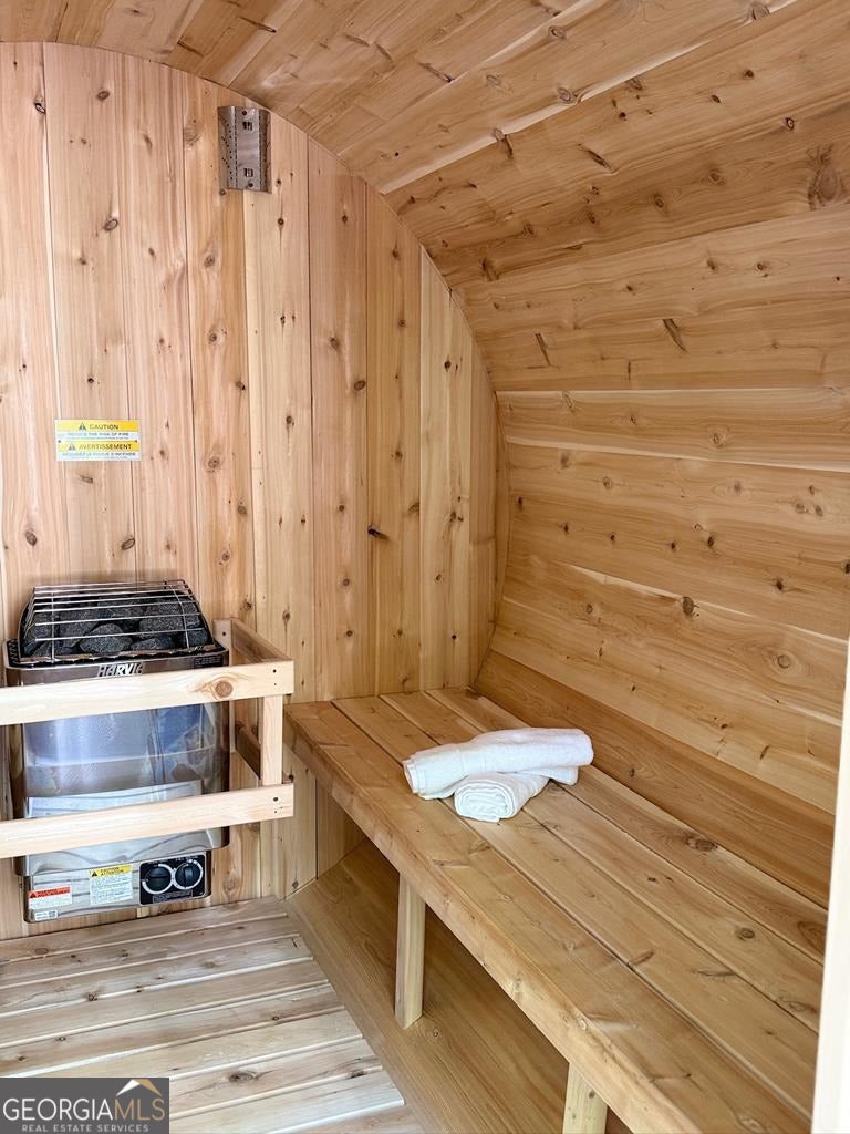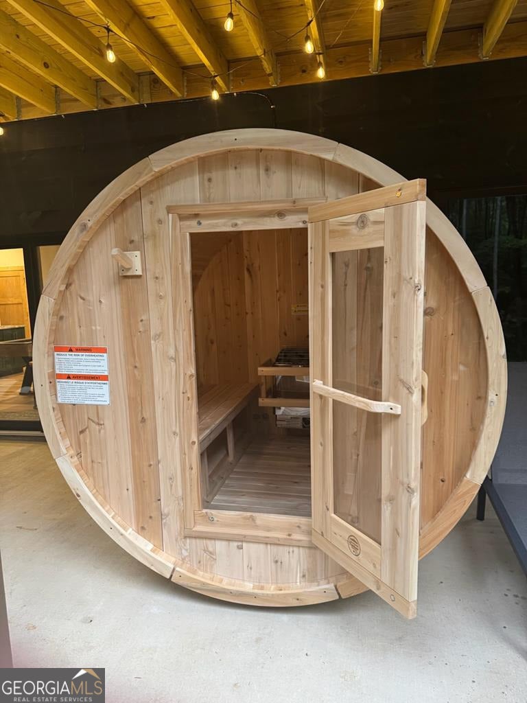 - Interior FeaturesBeamed Ceilings, Double Vanity, High Ceilings, Master On Main Level, Soaking Tub, Vaulted Ceiling(s), Wet Bar, Sauna
