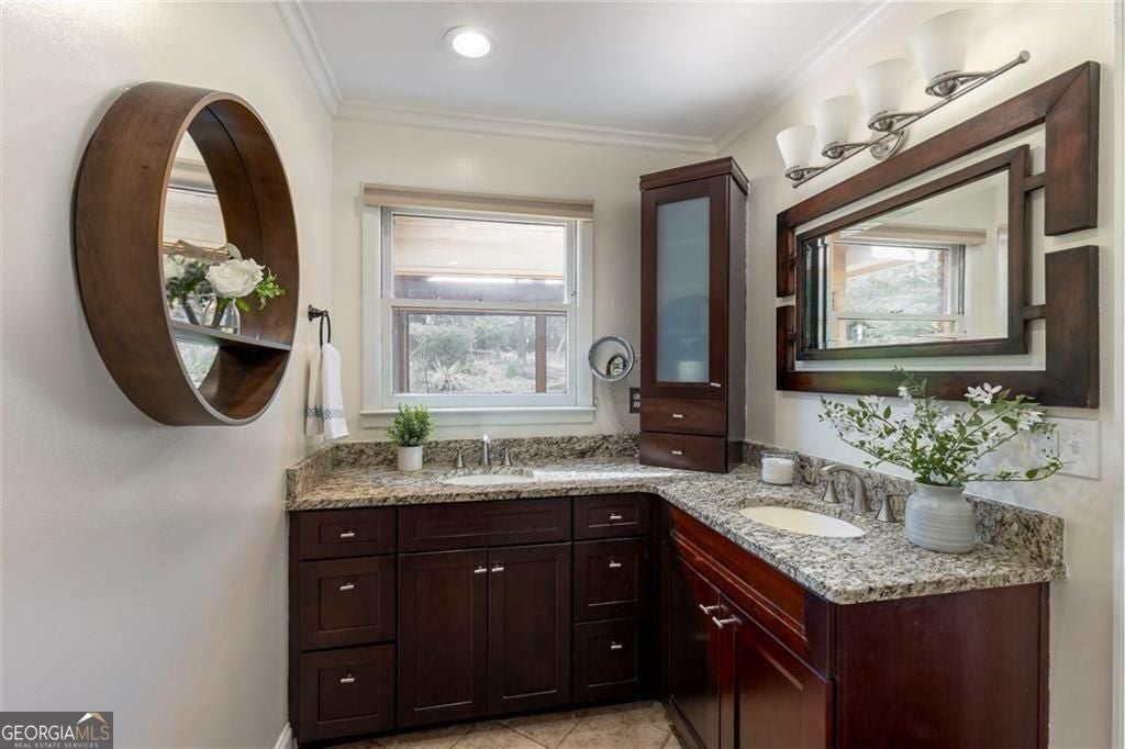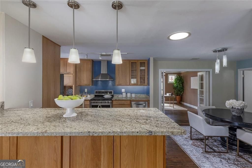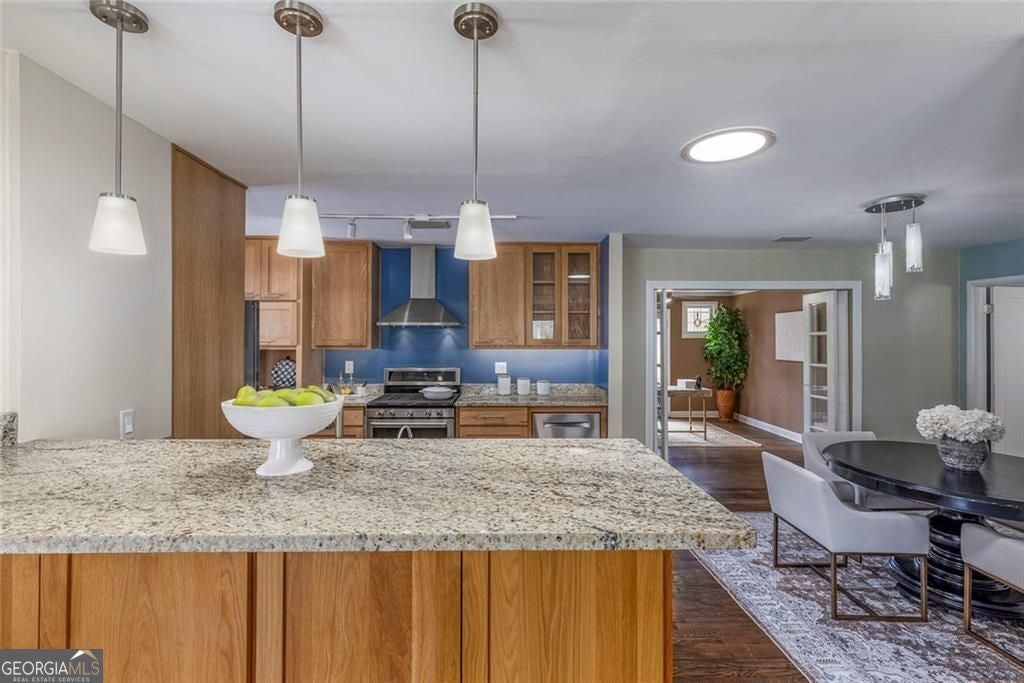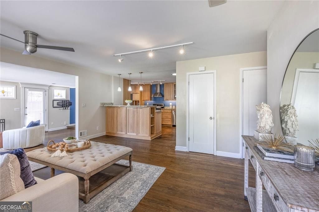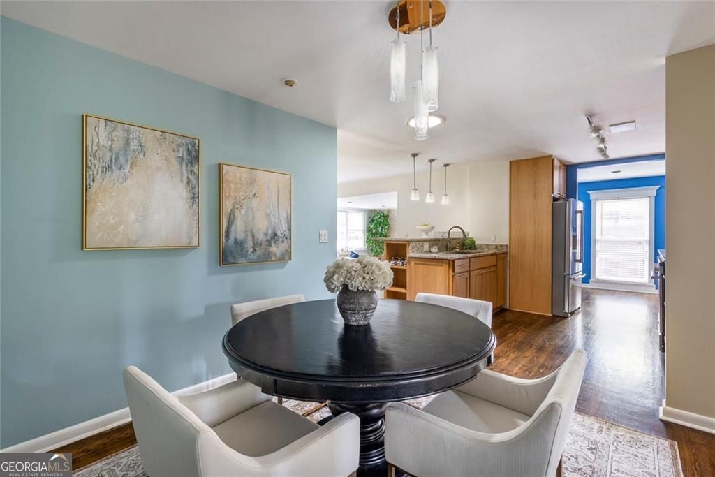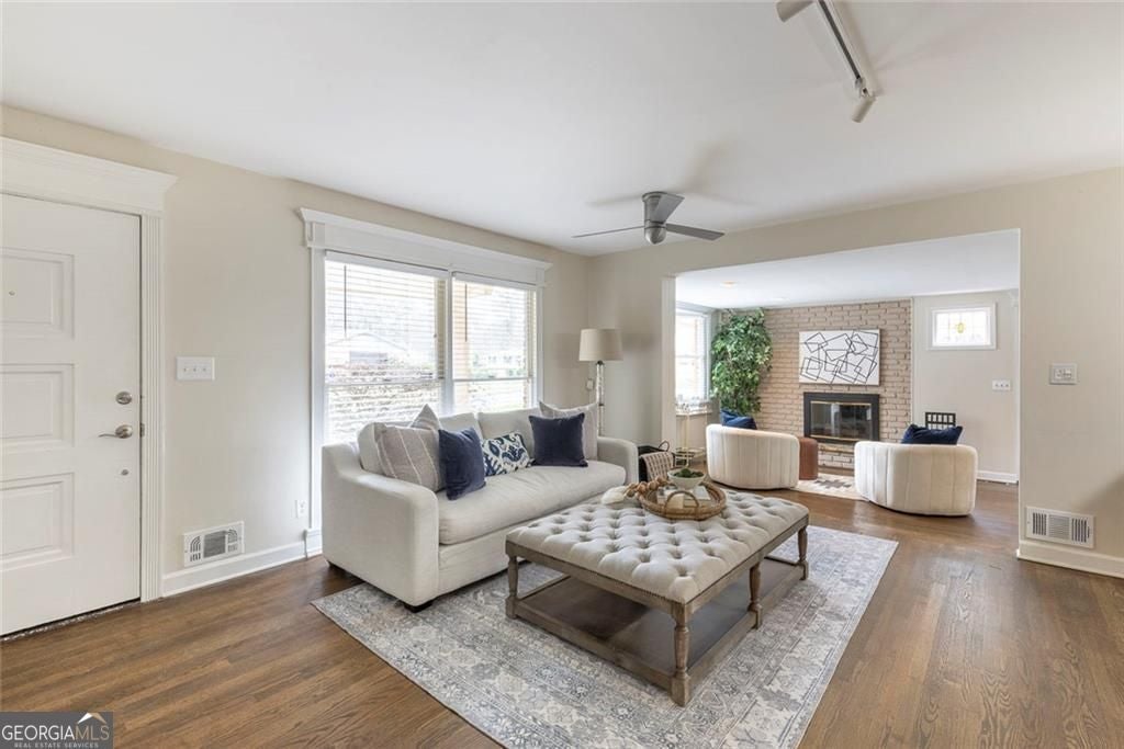 Beautifully 4-sided brick ranch in a sought-after Chamblee/Atlanta location, with quick access to Brookhaven, Chamblee, Emory, CDC, St. Pius and new Dresden Park. Thoughtfully updated throughout, this 3BR / 2.5BA home offers an open, light-filled floor plan with multiple living spaces - including a formal living room, a cozy den with a wood-burning fireplace, and a spacious family/media room. The remodeled kitchen features thoughtful updates, stainless steel appliances, a gas range, opening easily to dining and gathering areas. The spacious primary suite includes a renovated walk-in closet, a sitting area, and a beautifully updated spa-style bath with double vanities and glass shower. Two secondary bedrooms share an updated hall bath, and a versatile bonus room offers the perfect space for an office, studio, or exercise room. Recent improvements are extensive and include a new HVAC system, metal roof, updated driveway, solid wood doors throughout, refreshed exterior and trim paint, new gutters with LeafGuard, attic insulation upgrades, encapsulated crawl space with fan and vents, a new chimney and flue, granite hearth, and a guest bath remodel. With hardwood floors, fresh paint inside and out, updated lighting and hardware, and new appliances make this home truly move-in ready. Outdoors, enjoy a covered front porch, landscaped yard, fenced backyard, patio, and level driveway with parking pad. Conveniently located near schools, parks, and major commuter routes - a beautifully updated ranch in a highly desirable location!