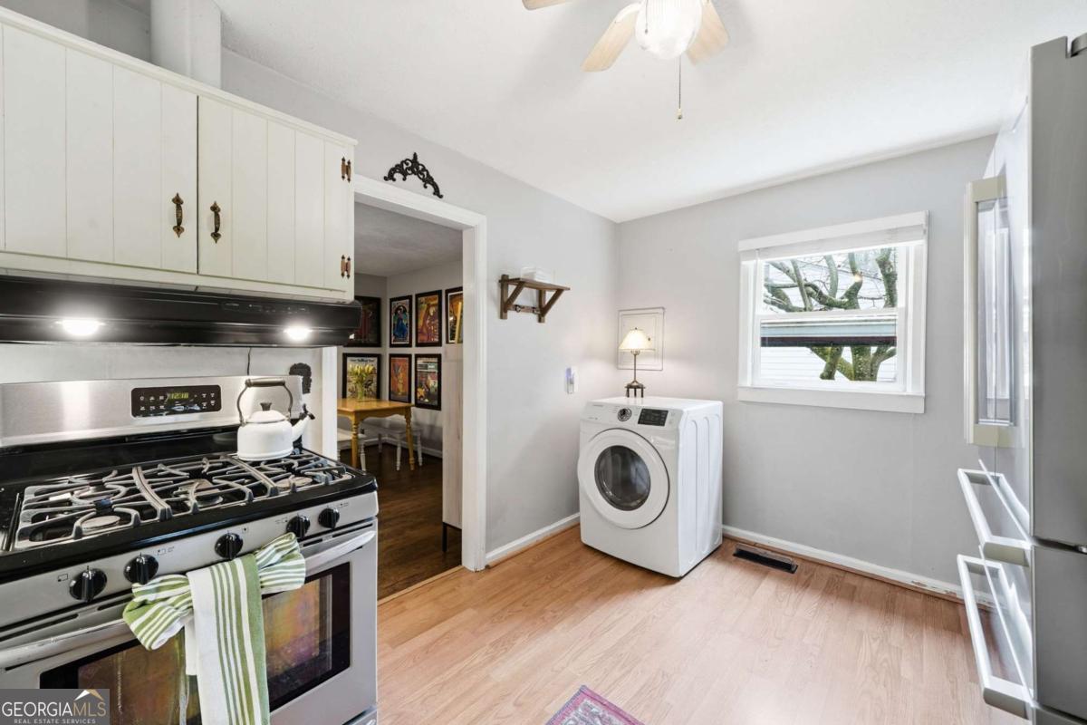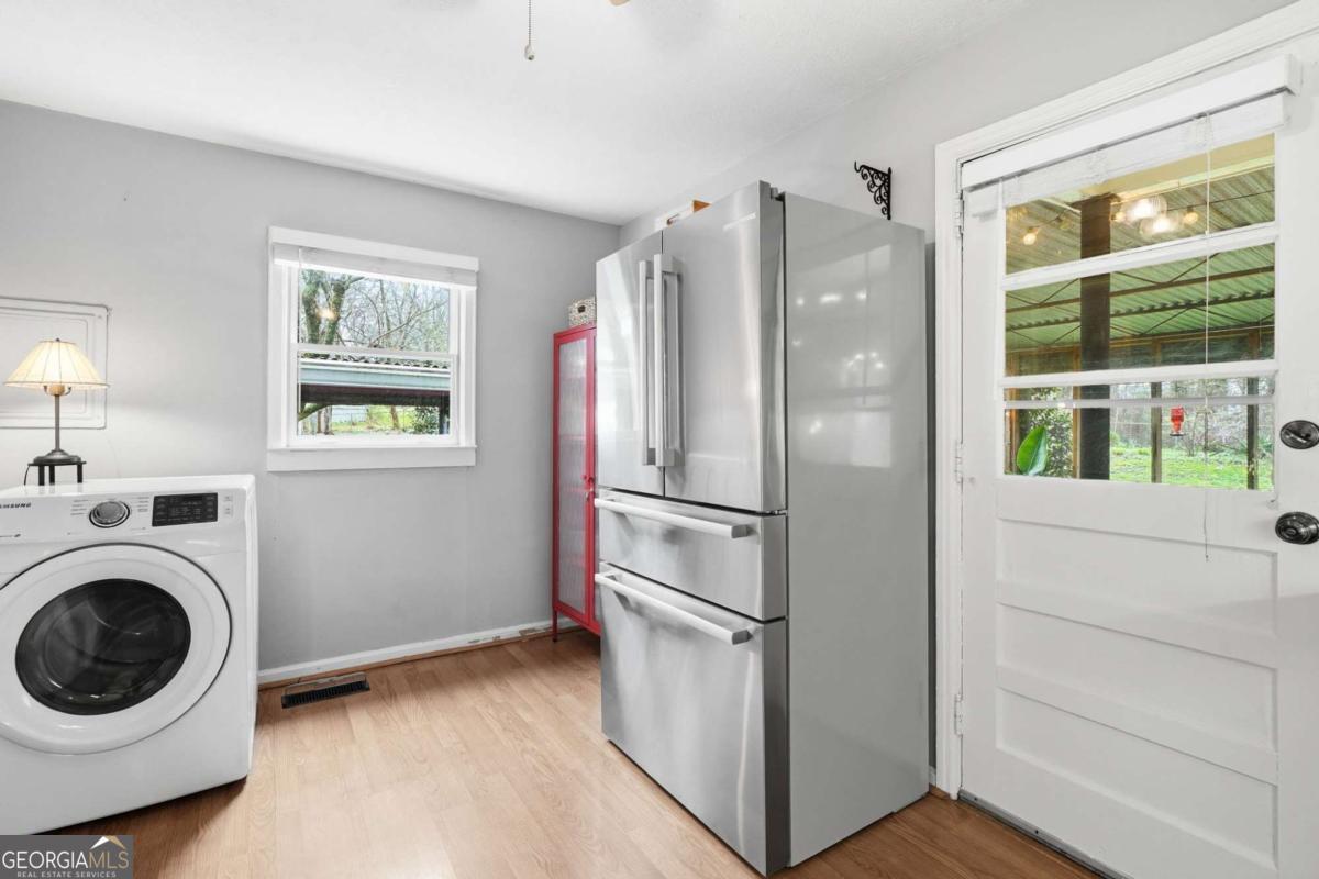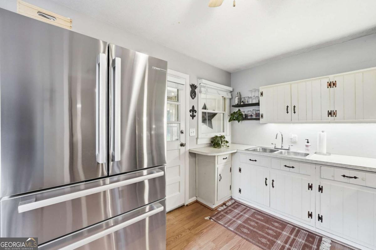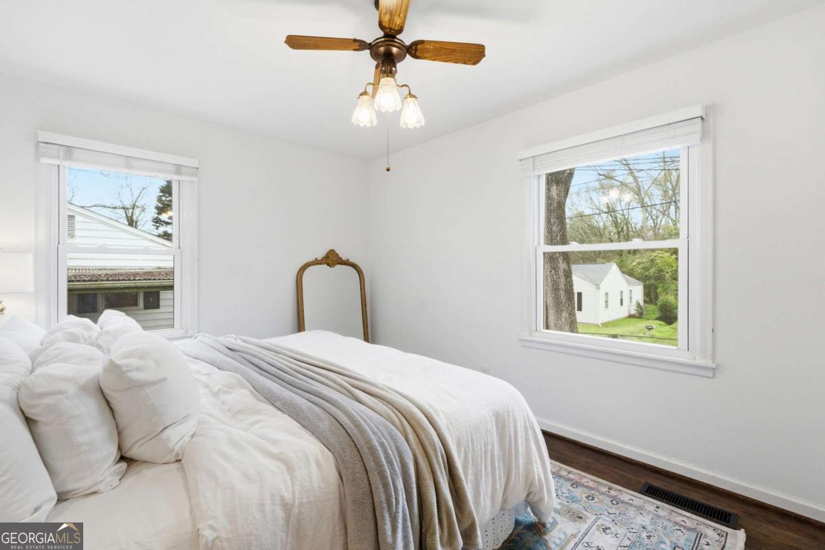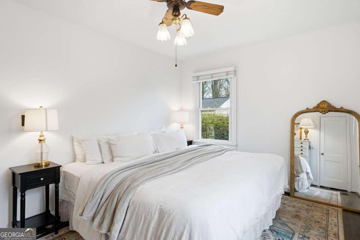Charming cottage-style Ranch tucked away on a quiet dead-end street just 2 miles from Marietta Square. This 3-bedroom, 1-bath home blends classic vintage character featuring refinished hardwood floors, central heat and air, and a tankless water heater for modern comfort. A covered, screened outdoor patio extends the living space and seamlessly blends indoor comfort with outdoor living, creating the perfect spot for relaxing, dining, or entertaining while overlooking the lush garden setting. Situated on a rare double lot, the property offers beautifully established landscaping with mature plantings and seasonal blooms, including varieties of bulbs, ferns, orchids, jasmine, wisteria, and many more that create a lush garden setting year-round. Both the front and backyard are fully fenced, providing privacy and plenty of space to enjoy the outdoors. Additional features include a 1-car carport and convenient access to I-75/I-285, Truist Park, Lockheed/Dobbins, shopping, dining, and all the charm of Marietta Square. A unique opportunity to own a character-filled home with exceptional outdoor space in a prime location.