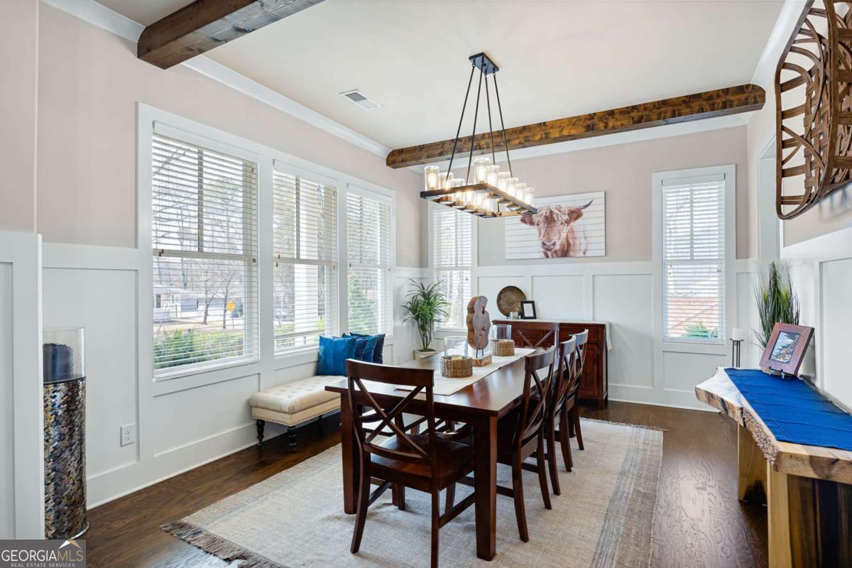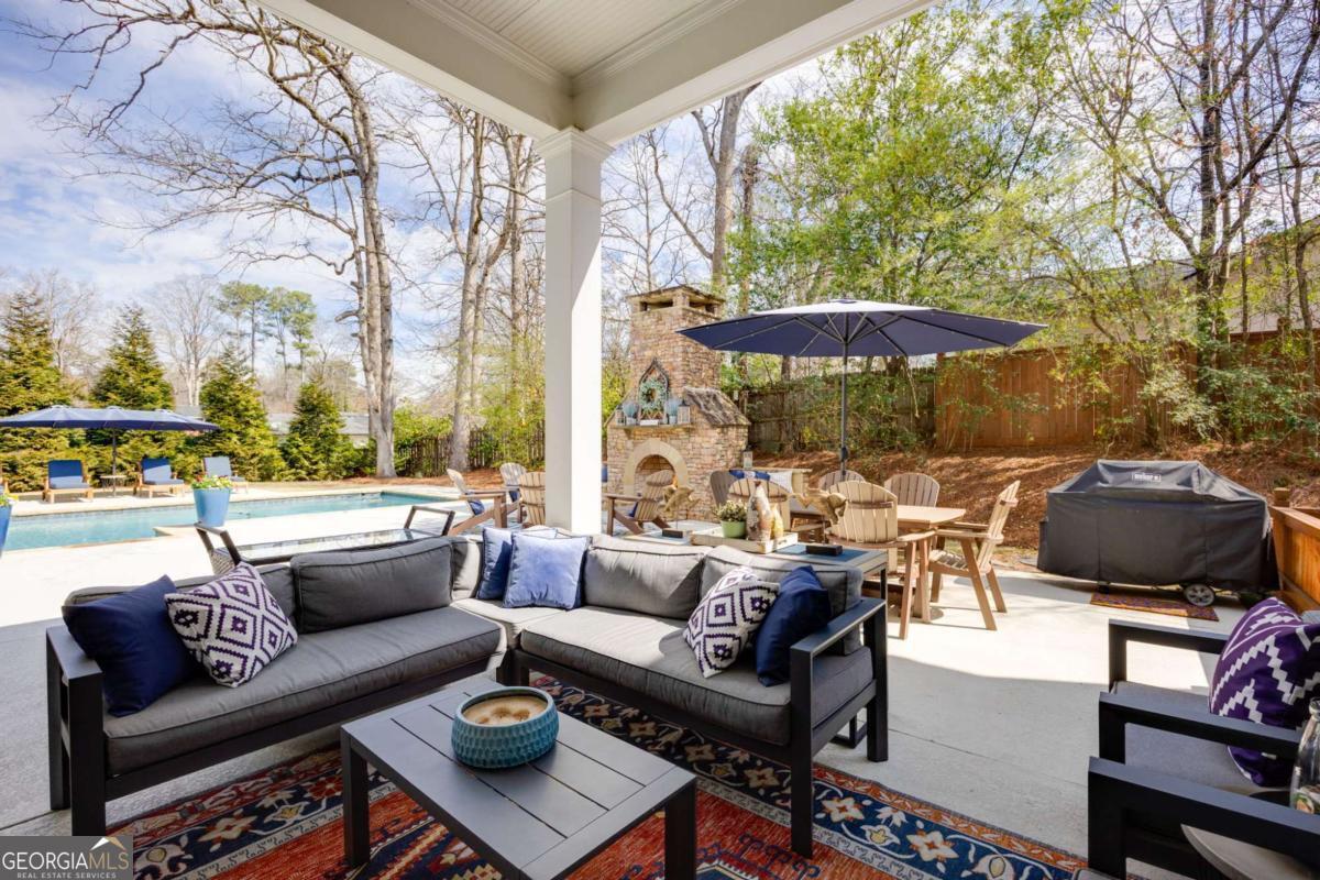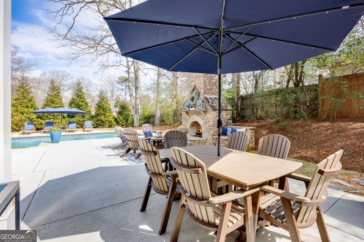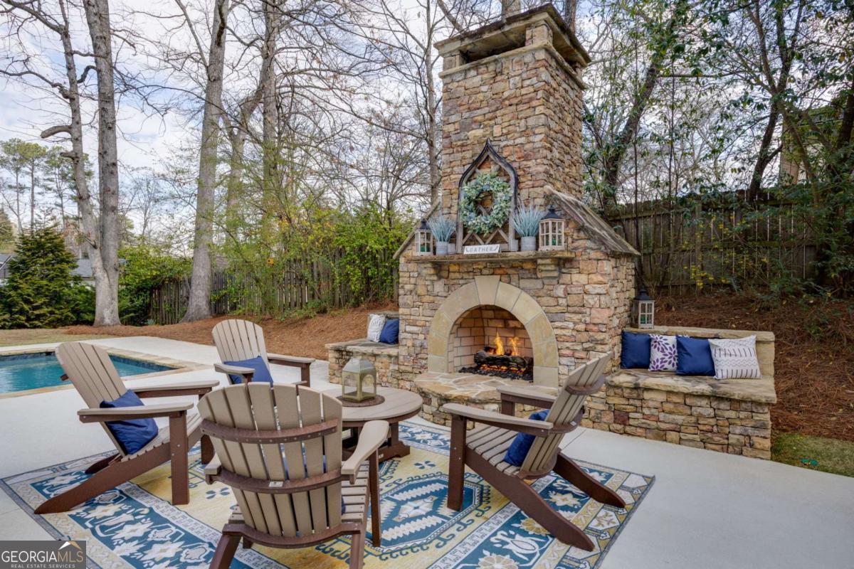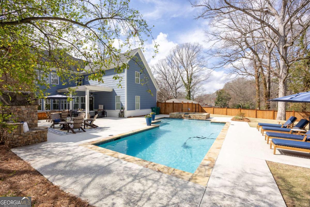 Located near Smyrna's Market Village and moments from Tolleson Park, this exceptional 5-bedroom, 4-bath residence offers a rare combination of location, thoughtful design, and amenities rarely found at a single address. Some homes check boxes. This one rewrites the list. Inside, rich hardwood floors set the tone immediately. The dining room, graced with a beamed ceiling, transitions through a butler's pantry into a chef's kitchen appointed with high-end granite, stainless appliances, and an expansive island. Open to the family room - a layout designed for easy, enjoyable everyday living, yet exceptionally well suited for entertaining on any scale. A main-level study with full bath doubles as a guest suite or private retreat, and flexible enough to shift with whatever life demands next. Upstairs, the primary suite is generously proportioned, with an expansive walk-in closet and a spa-caliber bath. Three additional bedrooms are thoughtfully arranged - two connected by a Jack-and-Jill bath and one with its own private en-suite. A dedicated EV charging station in the garage quietly signals that every detail has been considered. Step outside, and discover some of the home's most compelling features: Two covered porches - front and rear - and a backyard that stops you in your tracks. A heated saltwater pebble-tec pool takes center stage, its integrated spa cascading via waterfall into the main pool. A beautifully crafted outdoor fireplace creates a natural gathering point and extends the season well into Georgia's cooler months. This is not just a backyard. It is a private retreat. Summer gatherings. Winter evenings by the fire. A seamless extension of the home itself. There's that rare home people hope to find - and seldom do. This is that home.