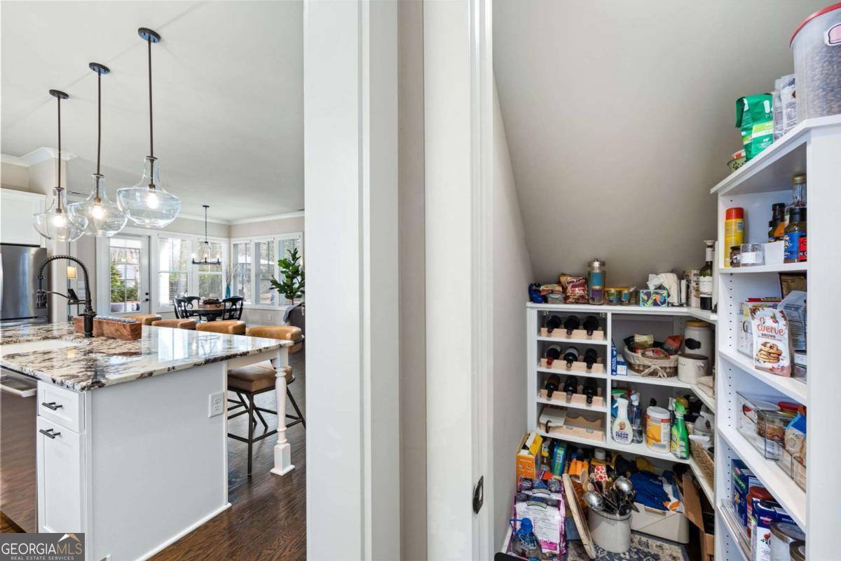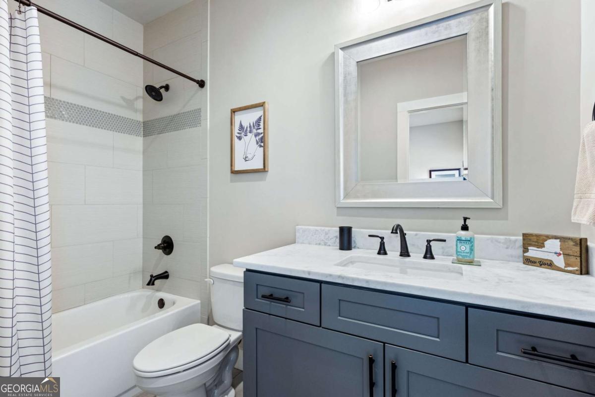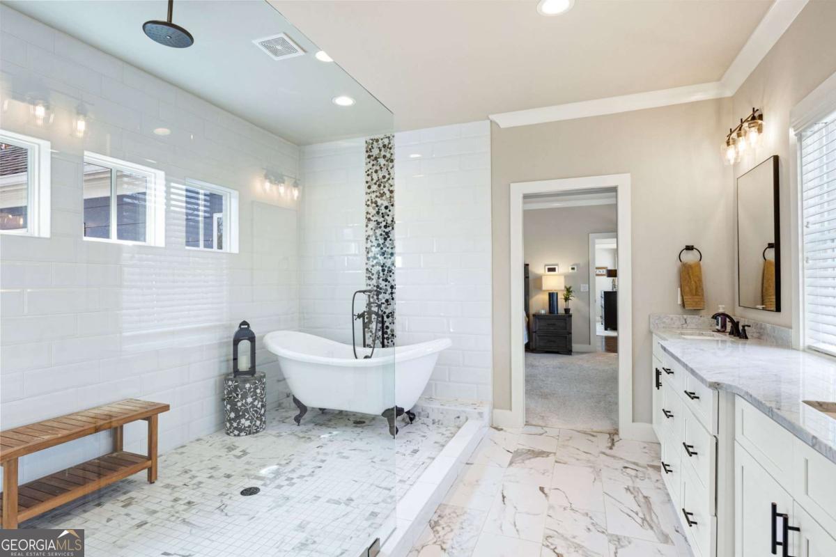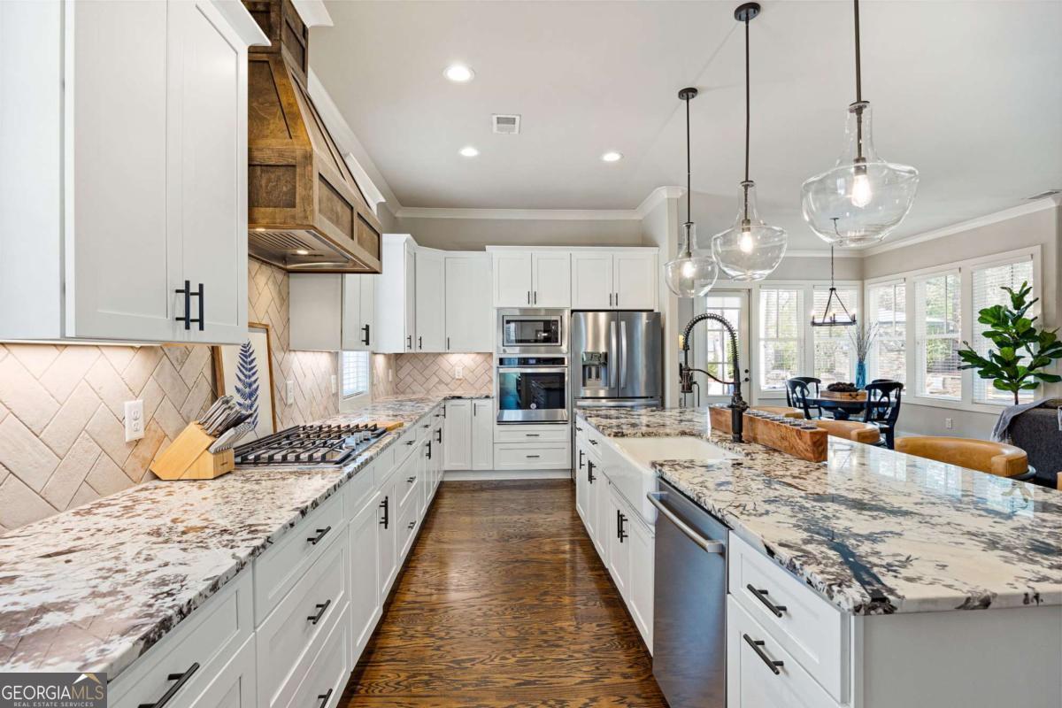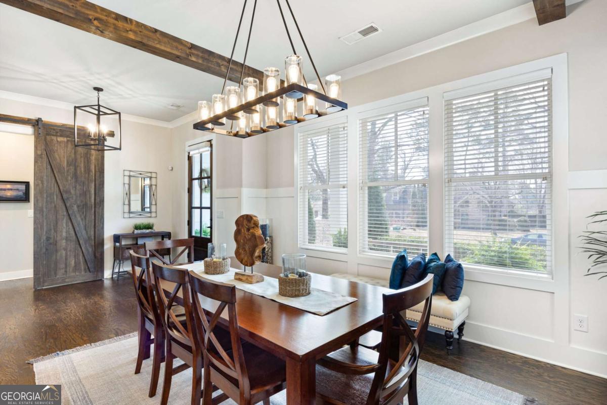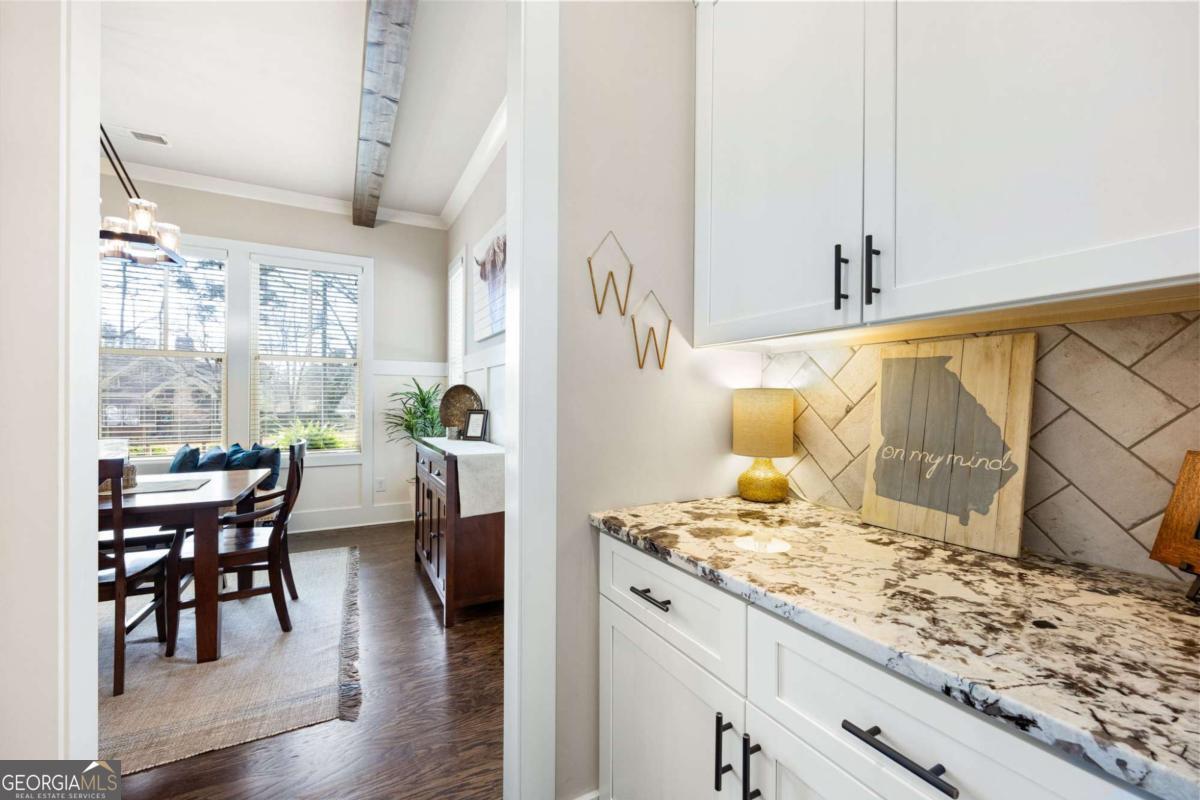 Located near Smyrna's Market Village and moments from Tolleson Park, this exceptional 5-bedroom, 4-bath residence offers a rare combination of location, thoughtful design, and amenities rarely found at a single address. Some homes check boxes. This one rewrites the list. Inside, rich hardwood floors set the tone immediately. The dining room, graced with a beamed ceiling, transitions through a butler's pantry into a chef's kitchen appointed with high-end granite, stainless appliances, and an expansive island. Open to the family room - a layout designed for easy, enjoyable everyday living, yet exceptionally well suited for entertaining on any scale. A main-level study with full bath doubles as a guest suite or private retreat, and flexible enough to shift with whatever life demands next. Upstairs, the primary suite is generously proportioned, with an expansive walk-in closet and a spa-caliber bath. Three additional bedrooms are thoughtfully arranged - two connected by a Jack-and-Jill bath and one with its own private en-suite. A dedicated EV charging station in the garage quietly signals that every detail has been considered. Step outside, and discover some of the home's most compelling features: Two covered porches - front and rear - and a backyard that stops you in your tracks. A heated saltwater pebble-tec pool takes center stage, its integrated spa cascading via waterfall into the main pool. A beautifully crafted outdoor fireplace creates a natural gathering point and extends the season well into Georgia's cooler months. This is not just a backyard. It is a private retreat. Summer gatherings. Winter evenings by the fire. A seamless extension of the home itself. There's that rare home people hope to find - and seldom do. This is that home.