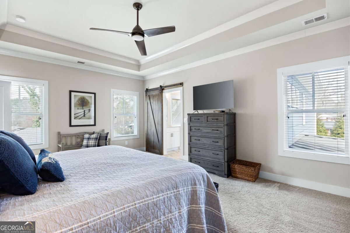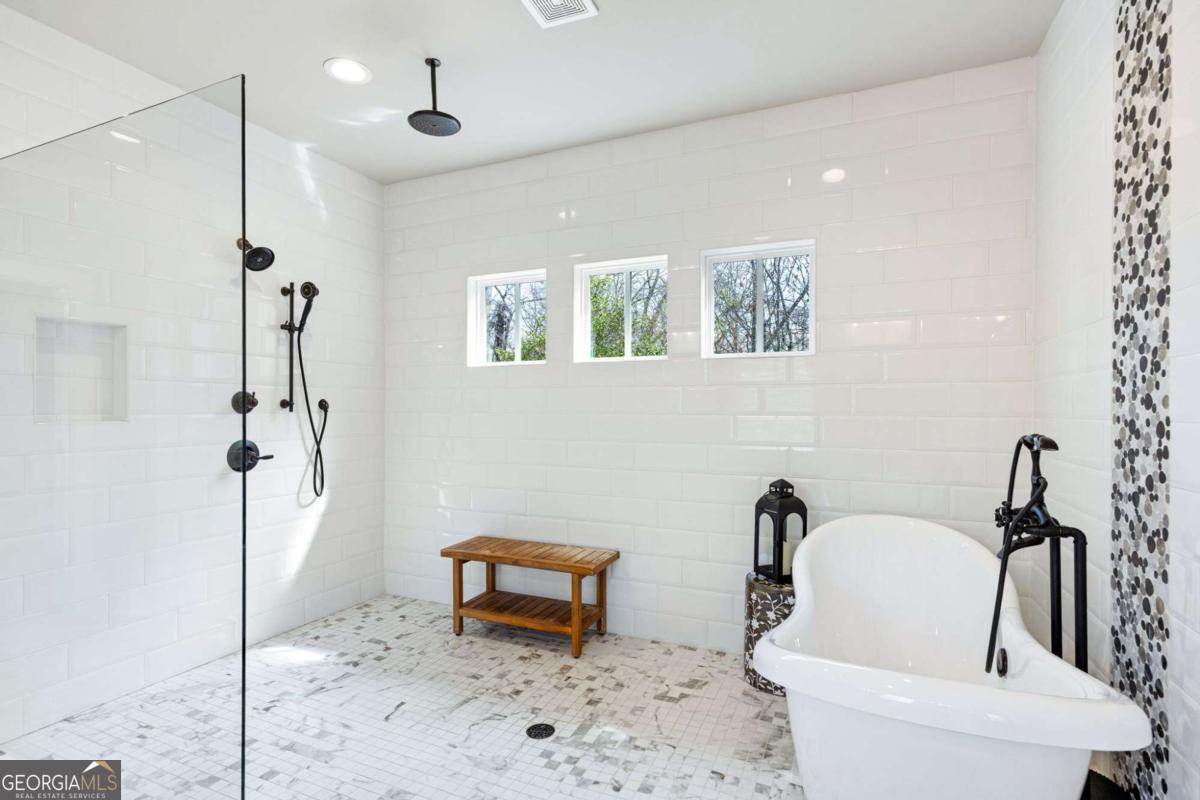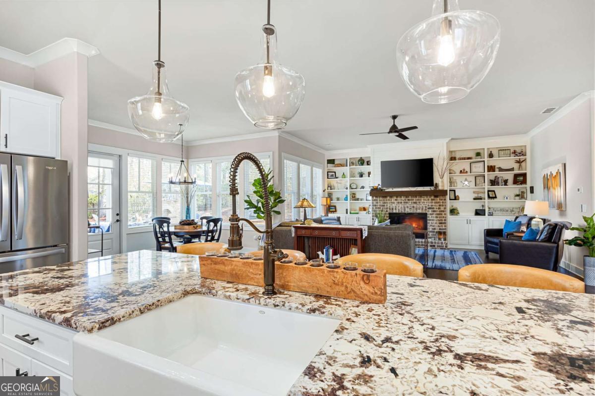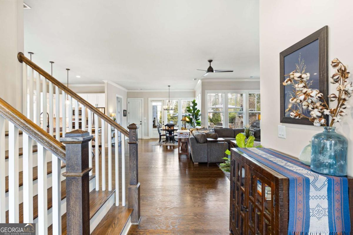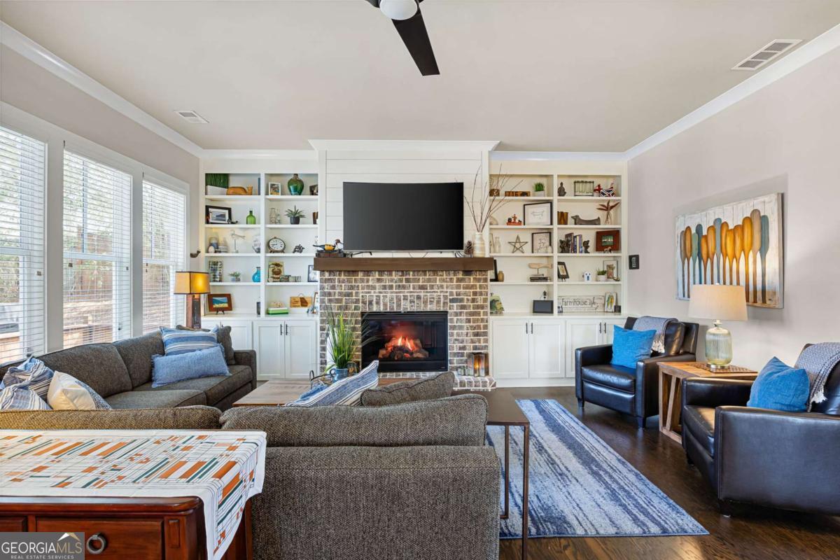 Located near Smyrna's Market Village and moments from Tolleson Park, this exceptional 5-bedroom, 4-bath residence offers a rare combination of location, thoughtful design, and amenities rarely found at a single address. Some homes check boxes. This one rewrites the list. Inside, rich hardwood floors set the tone immediately. The dining room, graced with a beamed ceiling, transitions through a butler's pantry into a chef's kitchen appointed with high-end granite, stainless appliances, and an expansive island. Open to the family room - a layout designed for easy, enjoyable everyday living, yet exceptionally well suited for entertaining on any scale. A main-level study with full bath doubles as a guest suite or private retreat, and flexible enough to shift with whatever life demands next. Upstairs, the primary suite is generously proportioned, with an expansive walk-in closet and a spa-caliber bath. Three additional bedrooms are thoughtfully arranged - two connected by a Jack-and-Jill bath and one with its own private en-suite. A dedicated EV charging station in the garage quietly signals that every detail has been considered. Step outside, and discover some of the home's most compelling features: Two covered porches - front and rear - and a backyard that stops you in your tracks. A heated saltwater pebble-tec pool takes center stage, its integrated spa cascading via waterfall into the main pool. A beautifully crafted outdoor fireplace creates a natural gathering point and extends the season well into Georgia's cooler months. This is not just a backyard. It is a private retreat. Summer gatherings. Winter evenings by the fire. A seamless extension of the home itself. There's that rare home people hope to find - and seldom do. This is that home.