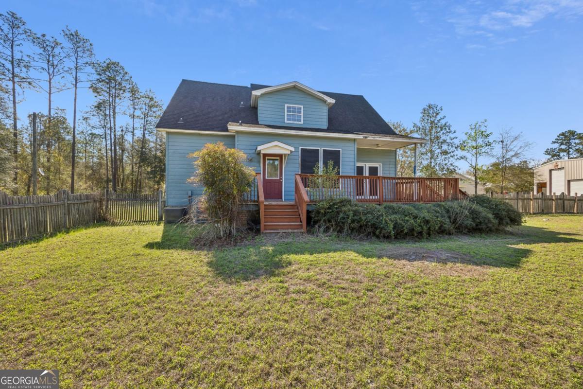 Welcome to 125 Settlers Way in Folkston, where peaceful country living meets the opportunity to make a home truly your own. Situated on 2.02 acres, this property offers plenty of space, privacy, and charm while giving the next owner the chance to add their personal touches and updates. A spacious front porch welcomes you home and is the perfect spot for relaxing or enjoying a porch swing while taking in the quiet surroundings. Inside, the living room features built-in shelving and a cozy wood-burning fireplace, creating a warm and inviting gathering space. The dining room flows openly into the living area, making it ideal for everyday living and entertaining. The kitchen includes stainless steel appliances and a breakfast nook, providing a comfortable space for casual meals. Just off the kitchen you'll find the laundry room and a convenient half bath for guests. The primary suite is located on the first floor, offering privacy and convenience, and features a walk-in shower and walk-in closet. Upstairs are two additional bedrooms and a full bathroom, providing plenty of space for family or guests. Step outside to enjoy the large back deck overlooking the fenced backyard, perfect for grilling, relaxing, or entertaining. The property also includes an additional storage shed for tools, hobbies, or outdoor equipment. With its generous acreage, functional layout, and charming features, this home is a great opportunity for a buyer looking to add their own updates and create a peaceful retreat in the Folkston area.