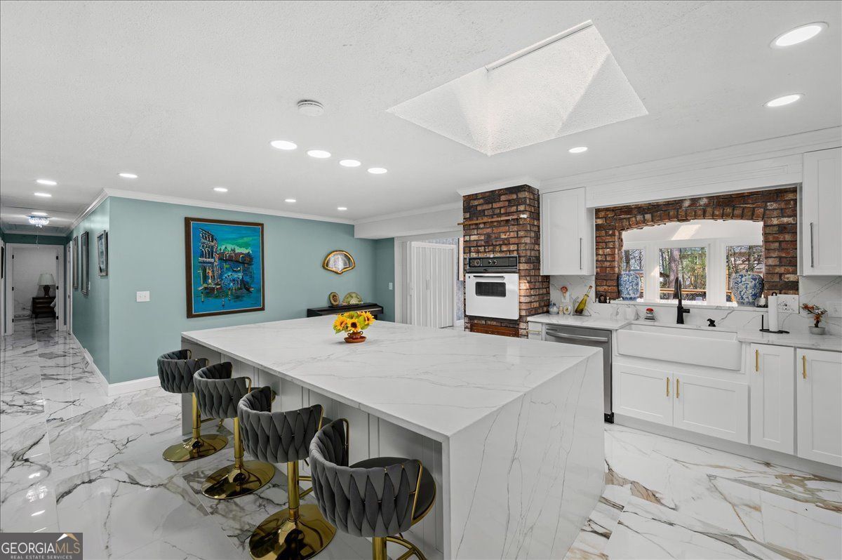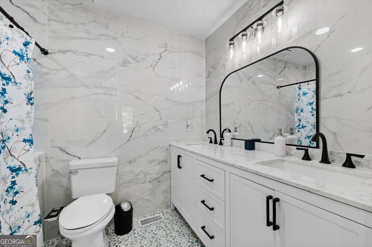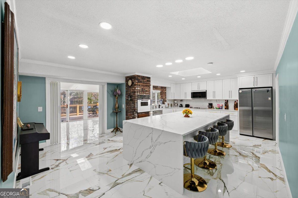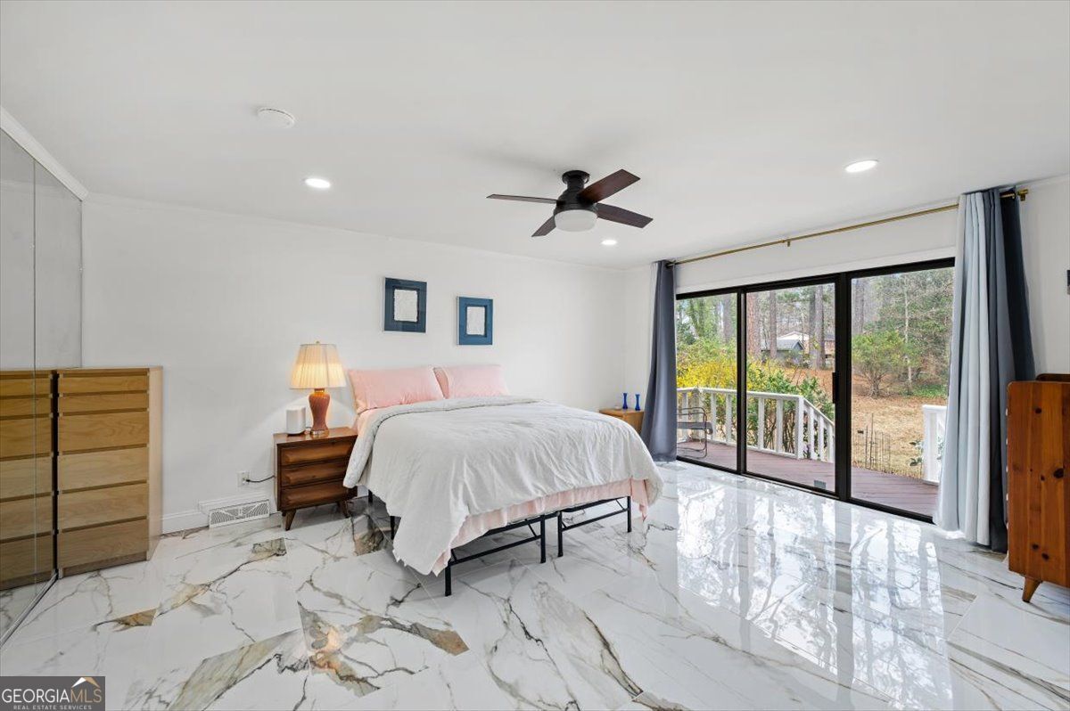 Renovated and full of character, this home stands out with its timeless design. Inside you'll find beautiful marble-style flooring, fresh finishes, and a spacious layout that works well for both everyday living and entertaining. The main living area features vaulted ceilings, a striking stone fireplace, and a wall of windows that fills the space with natural light and opens to the large back deck. The kitchen has been tastefully updated with custom cabinetry, a farmhouse sink, designer fixtures, and a large waterfall island that's perfect for gathering with family and friends. The primary suite offers a private retreat with its own fireplace, outdoor access, and plenty of closet space. The renovated bathroom features elegant tile work and a spacious walk-in shower. Additional bedrooms are generously sized, and the home offers multiple living areas that provide flexibility for relaxing, entertaining, or working from home. Outside, the large deck overlooks a private backyard surrounded by mature trees, creating a peaceful setting to enjoy the outdoors.Conveniently located in a beautiful and accessible area of Rome, Georgia, this home offers easy access to local shopping, dining, and everyday amenities.With thoughtful updates, unique architectural character, and move-in ready condition, this home offers a special opportunity you won't want to miss.