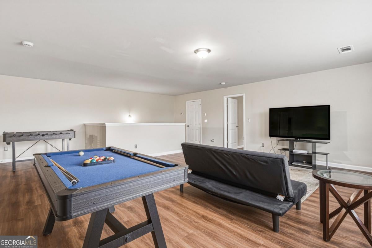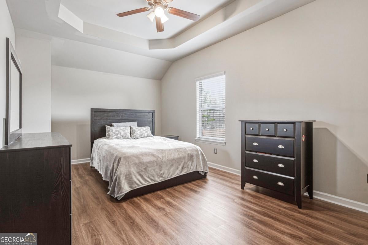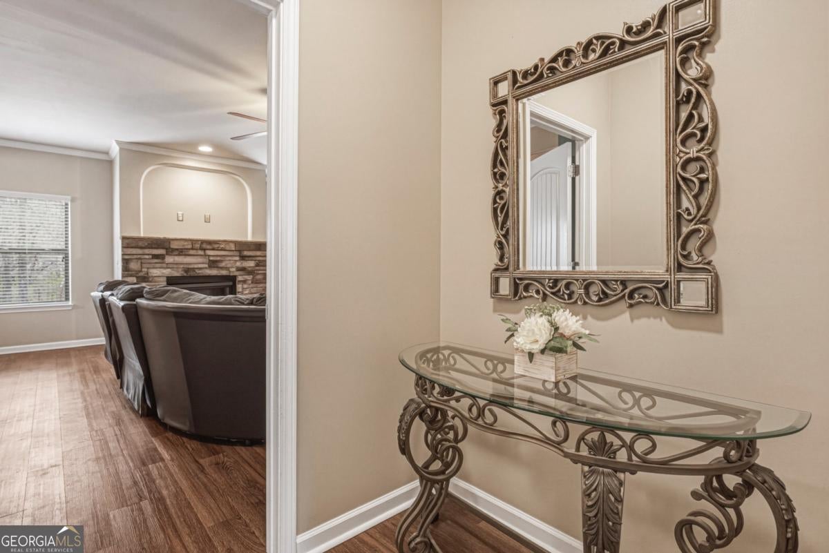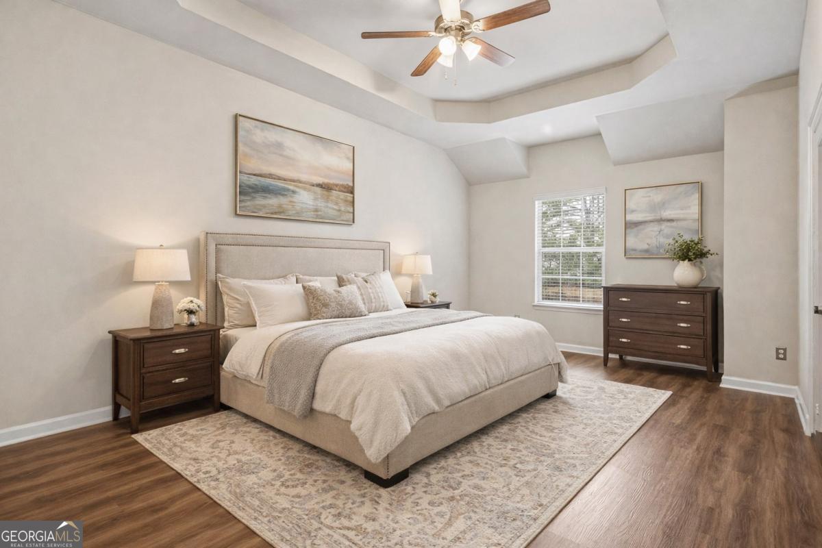 Welcome to The Pearl of East Lake Estates, a beautifully updated full-brick executive residence located in the highly sought-after East Lake Estates community. Offering almost 5,500 square feet of living space across three expansive levels, this home blends modern updates with a flexible layout designed for comfortable living, entertaining, and multi-generational households. Ideally located less than a quarter mile from the Union Grove schools and just minutes from Starbucks, Kroger, Chick-fil-A, and other everyday conveniences, the location is just as impressive as the home itself. The main level welcomes you with a formal dining room and a spacious family room anchored by a stack stone fireplace. The chef's kitchen is beautifully appointed with white cabinetry, a stainless steel vent hood, double ovens, generous counter space, and a bright eat-in area that flows seamlessly into the living space-perfect for everyday living and entertaining. A butler's pantry connects the kitchen and dining room, adding convenience and functionality. Luxury vinyl plank flooring throughout the home adds warmth, durability, and modern appeal. A main-level guest bedroom and full bathroom provide comfortable accommodations for visitors or extended family. Upstairs, the oversized primary suite offers a peaceful retreat with a spacious sitting area and a spa-inspired bath featuring dual walk-in closets. Three additional bedrooms and two full bathrooms complete the second level. The third level provides even more flexible living space with two additional bedrooms, a full bathroom, and a separate living area, making it ideal for teens, guests, or extended family. Step outside to enjoy beautifully maintained grounds, a side-entry two-car garage, and an enclosed screened patio, perfect for relaxing or entertaining year-round.