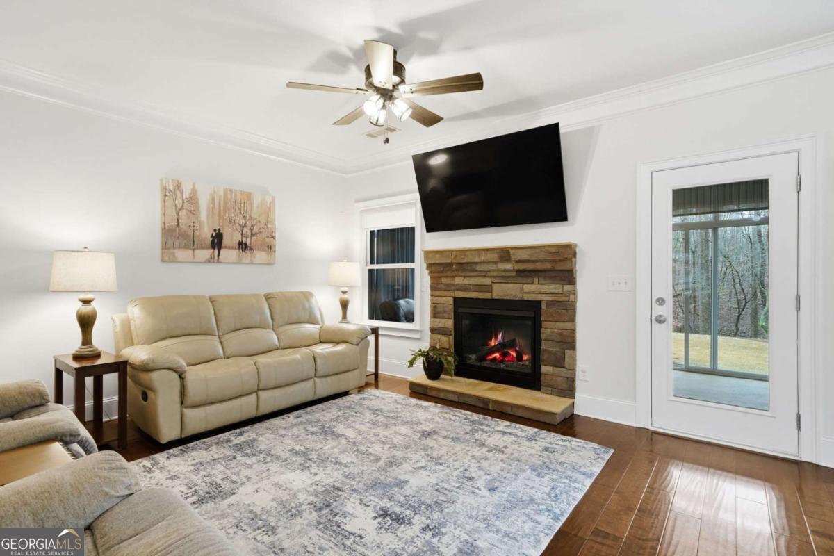 OPEN HOUSE CANCELLED. A Welcoming Retreat in Summer Walk: Welcome to a home where major details have been thoughtfully updated, leaving just one thing missing: you. From the moment you step inside, you are greeted by beautiful hardwood floors, elegant tile, and upgraded trim that give the space a warm, inviting energy. With all the major updates already taken care of, you can simply unpack, breathe easy, and feel right at home. The Heart of the Home: Whether you are hosting friends or enjoying a quiet evening, this main level is designed for effortless living. The stunning, completely updated gourmet kitchen features endless storage and prep space. Best of all, it keeps you perfectly connected-overlooking the cozy breakfast nook, the relaxing fireside living room, and the beautiful sunroom. A convenient main-floor bedroom and full bathroom offer a private, comfortable space for overnight guests to feel pampered. Your Upstairs Sanctuary: Head upstairs, where your feet will sink into plush, upgraded carpeting. You're welcomed by a versatile, spacious loft that makes a perfect home office, playroom, or can easily be converted into an extra bedroom. The primary suite is a true retreat, featuring an elegant double-tray ceiling and peaceful views of the nature-filled backyard. Unwind in the en-suite bath, complete with dual vanities, a deep soaking tub, a separate shower, and a roomy walk-in closet. Down the hall, you'll find generously sized secondary bedrooms, a full guest bath with brand-new luxury vinyl plank flooring, and a convenient upstairs laundry room. Outdoor Living & Everyday Perks: You might just find your new favorite spot in the three-seasons enclosed patio. Picture yourself sipping morning coffee while watching birds and deer on the hillside or soaking up the sun before tending to the garden. Outside, a smart retaining wall creates a level fenced backyard for play and gardening, kept lush by a built-in irrigation system. A 12x10 storage shed keeps your outdoor tools neatly tucked away. Need a spot to tinker? Step into the garage, which doubles as a fantastic workspace with extra cabinetry from the original kitchen, countertops, a workbench, and a pegboard. Plus, moving in is a breeze because all appliances are included-even the washer, dryer, and two refrigerators! Community & Convenience: Nestled in the Summer Walk community, you'll enjoy fantastic neighborhood amenities including a pool, tennis courts, and a playground. You're just minutes away from grocery stores, dining, everyday conveniences, and the brand-new Cherokee County High School. Recent Updates for Your Peace of Mind: 2025: Brand new Roof, new main-floor HVAC, and new Luxury Vinyl Plank in bathrooms. 2023: Complete Kitchen remodel and new exterior paint. 2022: New 3-seasons enclosed patio added, new kitchen appliances, washer / dryer and upgraded plush carpet installed. 2018: Lawn irrigation system installed.