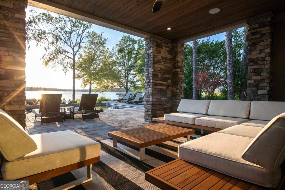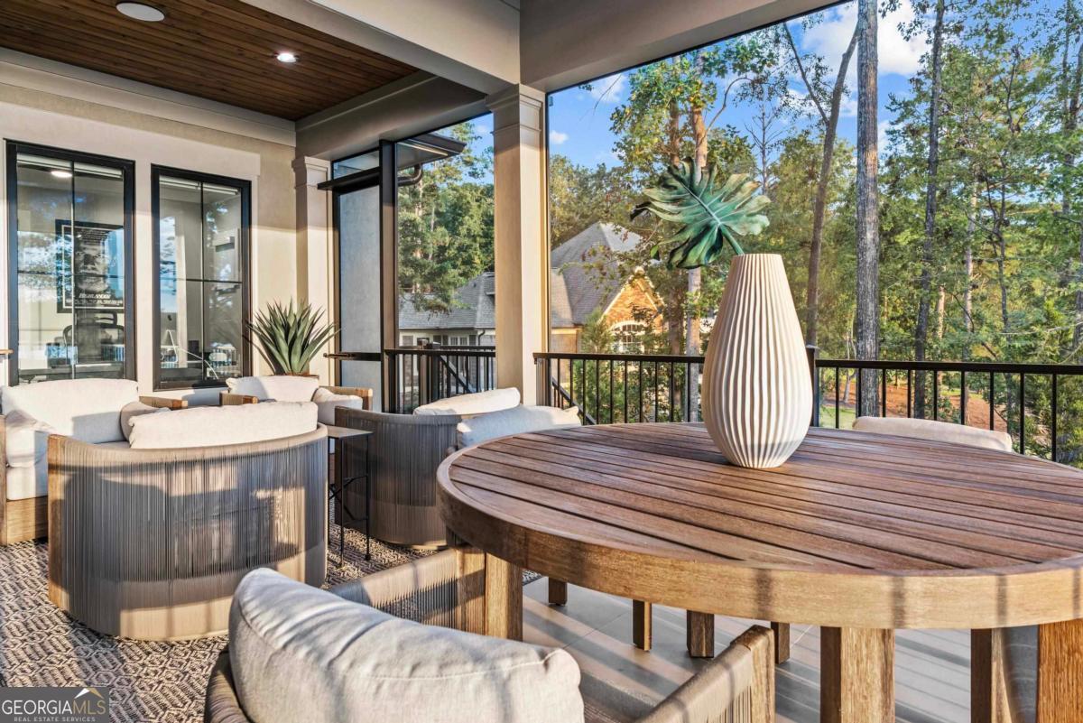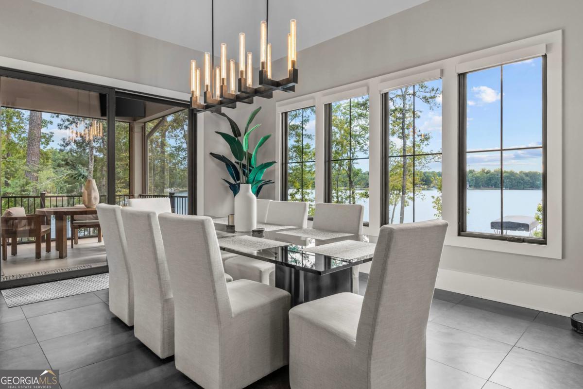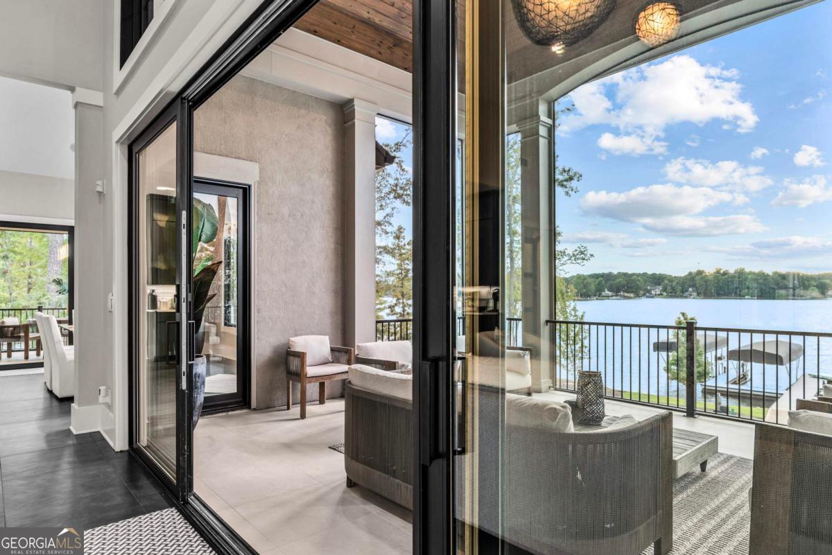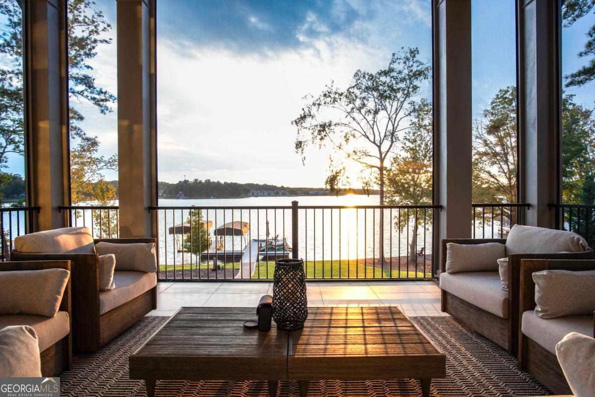 Luxury lakefront like-new home, built by Hatfield Custom Homes, with all the amenities in Reynolds Lake Oconee showcasing the most breathtaking, expansive lake views imaginable. Nestled on nearly an acre of lakefront, this stunning home offers modern elegance with high-end finishes throughout. The long private driveway sets the tone for the grand experience that awaits inside. The 24ft ceiling great room with 9ft glass sliders seamlessly invite the outdoors in offering front row sunset views. Designed with style and convenience in mind, this smart home delivers a sophisticated yet welcoming ambiance. The custom cast iron front door opens to a striking interior with custom Italian tile flooring, designer lighting, floating iron and wood staircase highlighted by a custom antique mirrored glass, remote-controlled electric fireplace. The exceptional open floorplan was designed to capture views of the lake from nearly every room. The kitchen is framed by Bentley Cambria quartz waterfall countertop island and coordinating vent hood, sleek custom cabinetry, and professional designer appliance package that include Sub-Zero refrigerator, Wolf cooktop, Cafe Professional Series oven, Cove dishwasher, ice maker, dual refrigerator drawers, and a 288-bottle Zephyr wine refrigerator. The luxurious primary suite boasts 10" natural hardwood plank floors, remote-controlled electric fireplace, custom Artisan closets, and a spa-like bath with floor-to-ceiling tile throughout, natural wood vanities and cabinets with concrete vessel sinks. The main level also include a versatile office that can easily serve as an additional bedroom. A beautiful floating iron staircase leads to the terrace level where a spacious family room and billiard room await. This level is an entertainer's dream featuring a full bar, powder room and a seamless access to the pool deck with expansive lake views as the perfect backdrop. The rare flat lake backyard is a true gem in this community. The terrace level also features three well-appointed guest suites ensuring ample space for family and friends. Watch your favorite games in your expansive outdoor deck or enjoy the sunset in your salt water pool/spa with spillway, automatic cover and fire pit. This luxurious home features remote control blinds, three-car garage, large custom seasonal closet and Smart Home features (security, pool, firepit, lighting). Great location! Walk to the clubhouse and the Jack Nicklaus course. Membership is available.