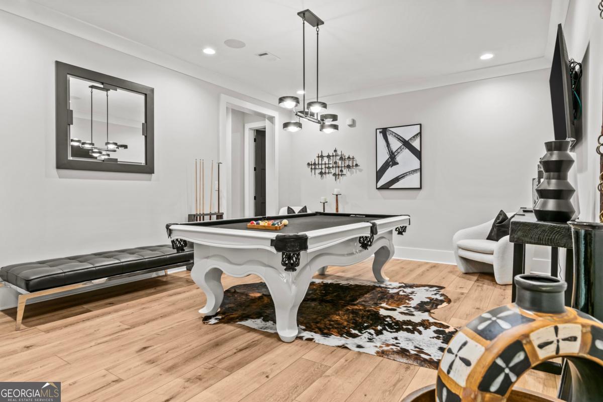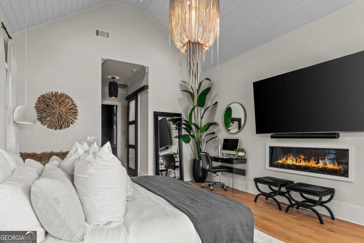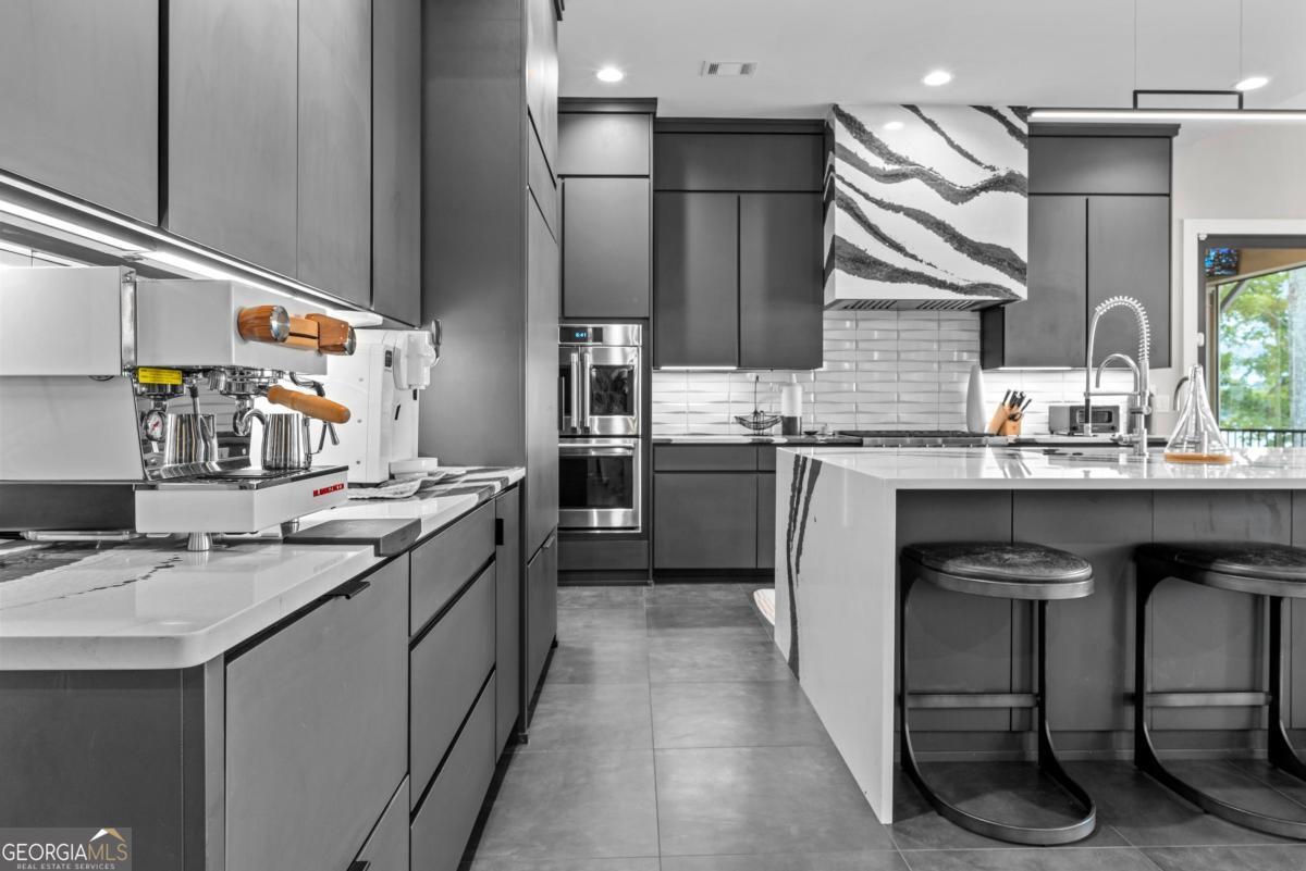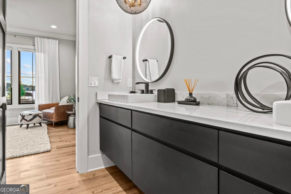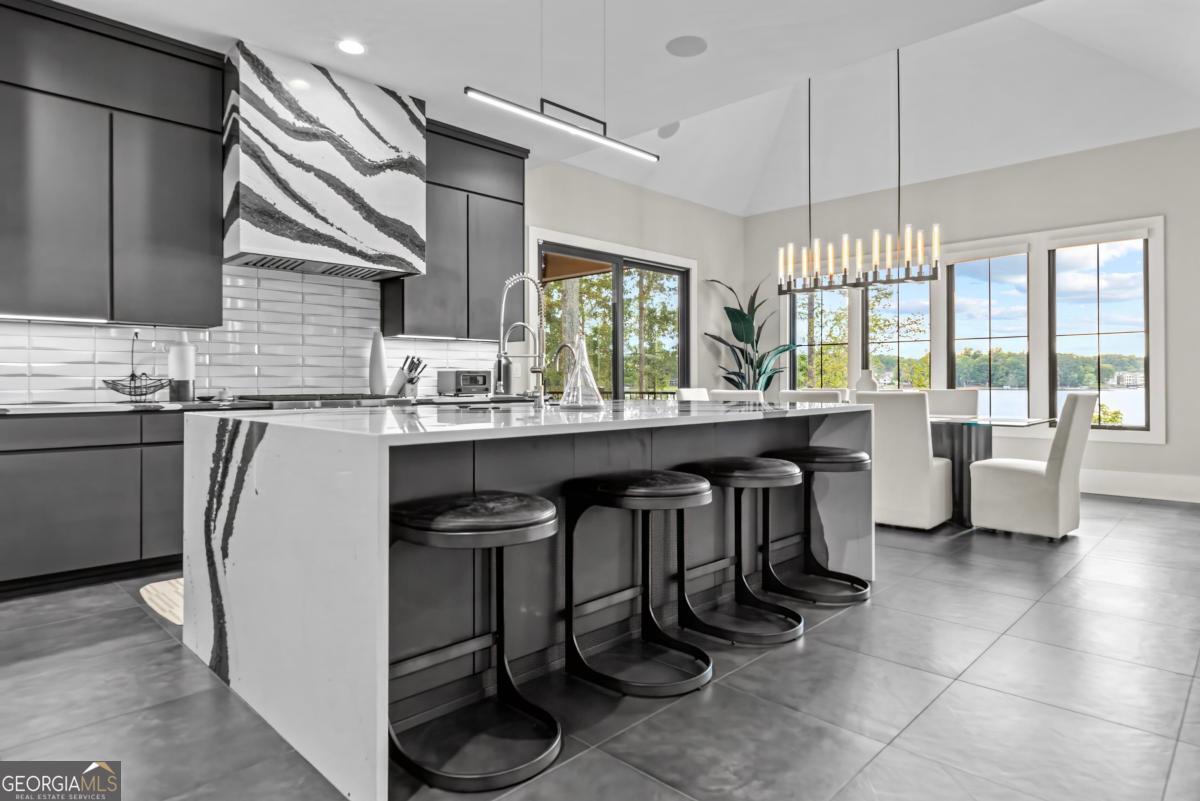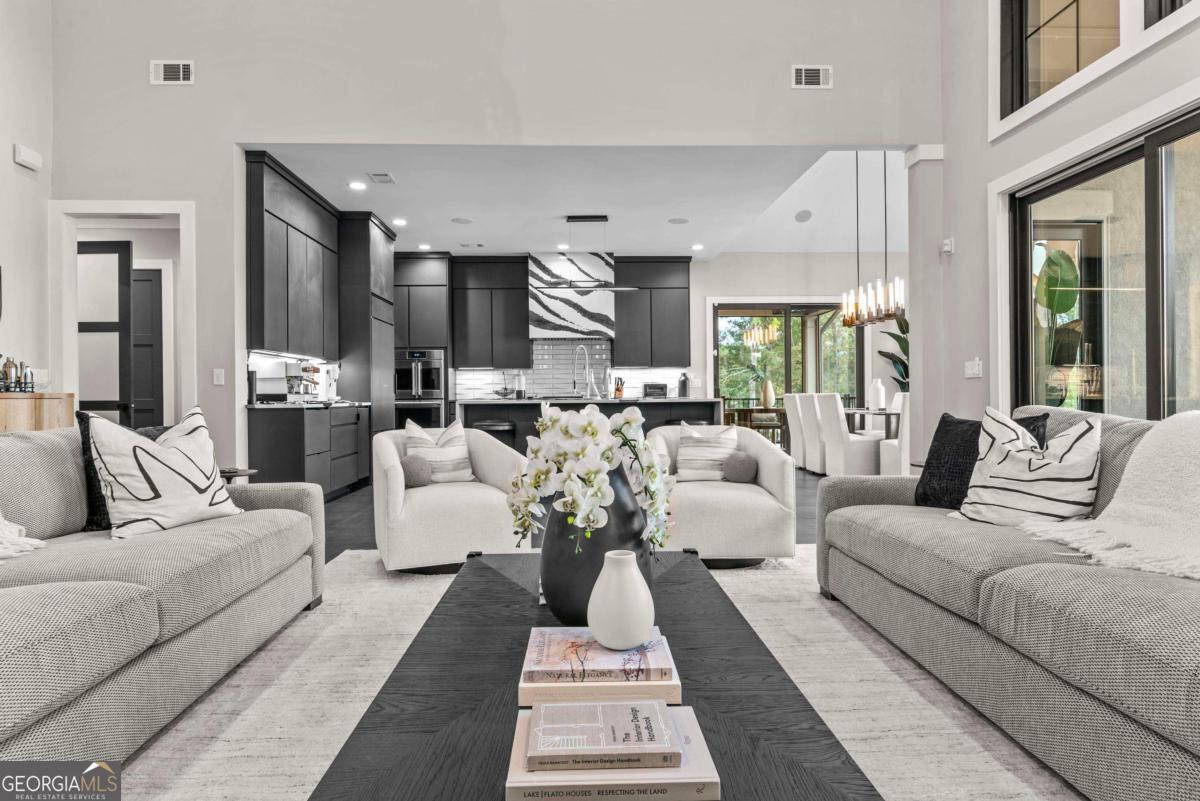 Luxury lakefront like-new home, built by Hatfield Custom Homes, with all the amenities in Reynolds Lake Oconee showcasing the most breathtaking, expansive lake views imaginable. Nestled on nearly an acre of lakefront, this stunning home offers modern elegance with high-end finishes throughout. The long private driveway sets the tone for the grand experience that awaits inside. The 24ft ceiling great room with 9ft glass sliders seamlessly invite the outdoors in offering front row sunset views. Designed with style and convenience in mind, this smart home delivers a sophisticated yet welcoming ambiance. The custom cast iron front door opens to a striking interior with custom Italian tile flooring, designer lighting, floating iron and wood staircase highlighted by a custom antique mirrored glass, remote-controlled electric fireplace. The exceptional open floorplan was designed to capture views of the lake from nearly every room. The kitchen is framed by Bentley Cambria quartz waterfall countertop island and coordinating vent hood, sleek custom cabinetry, and professional designer appliance package that include Sub-Zero refrigerator, Wolf cooktop, Cafe Professional Series oven, Cove dishwasher, ice maker, dual refrigerator drawers, and a 288-bottle Zephyr wine refrigerator. The luxurious primary suite boasts 10" natural hardwood plank floors, remote-controlled electric fireplace, custom Artisan closets, and a spa-like bath with floor-to-ceiling tile throughout, natural wood vanities and cabinets with concrete vessel sinks. The main level also include a versatile office that can easily serve as an additional bedroom. A beautiful floating iron staircase leads to the terrace level where a spacious family room and billiard room await. This level is an entertainer's dream featuring a full bar, powder room and a seamless access to the pool deck with expansive lake views as the perfect backdrop. The rare flat lake backyard is a true gem in this community. The terrace level also features three well-appointed guest suites ensuring ample space for family and friends. Watch your favorite games in your expansive outdoor deck or enjoy the sunset in your salt water pool/spa with spillway, automatic cover and fire pit. This luxurious home features remote control blinds, three-car garage, large custom seasonal closet and Smart Home features (security, pool, firepit, lighting). Great location! Walk to the clubhouse and the Jack Nicklaus course. Membership is available.