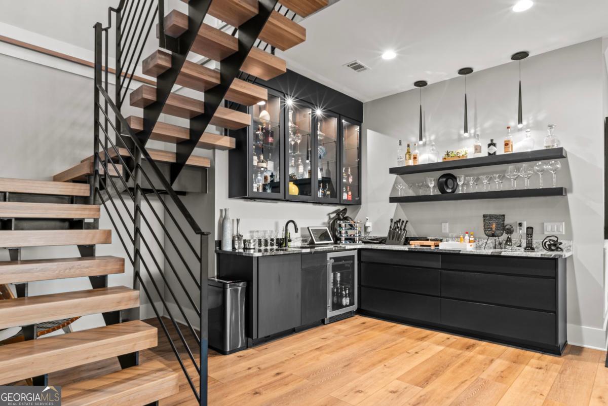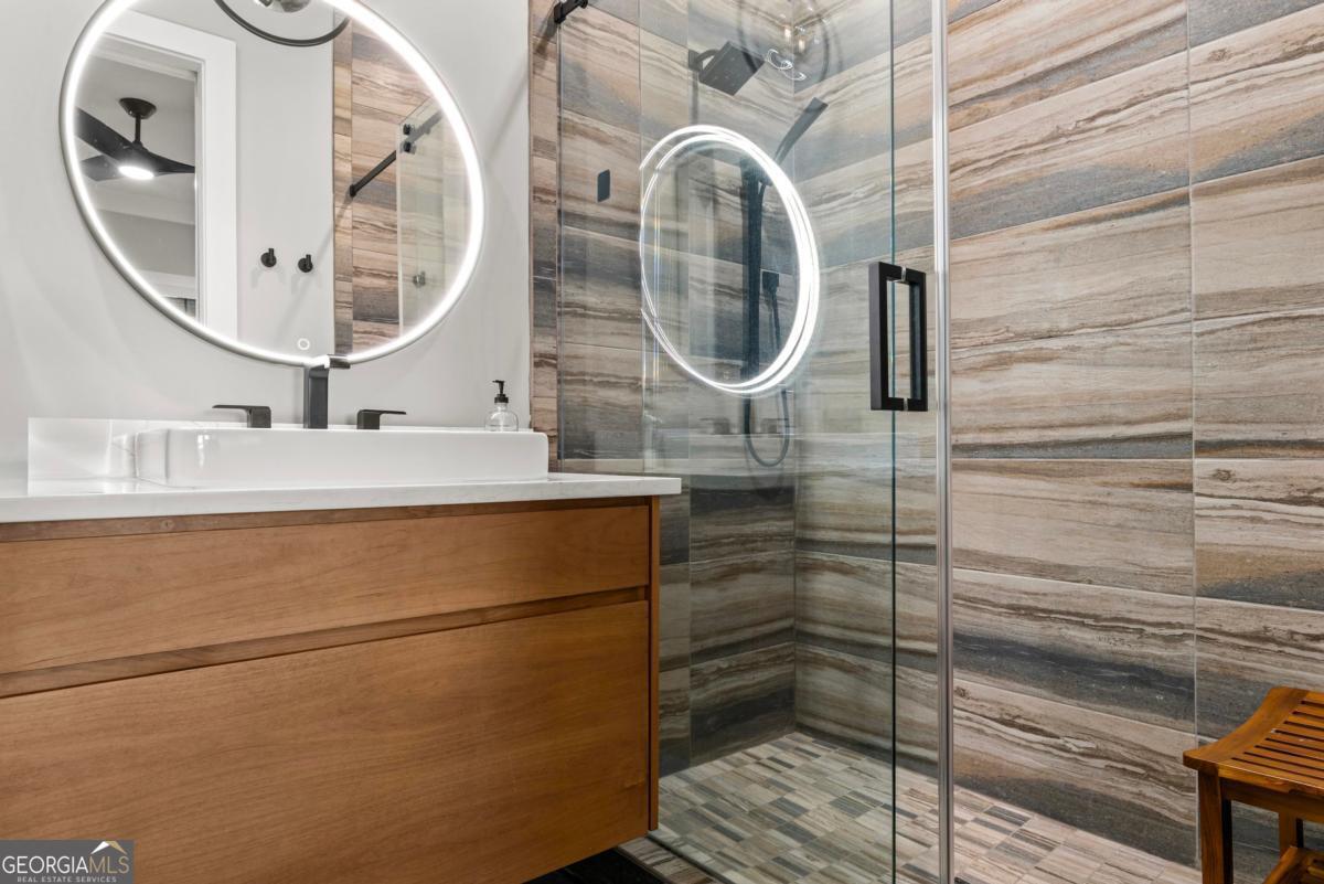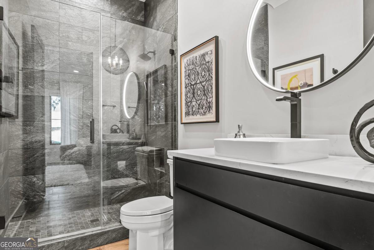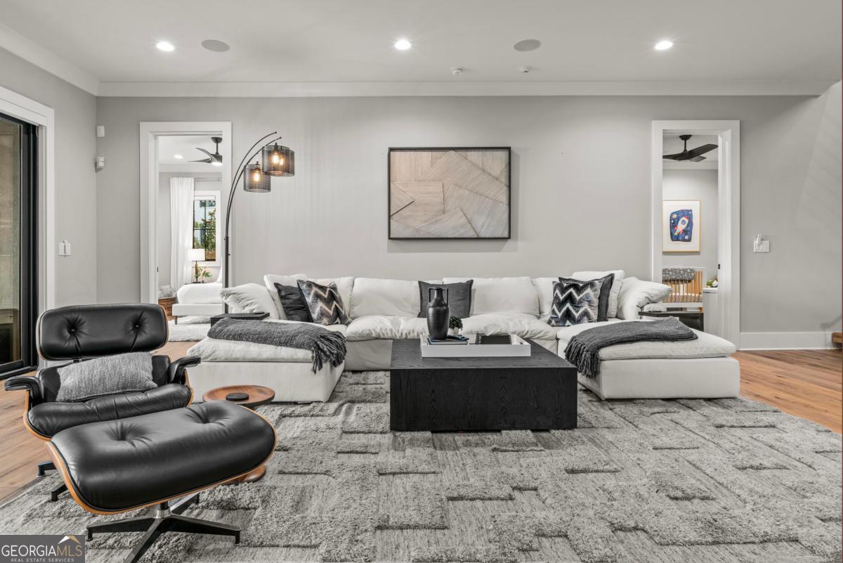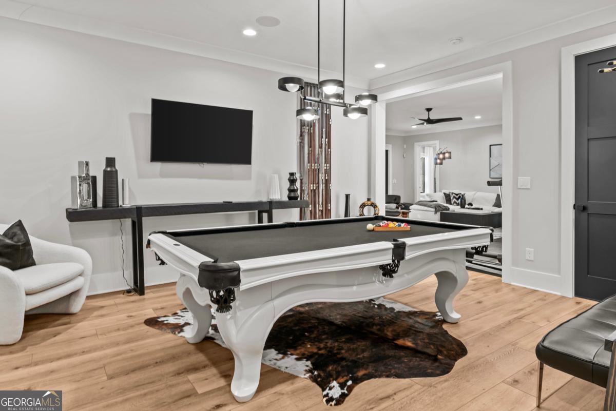 Luxury lakefront like-new home, built by Hatfield Custom Homes, with all the amenities in Reynolds Lake Oconee showcasing the most breathtaking, expansive lake views imaginable. Nestled on nearly an acre of lakefront, this stunning home offers modern elegance with high-end finishes throughout. The long private driveway sets the tone for the grand experience that awaits inside. The 24ft ceiling great room with 9ft glass sliders seamlessly invite the outdoors in offering front row sunset views. Designed with style and convenience in mind, this smart home delivers a sophisticated yet welcoming ambiance. The custom cast iron front door opens to a striking interior with custom Italian tile flooring, designer lighting, floating iron and wood staircase highlighted by a custom antique mirrored glass, remote-controlled electric fireplace. The exceptional open floorplan was designed to capture views of the lake from nearly every room. The kitchen is framed by Bentley Cambria quartz waterfall countertop island and coordinating vent hood, sleek custom cabinetry, and professional designer appliance package that include Sub-Zero refrigerator, Wolf cooktop, Cafe Professional Series oven, Cove dishwasher, ice maker, dual refrigerator drawers, and a 288-bottle Zephyr wine refrigerator. The luxurious primary suite boasts 10" natural hardwood plank floors, remote-controlled electric fireplace, custom Artisan closets, and a spa-like bath with floor-to-ceiling tile throughout, natural wood vanities and cabinets with concrete vessel sinks. The main level also include a versatile office that can easily serve as an additional bedroom. A beautiful floating iron staircase leads to the terrace level where a spacious family room and billiard room await. This level is an entertainer's dream featuring a full bar, powder room and a seamless access to the pool deck with expansive lake views as the perfect backdrop. The rare flat lake backyard is a true gem in this community. The terrace level also features three well-appointed guest suites ensuring ample space for family and friends. Watch your favorite games in your expansive outdoor deck or enjoy the sunset in your salt water pool/spa with spillway, automatic cover and fire pit. This luxurious home features remote control blinds, three-car garage, large custom seasonal closet and Smart Home features (security, pool, firepit, lighting). Great location! Walk to the clubhouse and the Jack Nicklaus course. Membership is available.