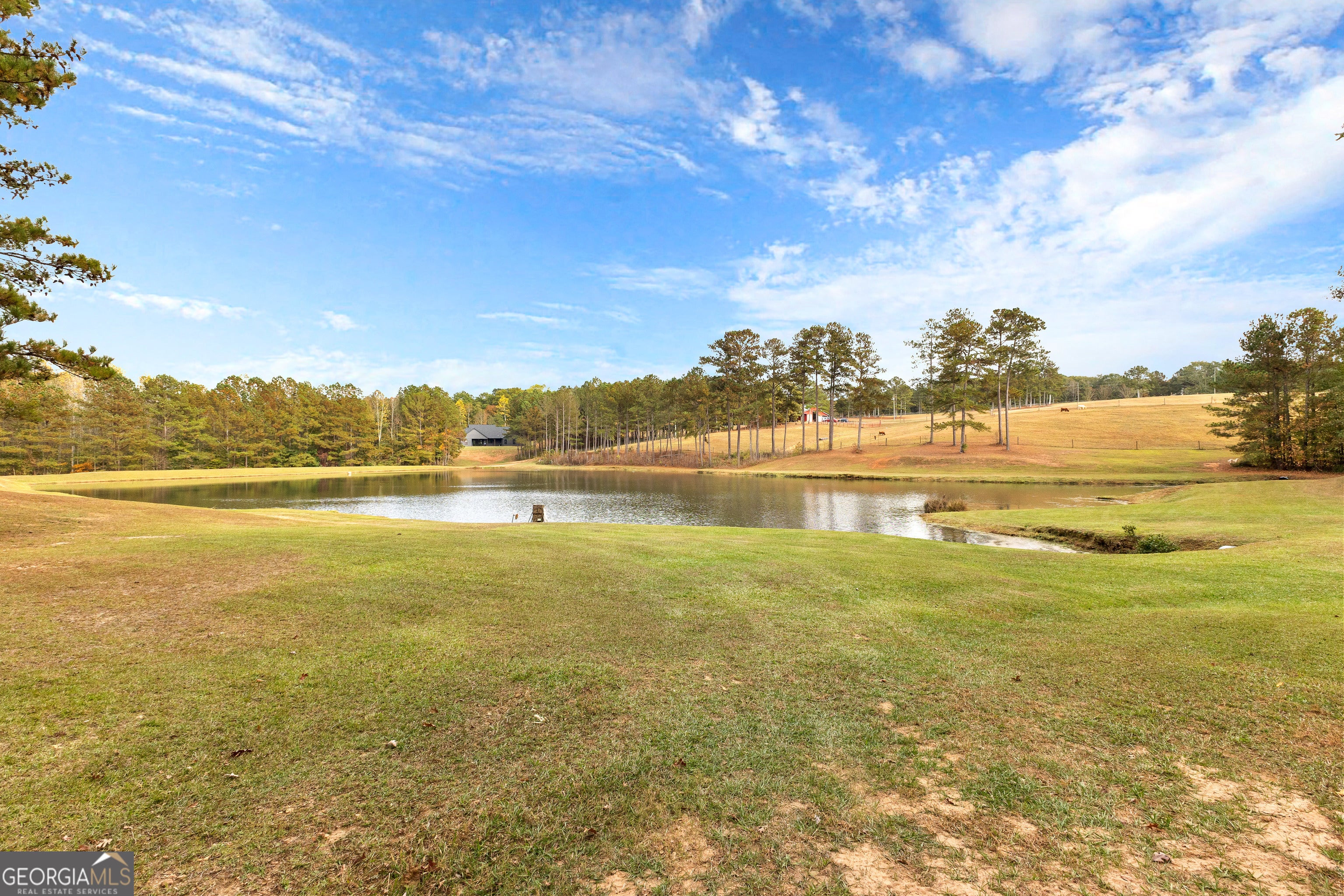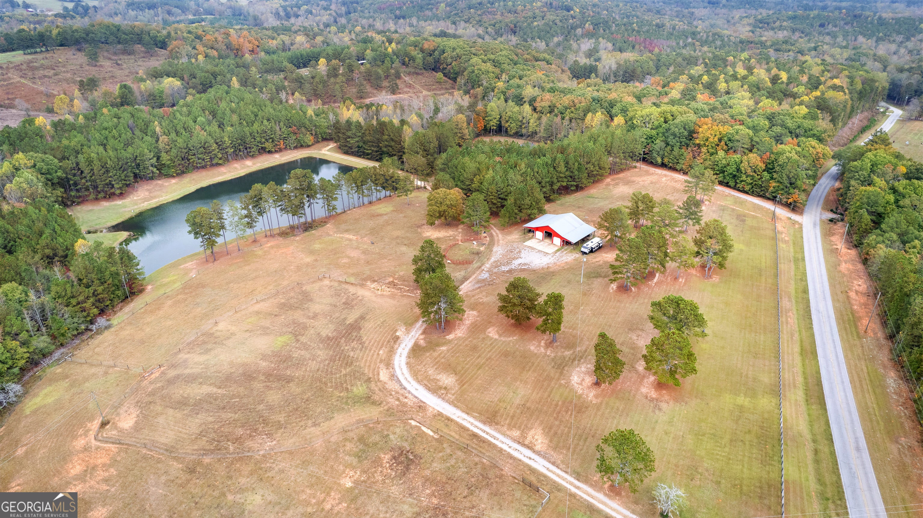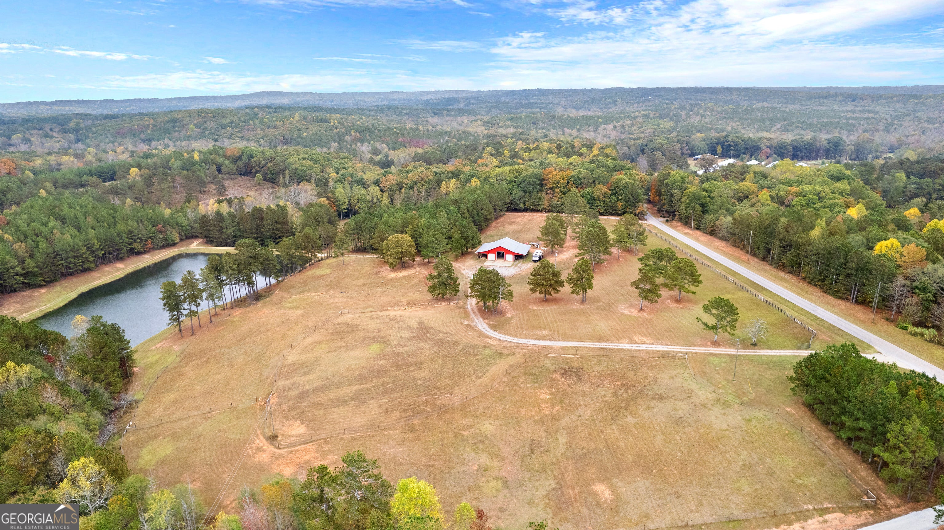 Opportunities like this are getting harder to find. This 50.36-acre property in West Georgia offers the perfect blend of open pasture, wooded privacy, and stunning long-range views - all located just 10 minutes from the shopping, dining, and conveniences of Carrollton. As you enter through the gated entrance, the land unfolds into expansive fenced pastures, gently rolling terrain, and a classic red barn that immediately sets the tone for country living. At the center of the property sits a beautiful three-acre stocked lake, creating the perfect backdrop for fishing, relaxing evenings, or enjoying peaceful waterfront views. The property's highest elevation offers breathtaking panoramic views, and on clear days you can even see the Newnan water tower in the distance. With most of the land cleared and usable, along with pockets of mature woods, the property offers the ideal balance of beauty and functionality. Wildlife is abundant, with deer and turkey frequently roaming the property, making it a dream setting for hunters, nature lovers, or anyone seeking a private rural retreat. Utilities are already in place with water and electricity on site, and soil tests confirm suitable homesites, providing flexibility whether you're planning to build a private estate, create a horse or cattle farm, establish a recreational retreat, or hold the property as a long-term investment. Properties with this combination of acreage, water, views, and location rarely come available. Come experience the peace, privacy, and potential of this exceptional Carroll County property.