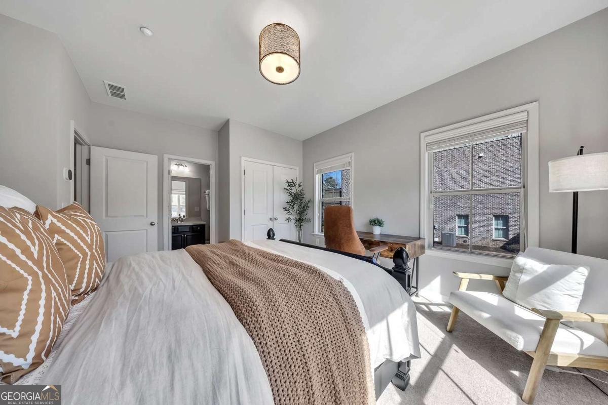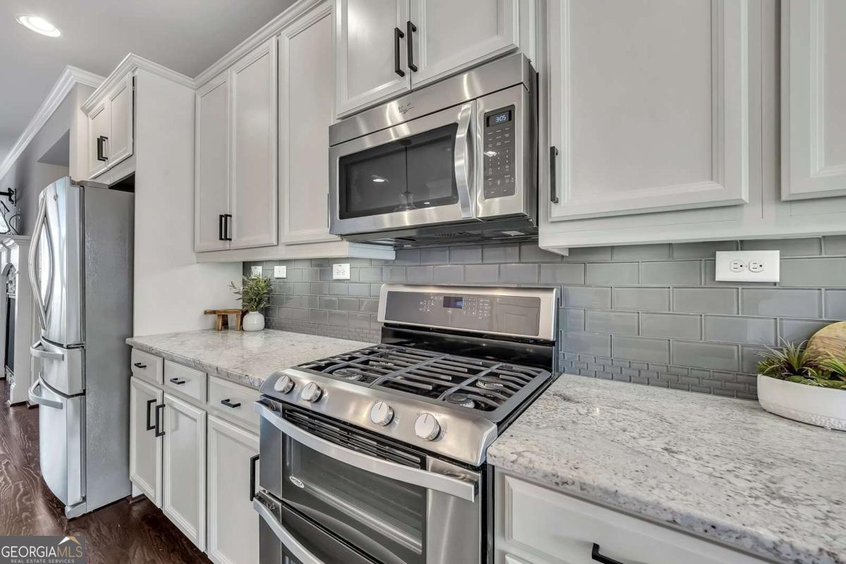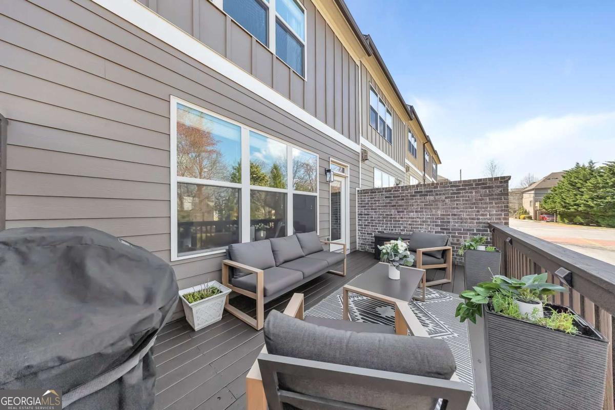 Welcome to effortless living in the heart of Smyrna! This stunning three-story end-unit townhome, located in the desirable Williams Park area, combines thoughtful design, spacious living, and unbeatable access to some of the area's most sought-after destinations. Step inside to the ground level, where you'll find a versatile private guest suite with an en-suite bathroom-perfect for visitors, a quiet home office, or a flex space to fit your lifestyle. You'll also appreciate the spacious two-car garage, offering both convenience and ample storage. The main level is designed for modern living and effortless entertaining, featuring a bright, open floor plan with gleaming hardwoods and a spacious great room that flows seamlessly into the stunning chef's kitchen-complete with white cabinetry, stainless steel appliances, granite countertops, and a massive island-alongside a generous dining area. Enjoy abundant natural light (thanks to the end-unit location), stylish finishes, and plenty of space to gather and entertain. Enjoy the expansive main-level deck, perfect for morning coffee, grilling, or relaxing outdoors. With the added privacy of an end unit, it's an ideal extension of the home's open living space. Upstairs, retreat to the luxurious primary suite, complete with a beautifully appointed bathroom designed with double vanity and spa-like shower. This level also features a secondary bedroom with its own en-suite bathroom, offering comfort and privacy. Living in Smyrna means enjoying incredible convenience and lifestyle amenities just minutes away. You're close to the vibrant dining, shopping, and entertainment with Smyrna Market Village close by in addition to The Battery Atlanta, home of The Braves! Outdoor lovers will appreciate easy access to the scenic Silver Comet Trail, as well as nearby parks, green spaces, and community events that make Smyrna one of Metro Atlanta's most desirable places to live. Stylish, spacious, and perfectly located-this townhome offers the best of modern living in one of the area's most vibrant communities.