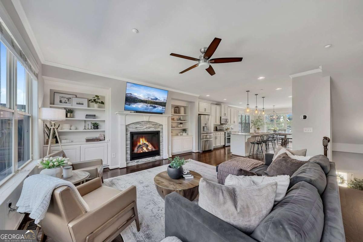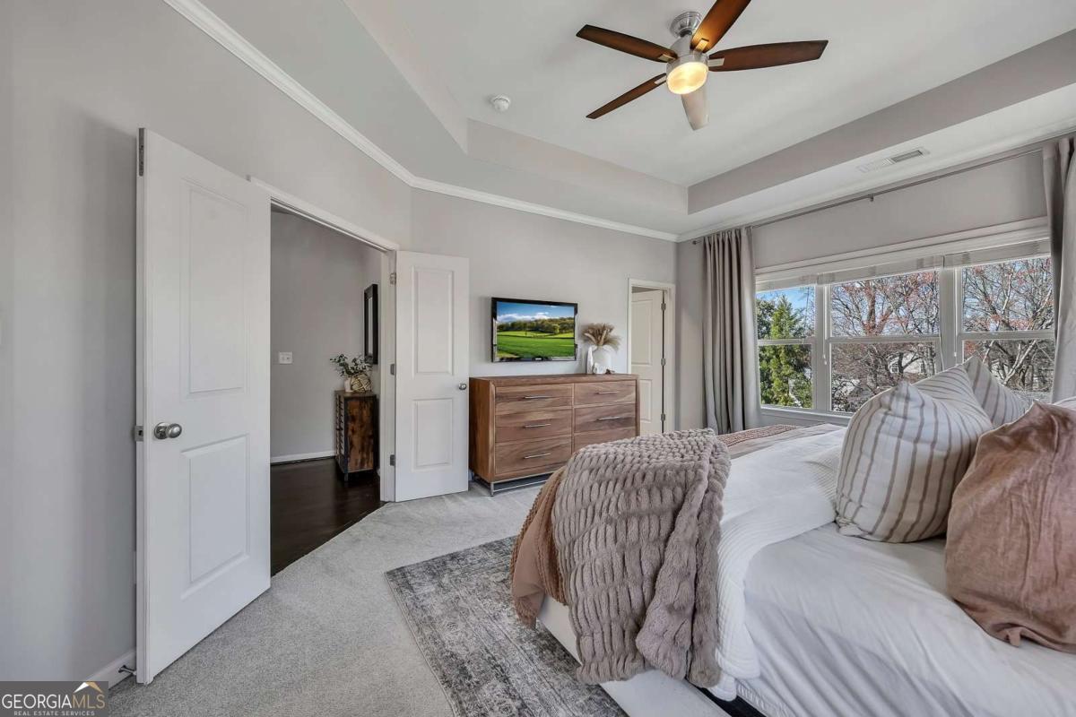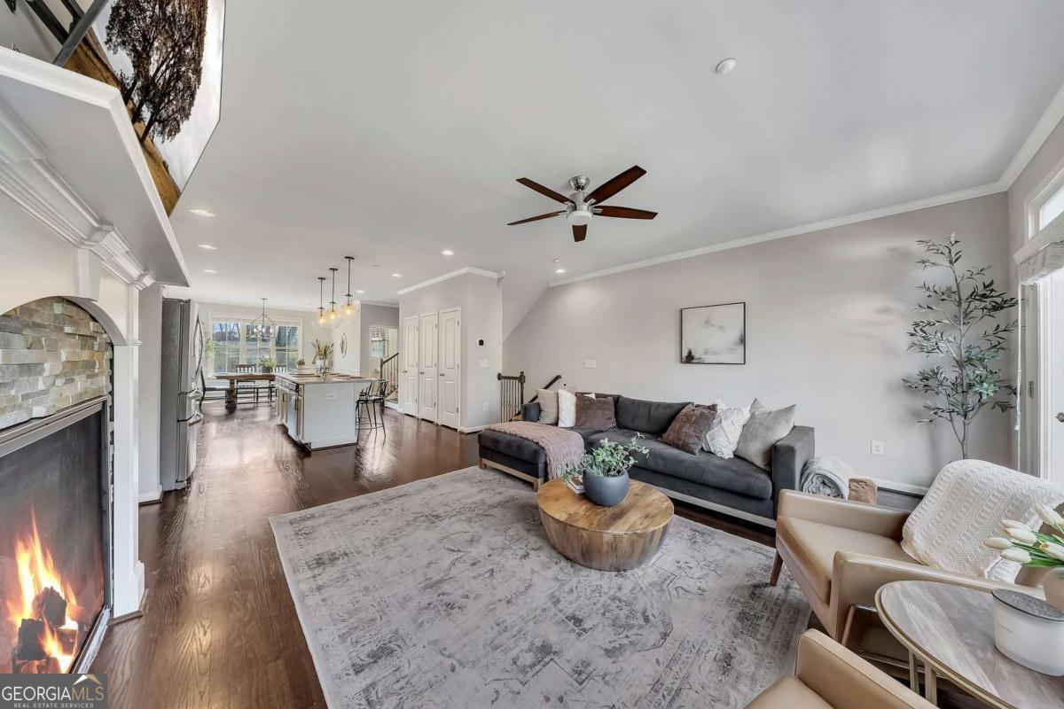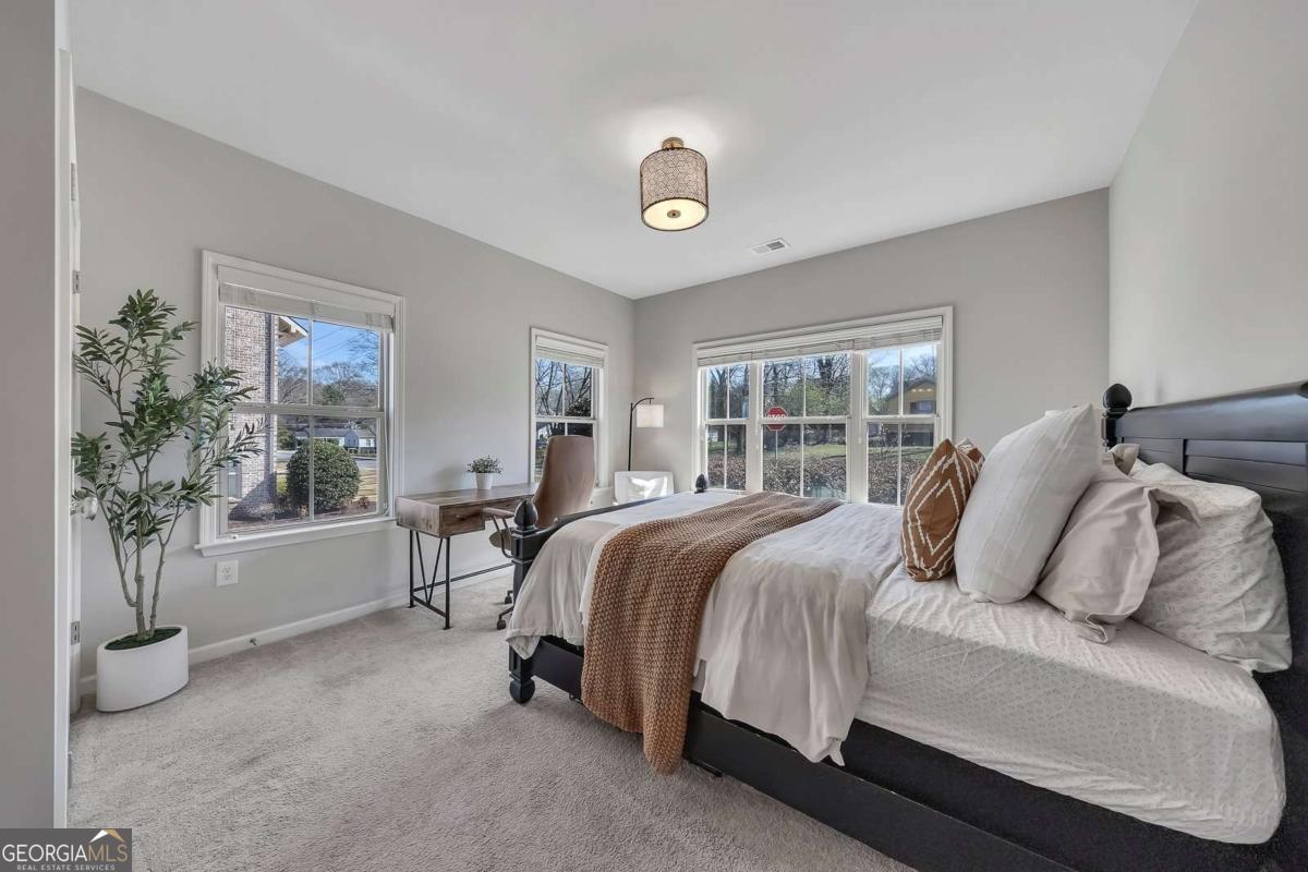Welcome to effortless living in the heart of Smyrna! This stunning three-story end-unit townhome, located in the desirable Williams Park area, combines thoughtful design, spacious living, and unbeatable access to some of the area's most sought-after destinations. Step inside to the ground level, where you'll find a versatile private guest suite with an en-suite bathroom-perfect for visitors, a quiet home office, or a flex space to fit your lifestyle. You'll also appreciate the spacious two-car garage, offering both convenience and ample storage. The main level is designed for modern living and effortless entertaining, featuring a bright, open floor plan with gleaming hardwoods and a spacious great room that flows seamlessly into the stunning chef's kitchen-complete with white cabinetry, stainless steel appliances, granite countertops, and a massive island-alongside a generous dining area. Enjoy abundant natural light (thanks to the end-unit location), stylish finishes, and plenty of space to gather and entertain. Enjoy the expansive main-level deck, perfect for morning coffee, grilling, or relaxing outdoors. With the added privacy of an end unit, it's an ideal extension of the home's open living space. Upstairs, retreat to the luxurious primary suite, complete with a beautifully appointed bathroom designed with double vanity and spa-like shower. This level also features a secondary bedroom with its own en-suite bathroom, offering comfort and privacy. Living in Smyrna means enjoying incredible convenience and lifestyle amenities just minutes away. You're close to the vibrant dining, shopping, and entertainment with Smyrna Market Village close by in addition to The Battery Atlanta, home of The Braves! Outdoor lovers will appreciate easy access to the scenic Silver Comet Trail, as well as nearby parks, green spaces, and community events that make Smyrna one of Metro Atlanta's most desirable places to live. Stylish, spacious, and perfectly located-this townhome offers the best of modern living in one of the area's most vibrant communities.