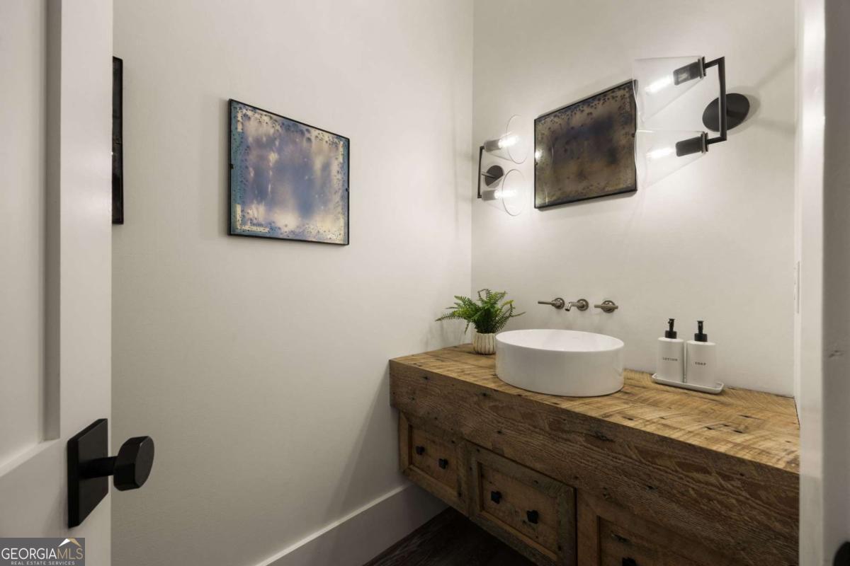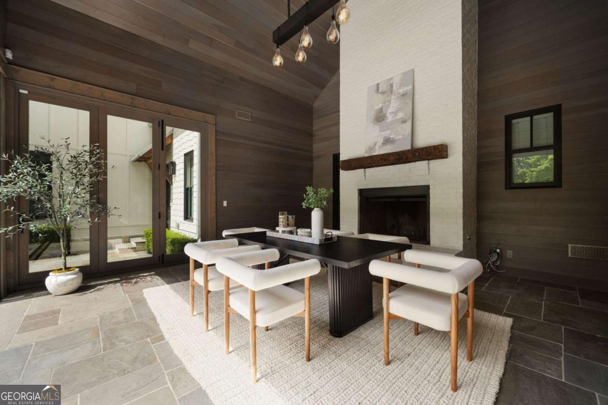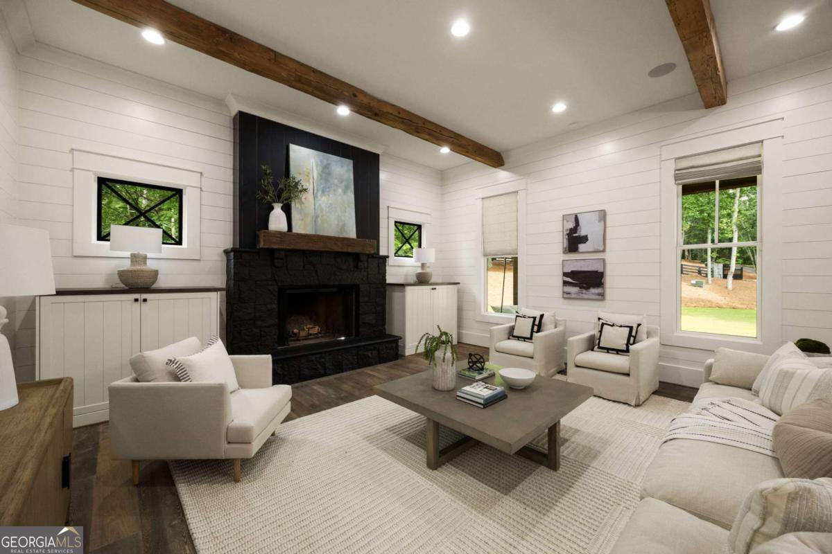 Welcome to your own private retreat in the heart of Milton. Set on 2.5 beautifully wooded acres behind a gated entry, this custom-built modern farmhouse by Steve Powell Homes combines timeless craftsmanship with the laid-back luxury of resort-style living. With a heated saltwater pool and spa, outdoor fireplace, and a backdrop of century-old oaks, this home offers the kind of privacy and setting that's getting harder to find. From the moment you step onto the front porch, framed by cedar beams, gas lanterns and tongue-and-groove ceilings, you'll feel the attention to detail that sets this home apart. Inside, 12-foot ceilings, reclaimed Pennsylvania barn wood floors, and natural light at every turn create a bright, welcoming feel. The fireside family room opens into a chef's kitchen with quartzite countertops, a high-end appliance package, large center island, and walk-in pantry. Accordion-style doors lead to a vaulted, wood-lined lanai-an all-seasons space with a fireplace that flows effortlessly into the pool and patio area. The main-level primary suite is a true escape, featuring a spa-like bath with heated floors, a soaking tub, dual showerheads, and a custom walk-in closet with a packing island. Just off the closet, the laundry room is a workhorse-with space for two washers and two dryers, tons of cabinetry, a work island, built-in desk, and drop zone. Whether you're managing a busy household or prepping for travel, this space makes life easier. Upstairs, you'll find four generously sized en suite bedrooms, each with custom walk-in closets, plus a versatile bonus room and a cozy reading nook that's perfect for quiet moments or homework hangouts. The finished terrace level adds even more to love-a full home theater, a flex space that works well as a gym or guest suite with its own full bath, and a fourth-car garage that easily doubles as a workshop or extra storage. Need more room to spread out? Above the main garage, an additional finished space offers endless potential-whether it's an in-law suite, a game room, or your go-to spot for entertaining. From the Control4 smart home system and full-house generator to the winding drive, professional landscaping, and extra parking pads, no detail has been overlooked. Zoned for top-ranked Cambridge High and just minutes to Downtown Alpharetta, Avalon, and GA-400, this property offers the rare mix of privacy, convenience, and laid-back luxury that's getting harder to find.